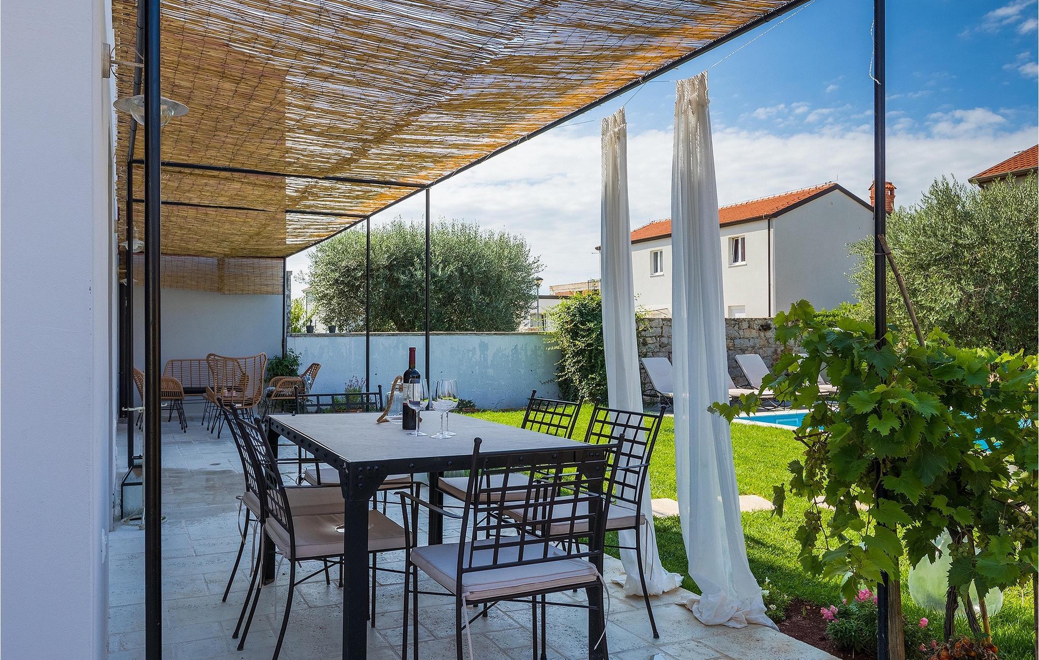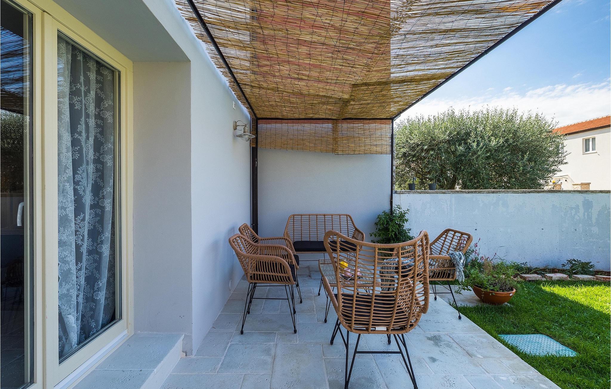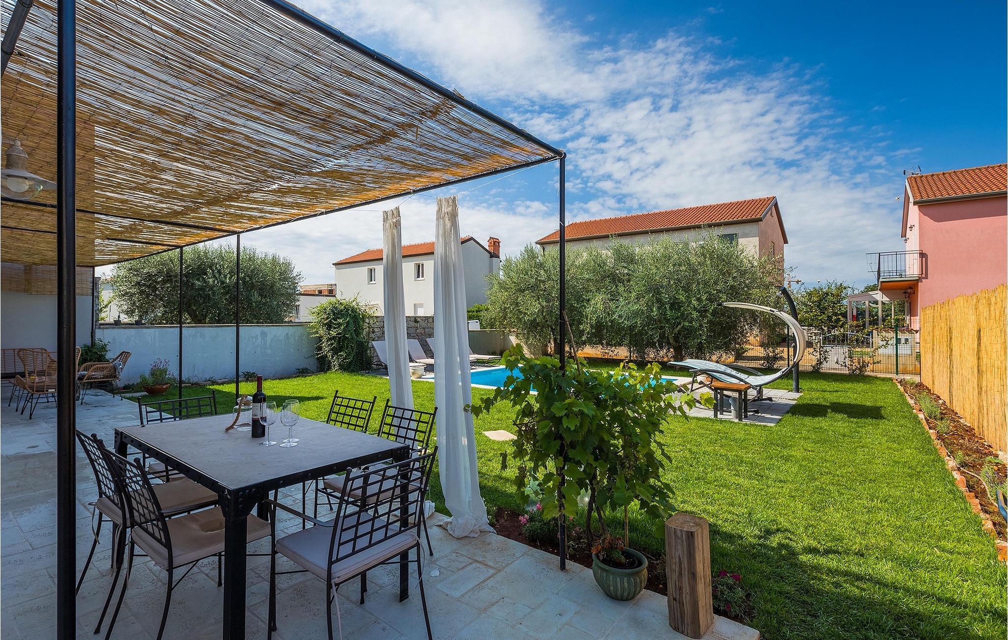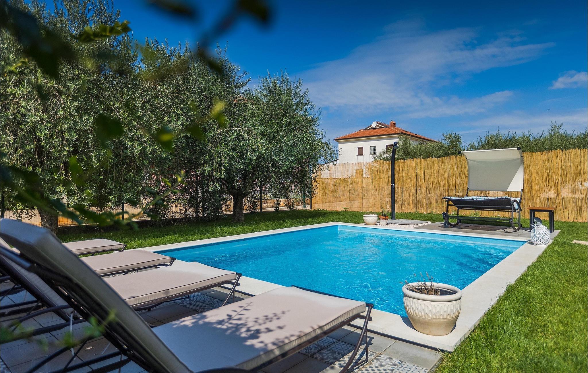 Villa Mediteranea er perfekt for deg som ønsker å tilbringe en rolig og avslappende ferie nær sjøen. Villaen har 3 soverom og har plass til opptil 8 personer. Det er et privat utendørsbasseng på den velholdte eiendommen, som inviterer deg til å kjøle deg ned på varme sommerdager. Slapp av på solsengene rundt bassenget. En kullgrill står til din disposisjon for å tilberede deilige måltider. Villaens første etasje består av en spisestue, et fullt utstyrt kjøkken med utgang til terrassen, et soverom med utgang til terrassen og hagen og et bad. Terrassen er det perfekte stedet å nyte morgenkaffen. I første etasje er det to komfortable soverom med hvert sitt bad. Privat parkering for opptil 2 biler er også tilgjengelig. Bestill Villa Mediteranea og oppdag Istrias skjønnhet! Villa Mediteranea ligger bare noen få minutters kjøring fra den berømte byen Umag. Umag og omegn er kjent for sin produksjon av vin og olivenolje. På kysten av Umag finner du et bredt utvalg av fritidsaktiviteter, turistfasiliteter og en liten havn. I de sjarmerende brosteinsbelagte gatene i byen finner du utmerkede restauranter, barer og kafeer. I dag er Umag mest kjent for sin sport: Hvert år i juli arrangeres ATP Croatia Open med mange store navn fra herretennisverdenen. I nærheten av byen ligger det prisbelønte badelandet Istralandia - ideelt for en dag med moro for hele familien. I tillegg til sportsaktiviteter må du ikke gå glipp av det indre Istria, som er kjent for sin utmerkede gastronomi, og de mange små bakketoppbyene med unik utsikt over Mirna-elvedalen. Kystbyer som Pula med sitt berømte romerske amfiteater, Rovinj med sine fargerike hus og trange gater og Pore med den Unesco-vernede Eufrasius-basilikaen er også verdt et besøk!