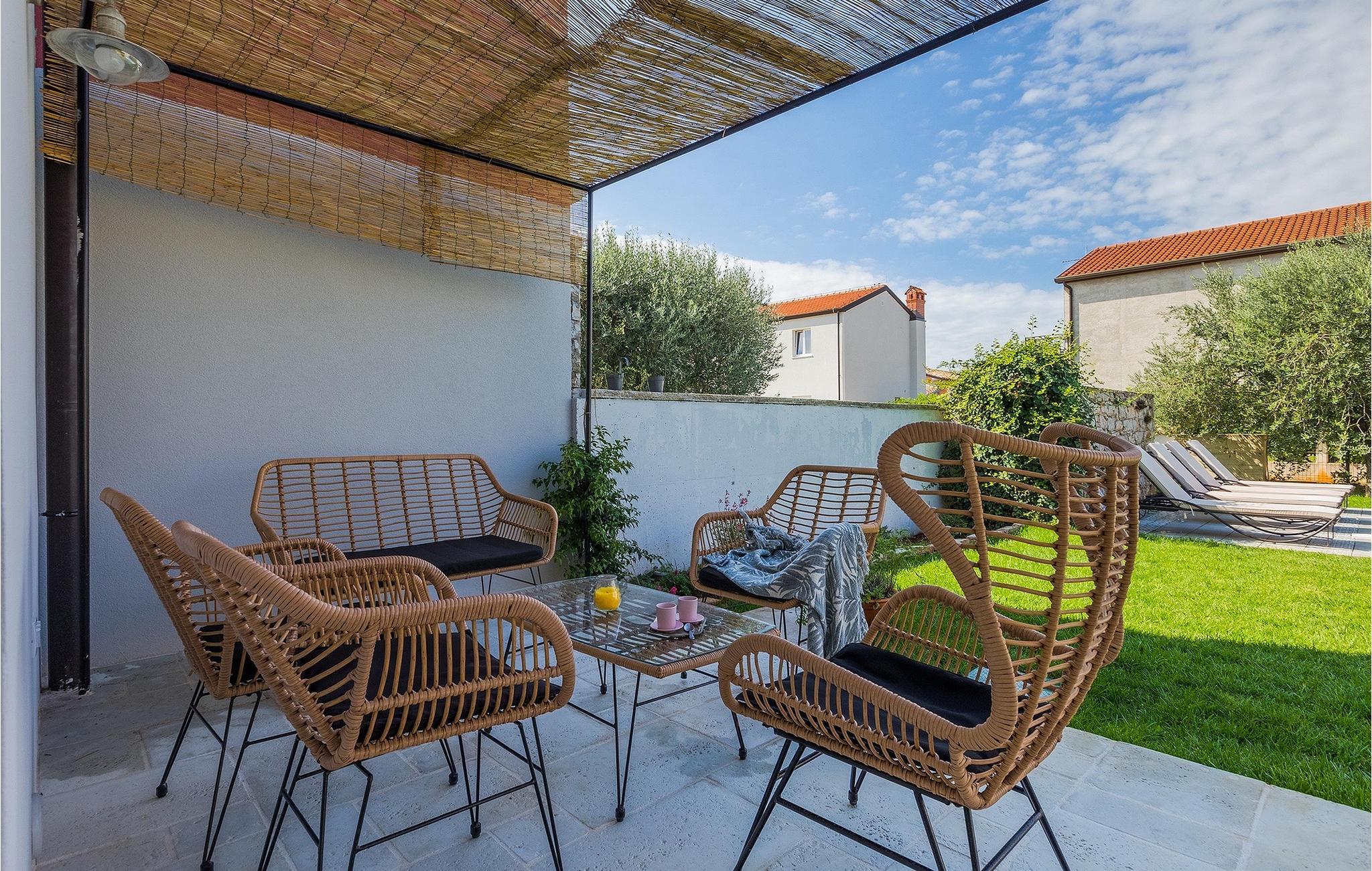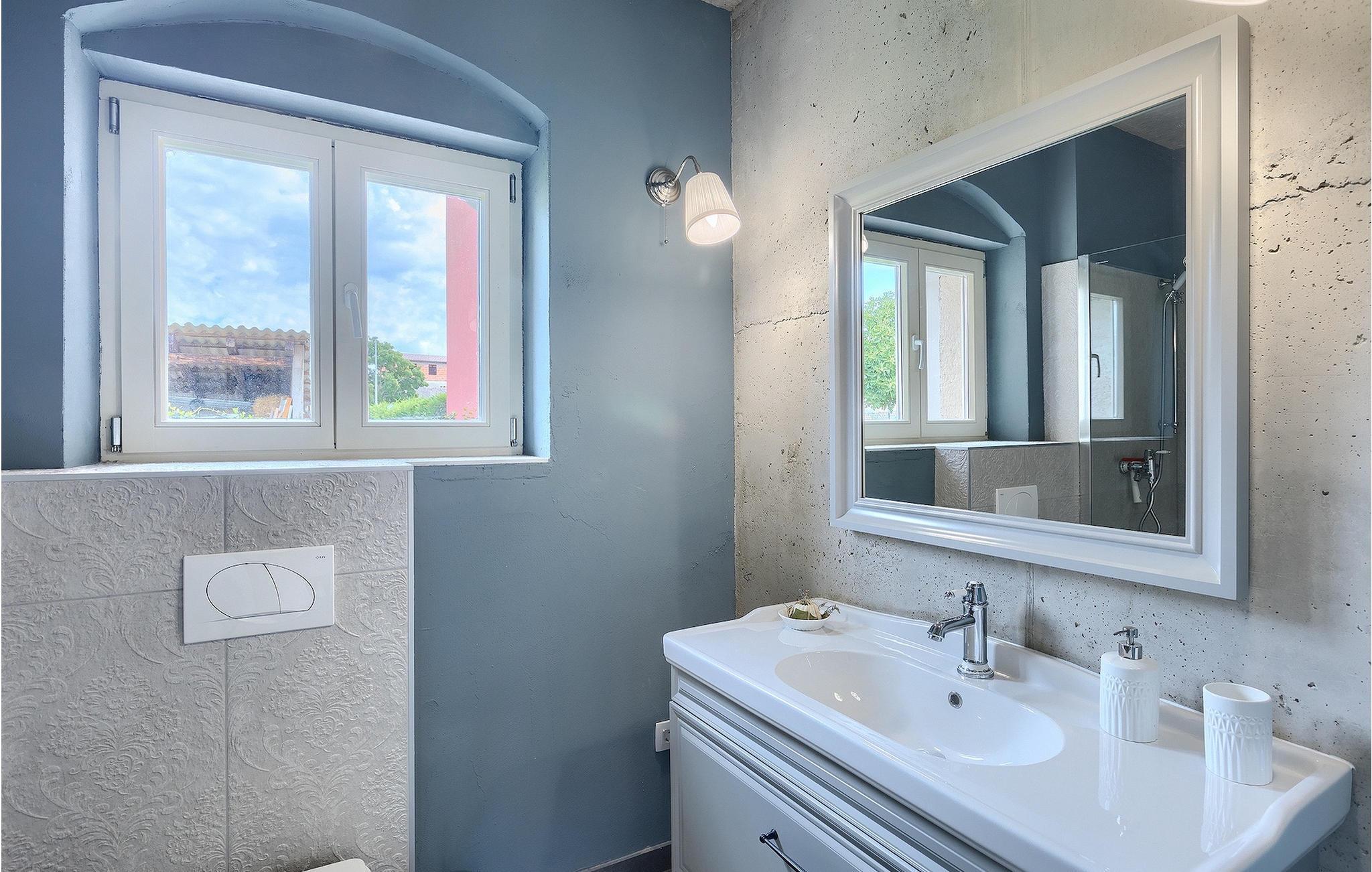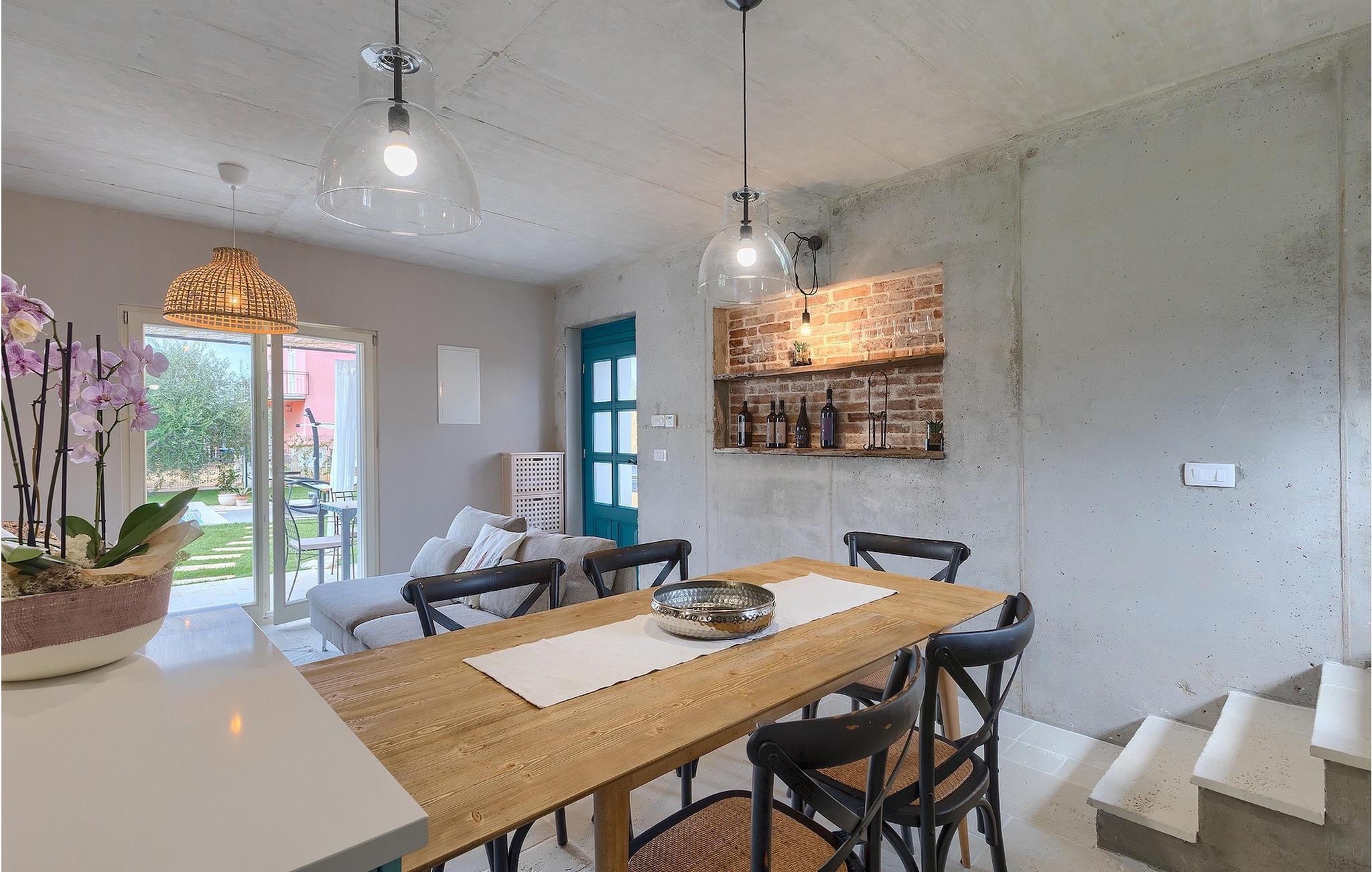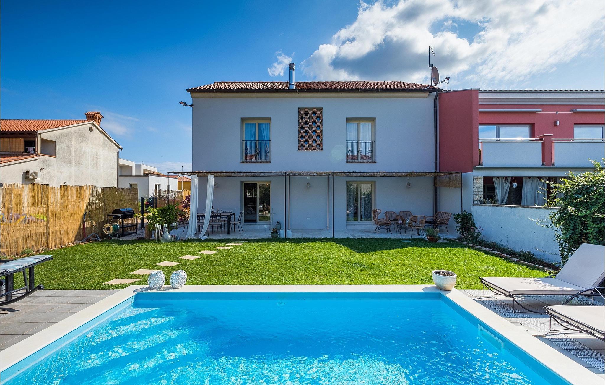 Villa Mediteranea er perfekt for deg som ønsker å tilbringe en rolig og avslappende ferie nær sjøen. Villaen har 3 soverom og har plass til opptil 8 personer. Det er et privat utendørsbasseng på den velholdte eiendommen, som inviterer deg til å kjøle deg ned på varme sommerdager. Slapp av på solsengene rundt bassenget. En kullgrill står til din disposisjon for å tilberede deilige måltider. Villaens første etasje består av en spisestue, et fullt utstyrt kjøkken med utgang til terrassen, et soverom med utgang til terrassen og hagen og et bad. Terrassen er det perfekte stedet å nyte morgenkaffen. I første etasje er det to komfortable soverom med hvert sitt bad. Privat parkering for opptil 2 biler er også tilgjengelig. Bestill Villa Mediteranea og oppdag Istrias skjønnhet! Villa Mediteranea ligger bare noen få minutters kjøring fra den berømte byen Umag. Umag og omegn er kjent for sin produksjon av vin og olivenolje. På kysten av Umag finner du et bredt utvalg av fritidsaktiviteter, turistfasiliteter og en liten havn. I de sjarmerende brosteinsbelagte gatene i byen finner du utmerkede restauranter, barer og kafeer. I dag er Umag mest kjent for sin sport: Hvert år i juli arrangeres ATP Croatia Open med mange store navn fra herretennisverdenen. I nærheten av byen ligger det prisbelønte badelandet Istralandia - ideelt for en dag med moro for hele familien. I tillegg til sportsaktiviteter må du ikke gå glipp av det indre Istria, som er kjent for sin utmerkede gastronomi, og de mange små bakketoppbyene med unik utsikt over Mirna-elvedalen. Kystbyer som Pula med sitt berømte romerske amfiteater, Rovinj med sine fargerike hus og trange gater og Pore med den Unesco-vernede Eufrasius-basilikaen er også verdt et besøk!