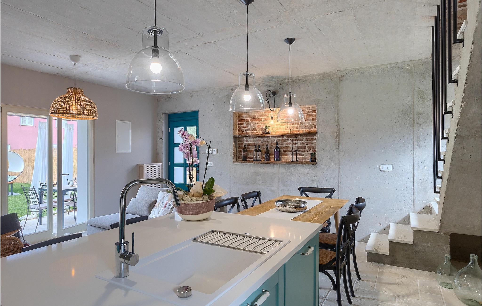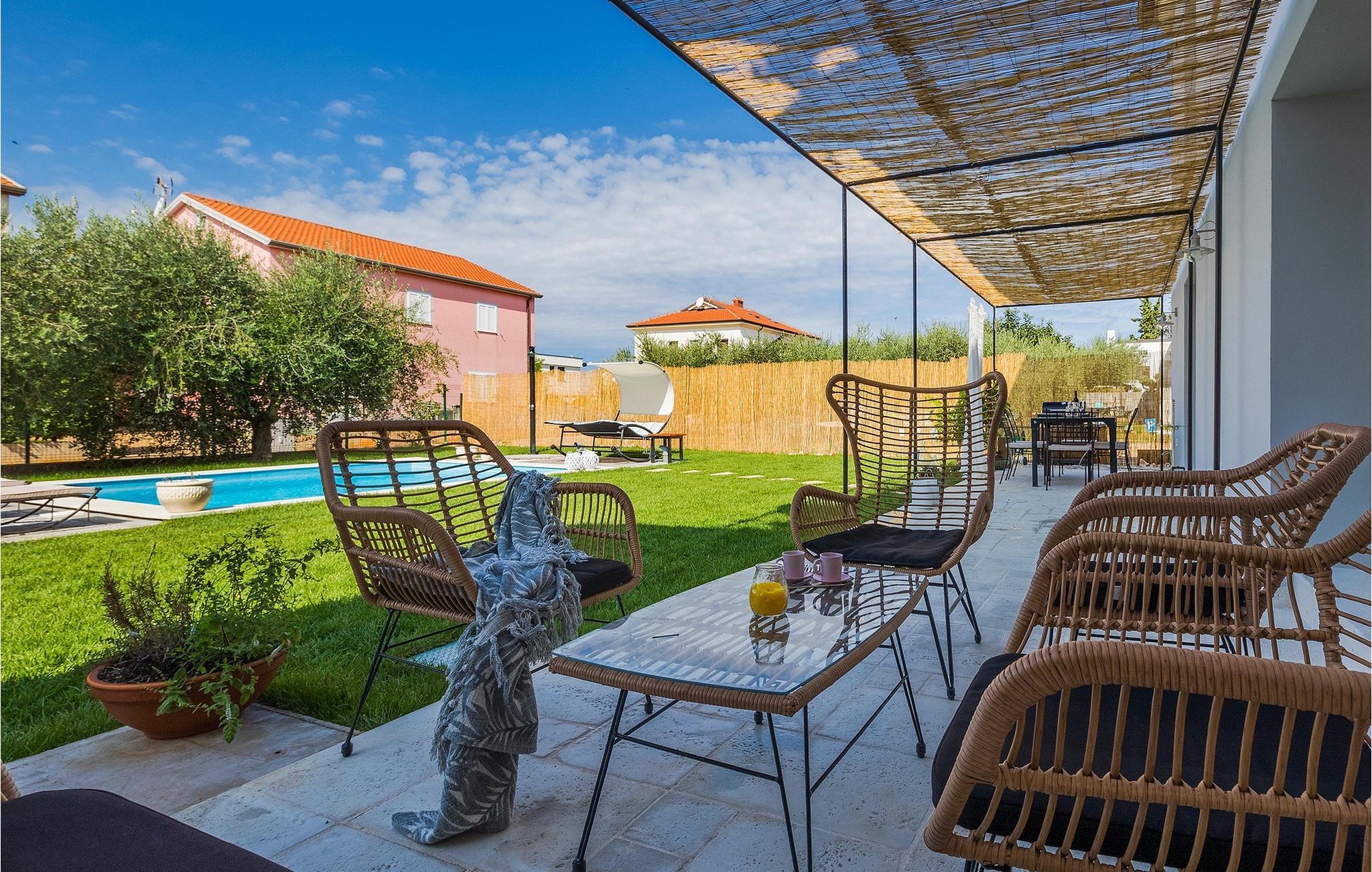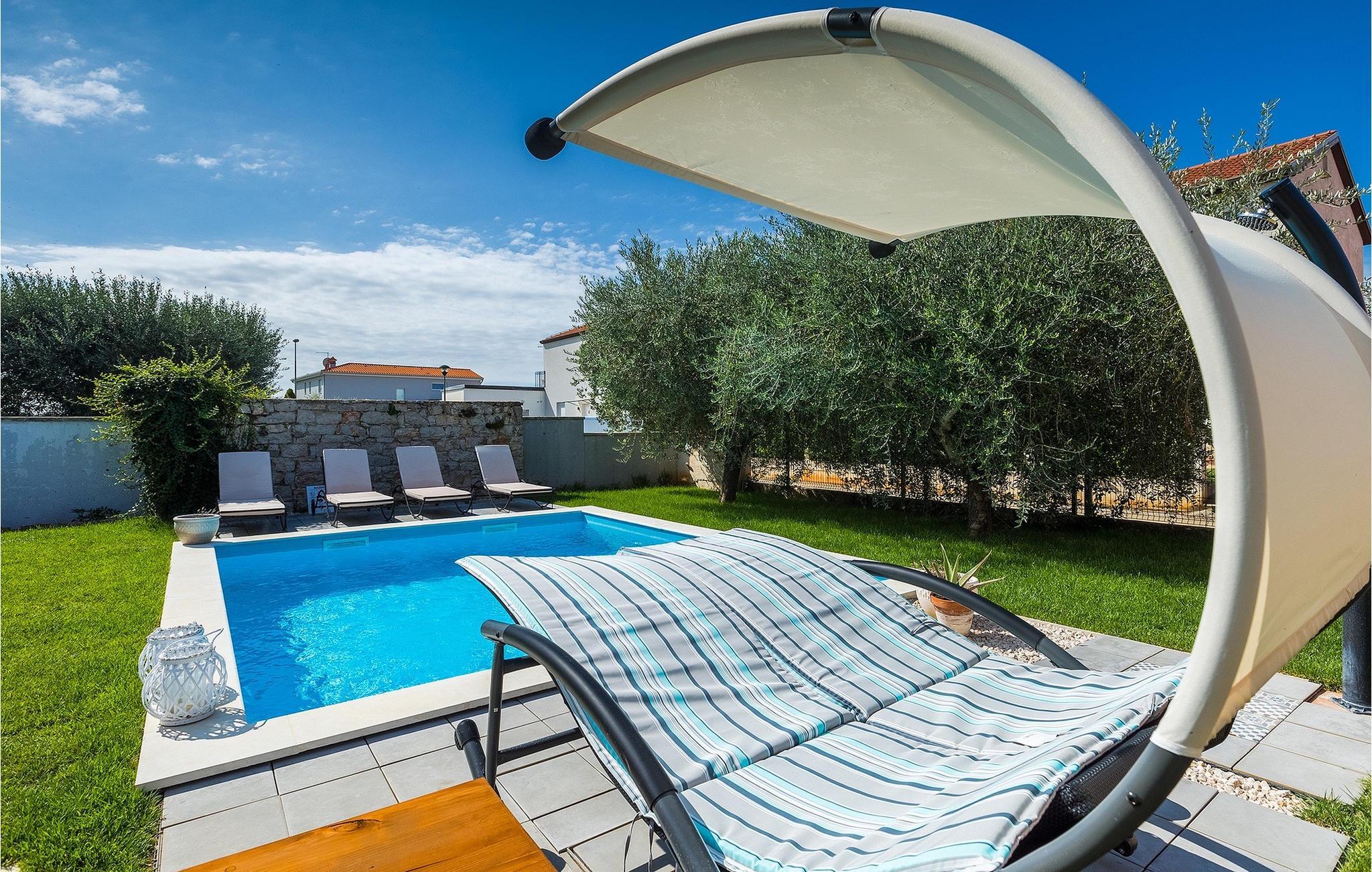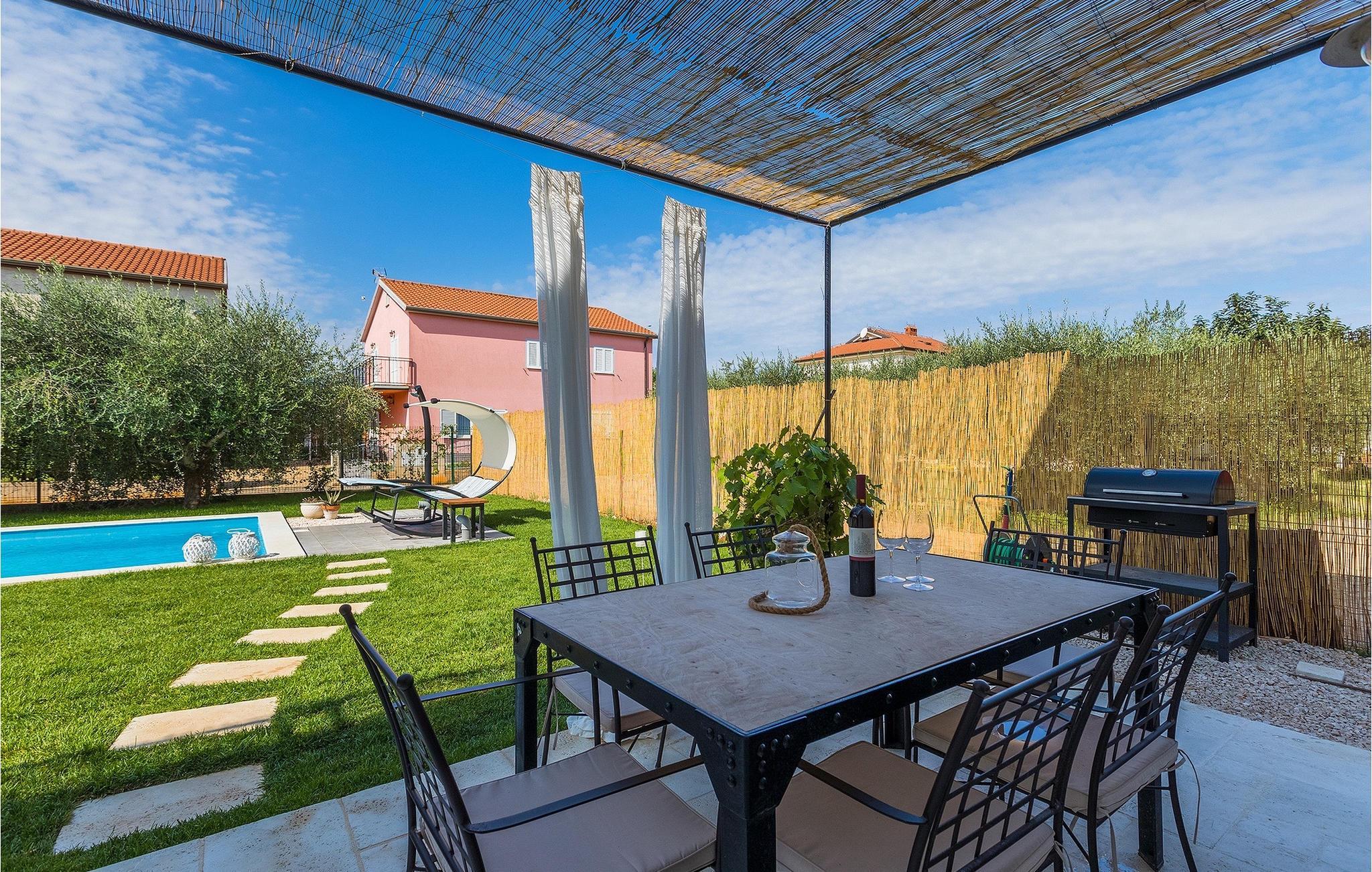 Villa Mediteranea er perfekt for deg som ønsker å tilbringe en rolig og avslappende ferie nær sjøen. Villaen har 3 soverom og har plass til opptil 8 personer. Det er et privat utendørsbasseng på den velholdte eiendommen, som inviterer deg til å kjøle deg ned på varme sommerdager. Slapp av på solsengene rundt bassenget. En kullgrill står til din disposisjon for å tilberede deilige måltider. Villaens første etasje består av en spisestue, et fullt utstyrt kjøkken med utgang til terrassen, et soverom med utgang til terrassen og hagen og et bad. Terrassen er det perfekte stedet å nyte morgenkaffen. I første etasje er det to komfortable soverom med hvert sitt bad. Privat parkering for opptil 2 biler er også tilgjengelig. Bestill Villa Mediteranea og oppdag Istrias skjønnhet! Villa Mediteranea ligger bare noen få minutters kjøring fra den berømte byen Umag. Umag og omegn er kjent for sin produksjon av vin og olivenolje. På kysten av Umag finner du et bredt utvalg av fritidsaktiviteter, turistfasiliteter og en liten havn. I de sjarmerende brosteinsbelagte gatene i byen finner du utmerkede restauranter, barer og kafeer. I dag er Umag mest kjent for sin sport: Hvert år i juli arrangeres ATP Croatia Open med mange store navn fra herretennisverdenen. I nærheten av byen ligger det prisbelønte badelandet Istralandia - ideelt for en dag med moro for hele familien. I tillegg til sportsaktiviteter må du ikke gå glipp av det indre Istria, som er kjent for sin utmerkede gastronomi, og de mange små bakketoppbyene med unik utsikt over Mirna-elvedalen. Kystbyer som Pula med sitt berømte romerske amfiteater, Rovinj med sine fargerike hus og trange gater og Pore med den Unesco-vernede Eufrasius-basilikaen er også verdt et besøk!