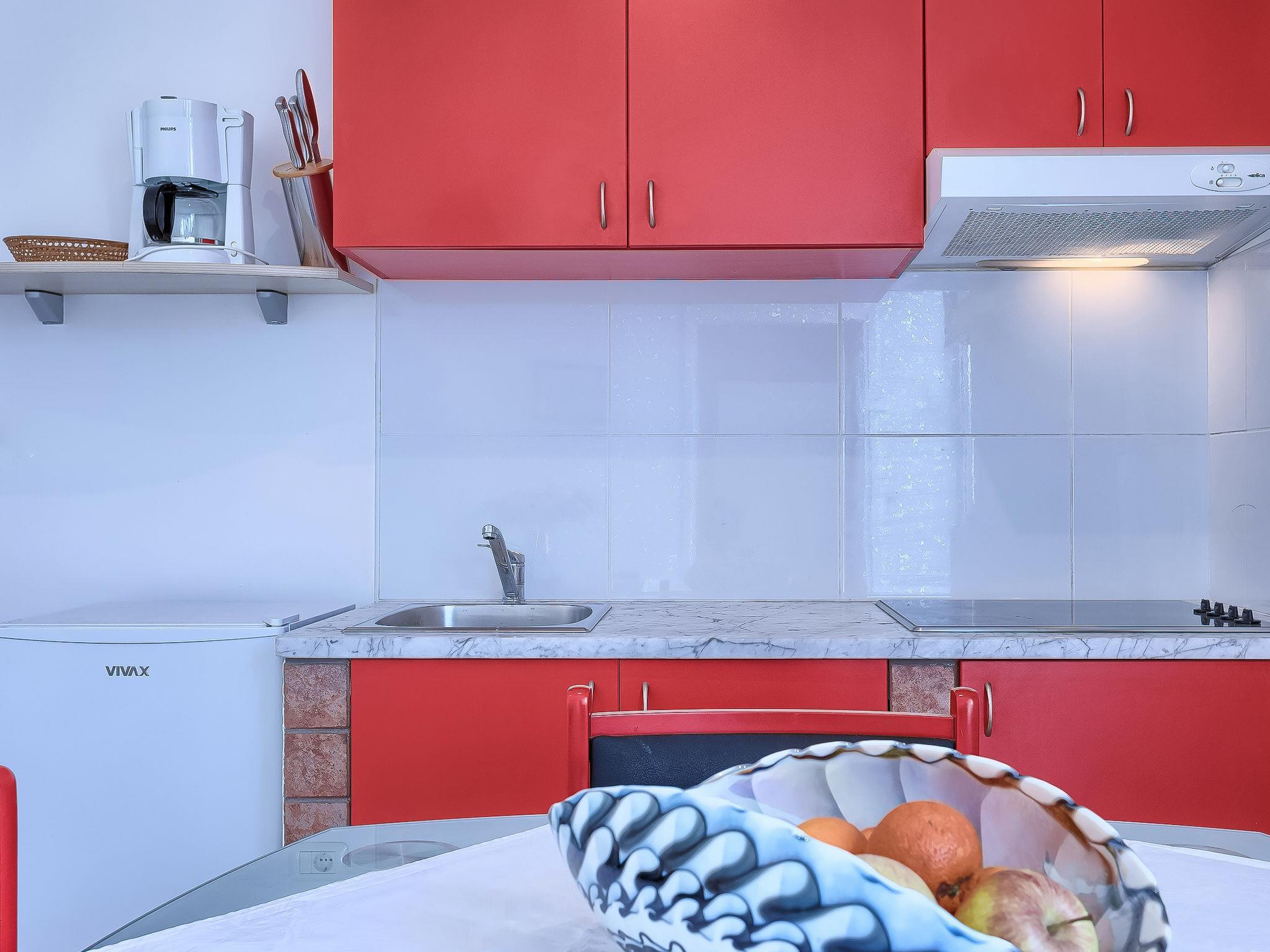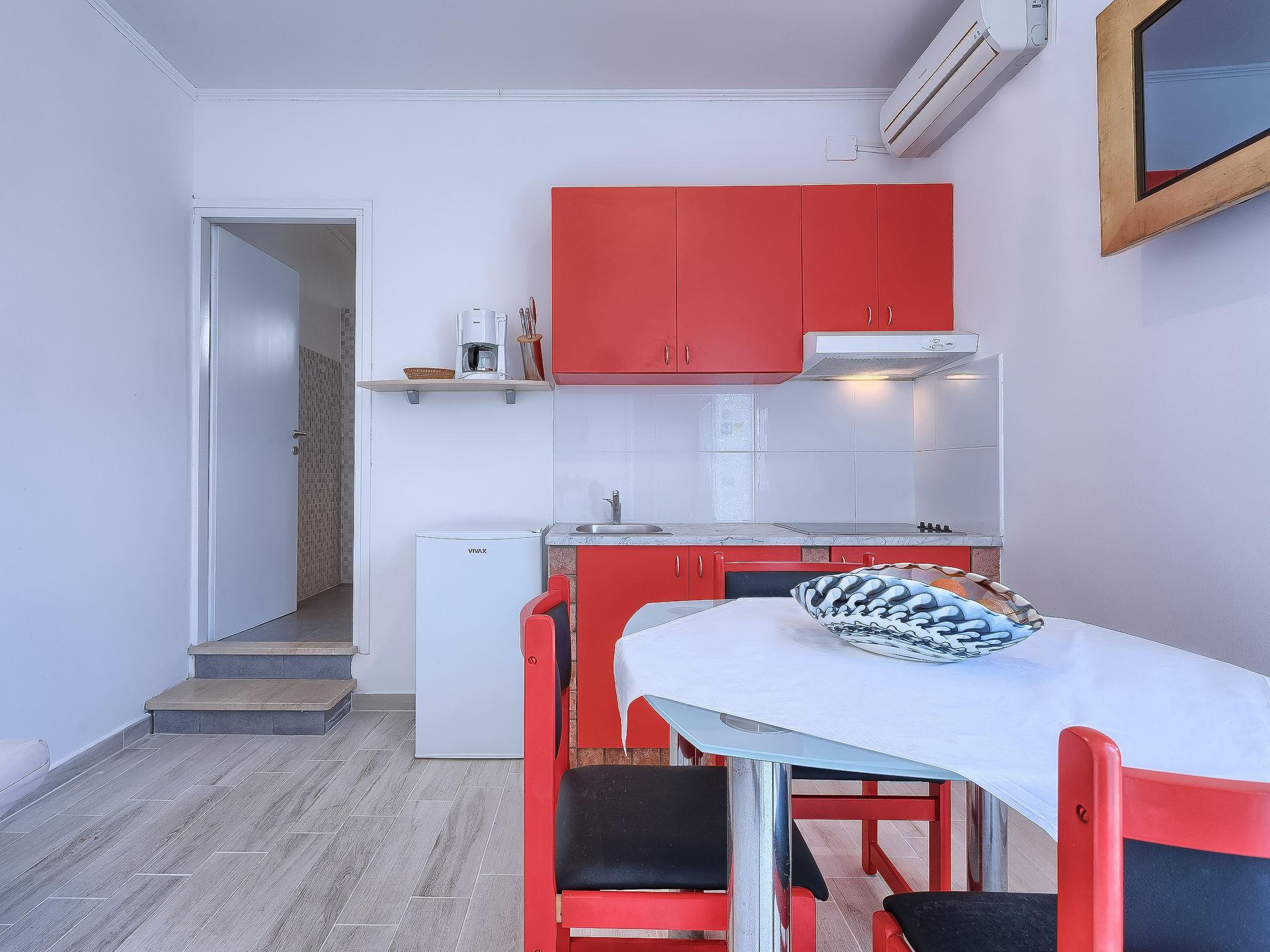 2-room apartment 35 m2, on the ground floor. Living/dining room with 1 double sofabed and satellite TV (flat screen), air conditioning. Exit to the terrace. 1 room with 1 double bed (2 x 80 cm, length 200 cm). Open kitchen (4 hot plates). Shower/bidet/WC. Terrace 10 m2. Terrace furniture. View of the garden. Facilities: Internet (WiFi, free).
