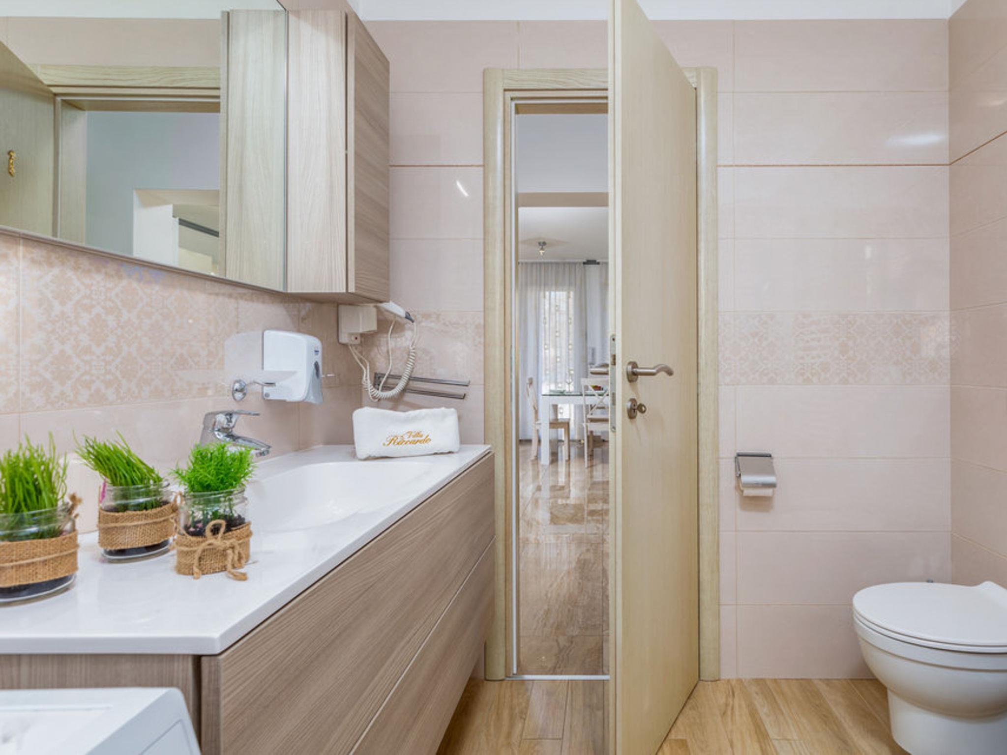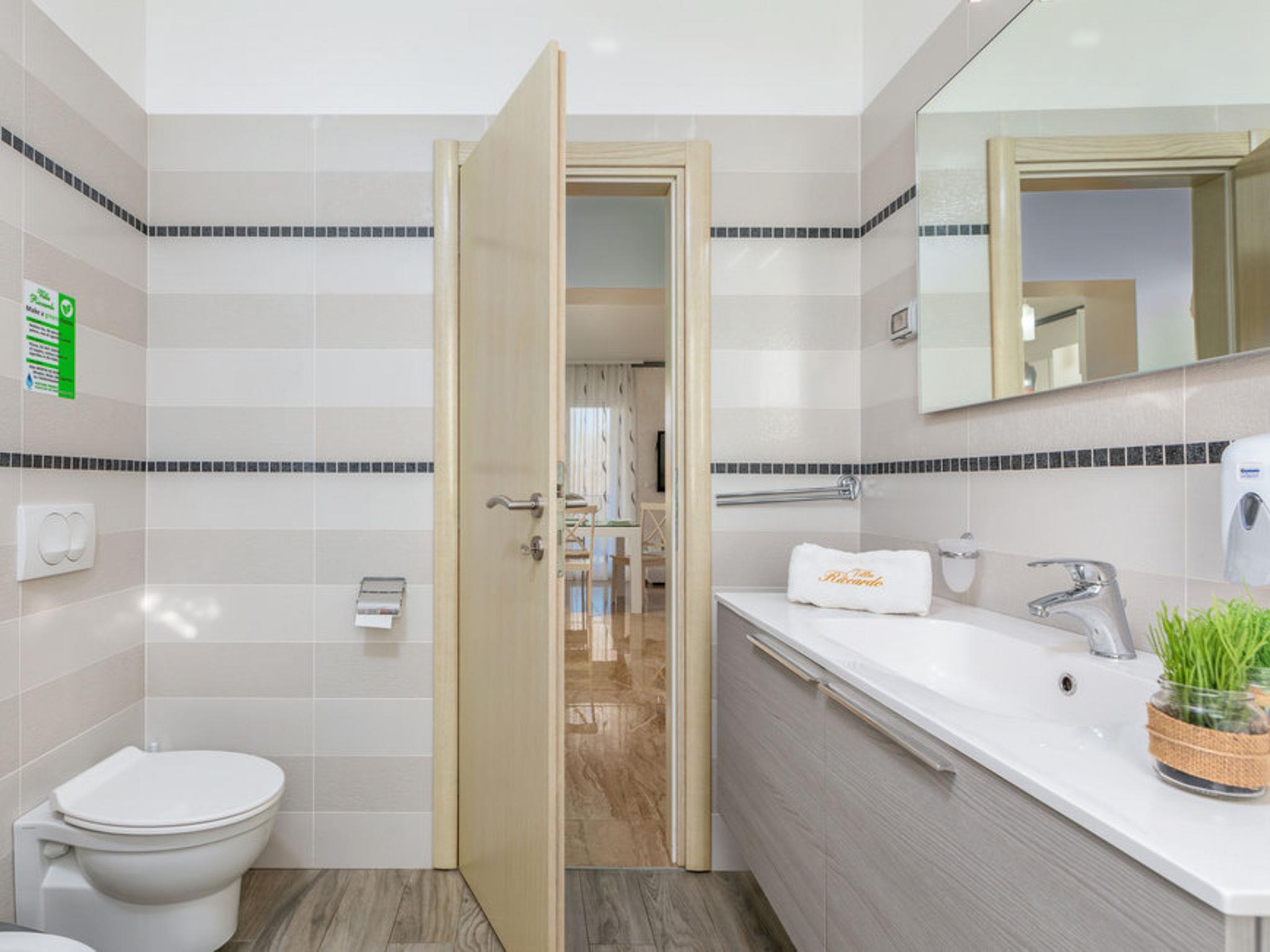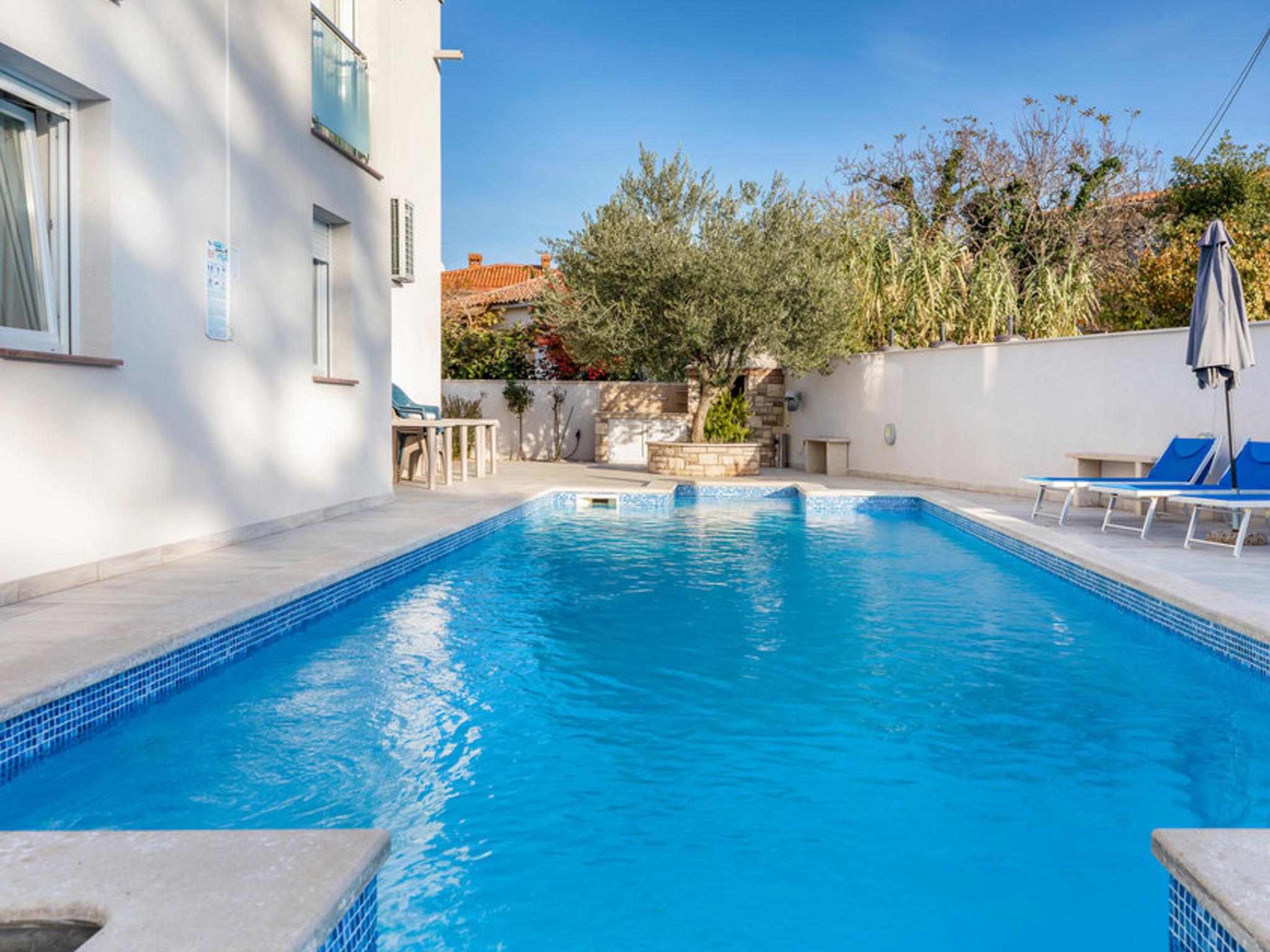 Single-family house "Villa Ricardo", 2 storeys. 500 m from the centre of Umag, in a sunny position, 50 m from the sea, 1 km from the beach, in a cul-de-sac. Private: property 463 m2 with wildlife garden and trees, swimming pool angular (5 x 10 m, depth 150 cm, seasonal availability: 01.May. - 15.Oct.) with internal staircase. Outdoor shower, garden furniture, barbecue. In the house: internet access, washing machine. Parking (for 2 cars) at the house on the premises. Shop, supermarket, restaurant 300 m, bus stop 200 m, sandy beach 1 km pebble beach 1 km, rocky beach 1 km, public bathing area 1 km, concrete beach 1 km. Marina 200 m, tennis 800 m, walking paths from the house 20 m. Groups of teenagers on request only. The house consists of 4 apartments rented as one unit.