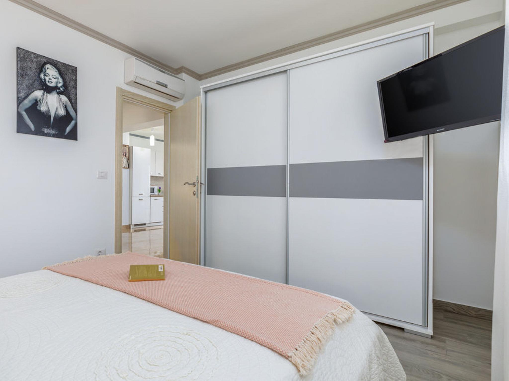 8-room house 300 m2 on 2 levels. Living/dining room with kitchen corner, satellite TV and air conditioning. Exit to the terrace. 2 rooms, each room with 1 double bed (2 x 90 cm, length 200 cm), TV and air conditioning. Living/dining room with TV and air conditioning. Exit to the terrace. 2 rooms, each room with 1 double bed (2 x 90 cm, length 200 cm), TV and air conditioning. Open kitchen (1 hot plate, oven, 3 gas rings, toaster, kettle, microwave). 2 showers/WC. Upper floor: living/dining room with kitchen corner, TV and air conditioning. Exit to the terrace. 2 rooms, each room with 1 double bed (2 x 90 cm, length 200 cm), TV and air conditioning. Living/dining room with TV and air conditioning. Exit to the terrace. 2 rooms, each room with 1 double bed (2 x 90 cm, length 200 cm), TV and air conditioning. Open kitchen (1 hot plate, oven, 3 gas rings, toaster, kettle, microwave, electric coffee machine). 2 showers/WC. 4 terraces 15 m2, covered. Deck chairs. View of the sea. Facilities: Internet (WiFi, free). Suitable for families. 2 apartments on the ground floor, each with living/dining room, kitchen and 2 bedrooms. 2 apartments on the first floor, each with living/dining room, kitchen and 2 bedrooms.