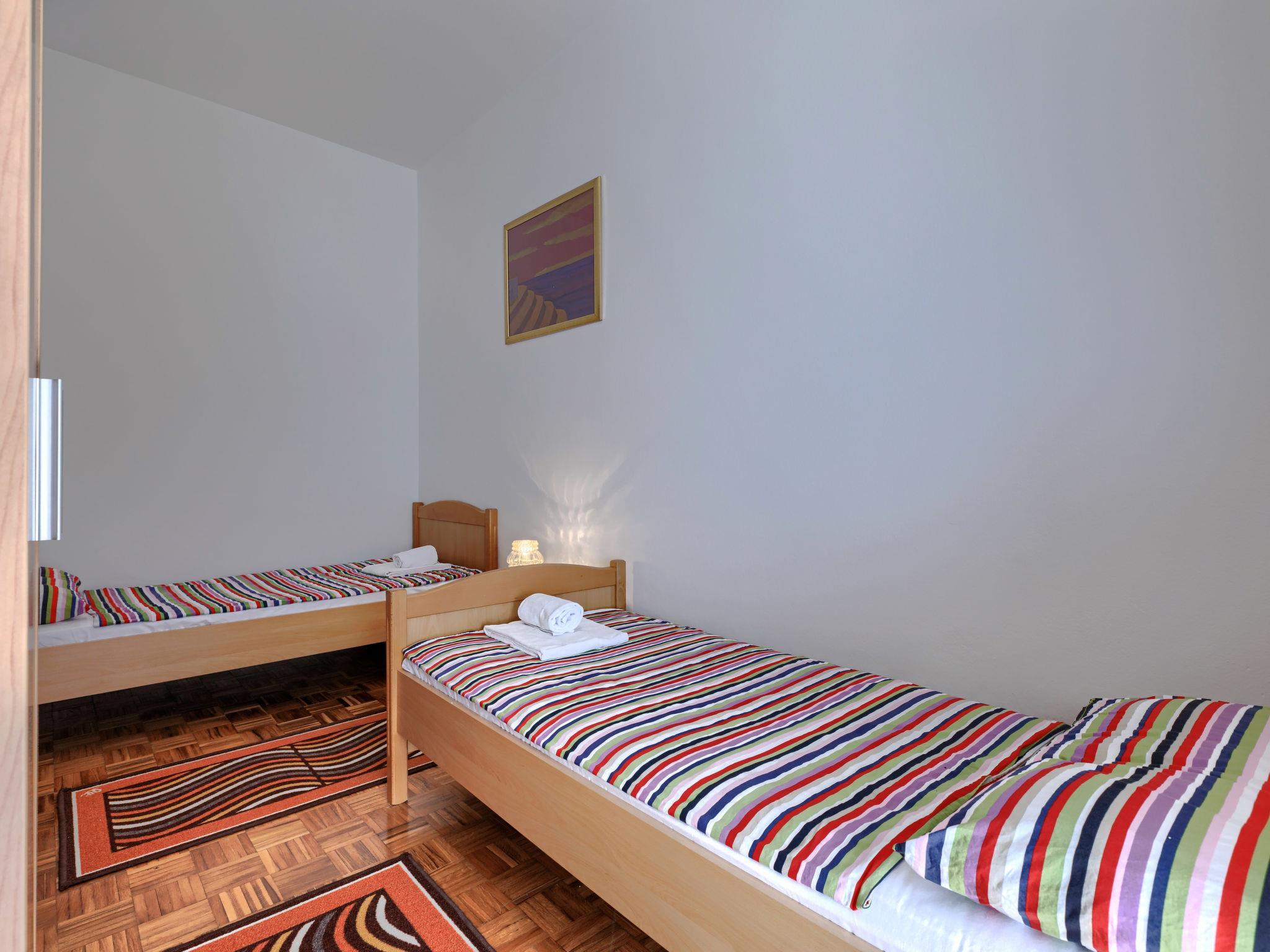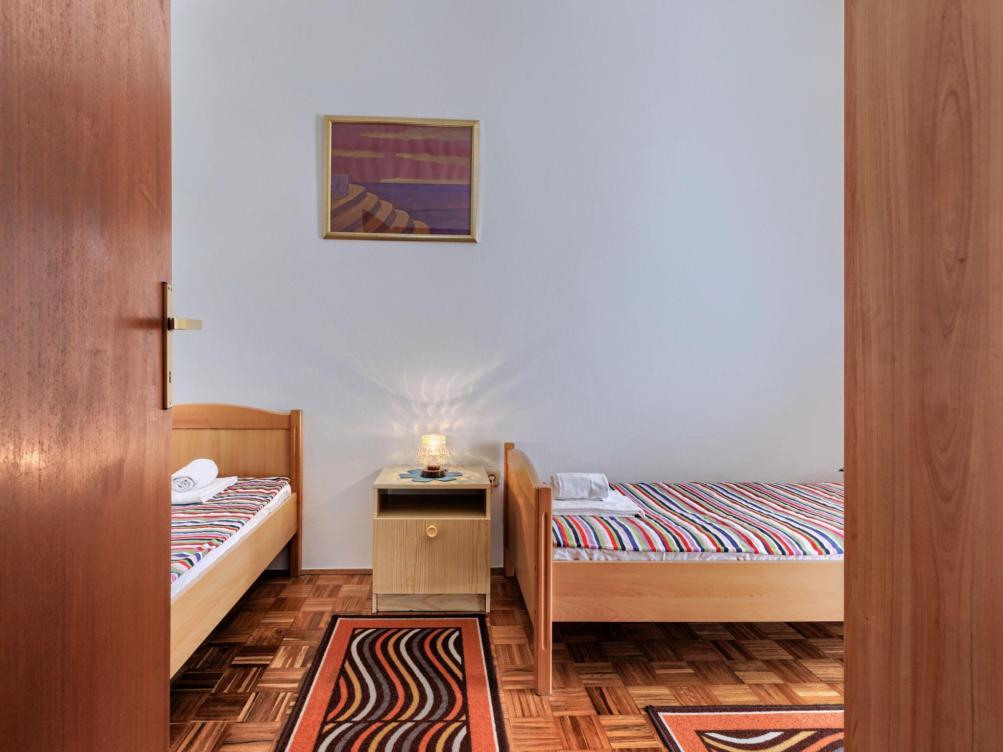 "Zoki 2", 3-room apartment 55 m2, on the upper ground floor. 1 room with 1 french bed (160 cm, length 200 cm), satellite TV. Exit to the balcony. 1 room with 2 beds (80 cm, length 200 cm). Exit to the balcony. Kitchen (oven, 4 ceramic glass hob hotplates, kettle, microwave, freezer) with dining table and air conditioning. Exit to the balcony. Shower/WC. 2 balconies 5 m2. Balcony furniture. Facilities: washing machine. Internet (WiFi, free). Parking (1 car) at the house. Please note: non-smoking house.