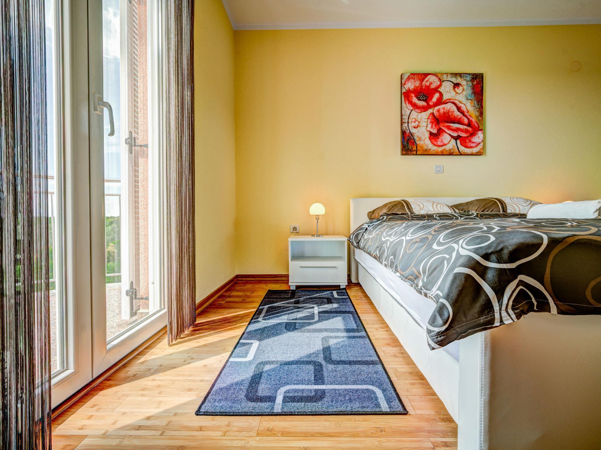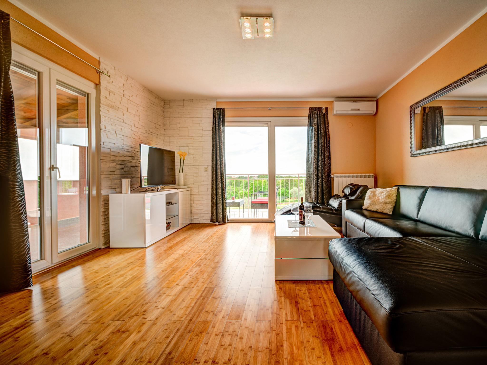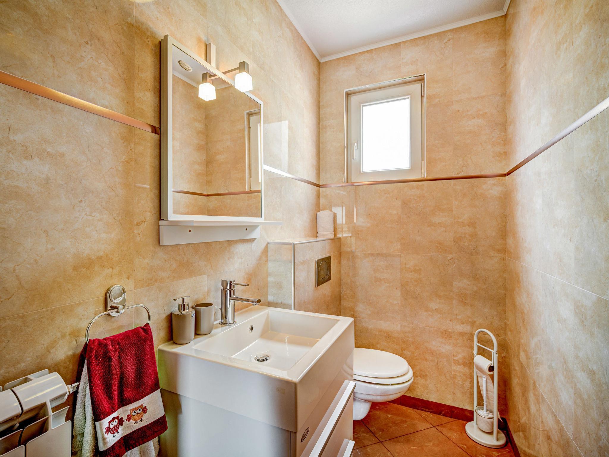 3-room apartment 120 m2 on 1st floor. Beautiful and tasteful furnishings: living room with satellite TV (flat screen), air conditioning. Exit to the terrace. 1 room with 1 double bed (2 x 90 cm, length 200 cm). Exit to the terrace. 1 room with 1 french bed (160 cm, length 200 cm). Exit to the terrace. Dining room. Open kitchen (oven, dishwasher, 4 ceramic glass hob hotplates, microwave, freezer, electric coffee machine). Sep. WC, bath/shower/bidet/WC, hydro massage bath. Heating (extra). 2 terraces 16 m2, covered, 2 terraces 5 m2 partly roofed. Terrace furniture. Partial distant view of the sea. Facilities: Internet (WiFi, free). Please note: fire extinguisher.