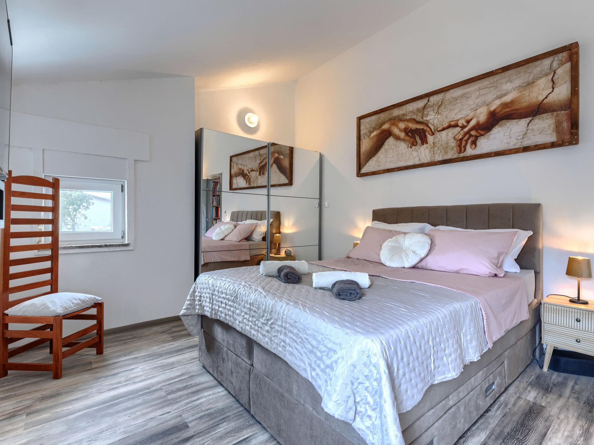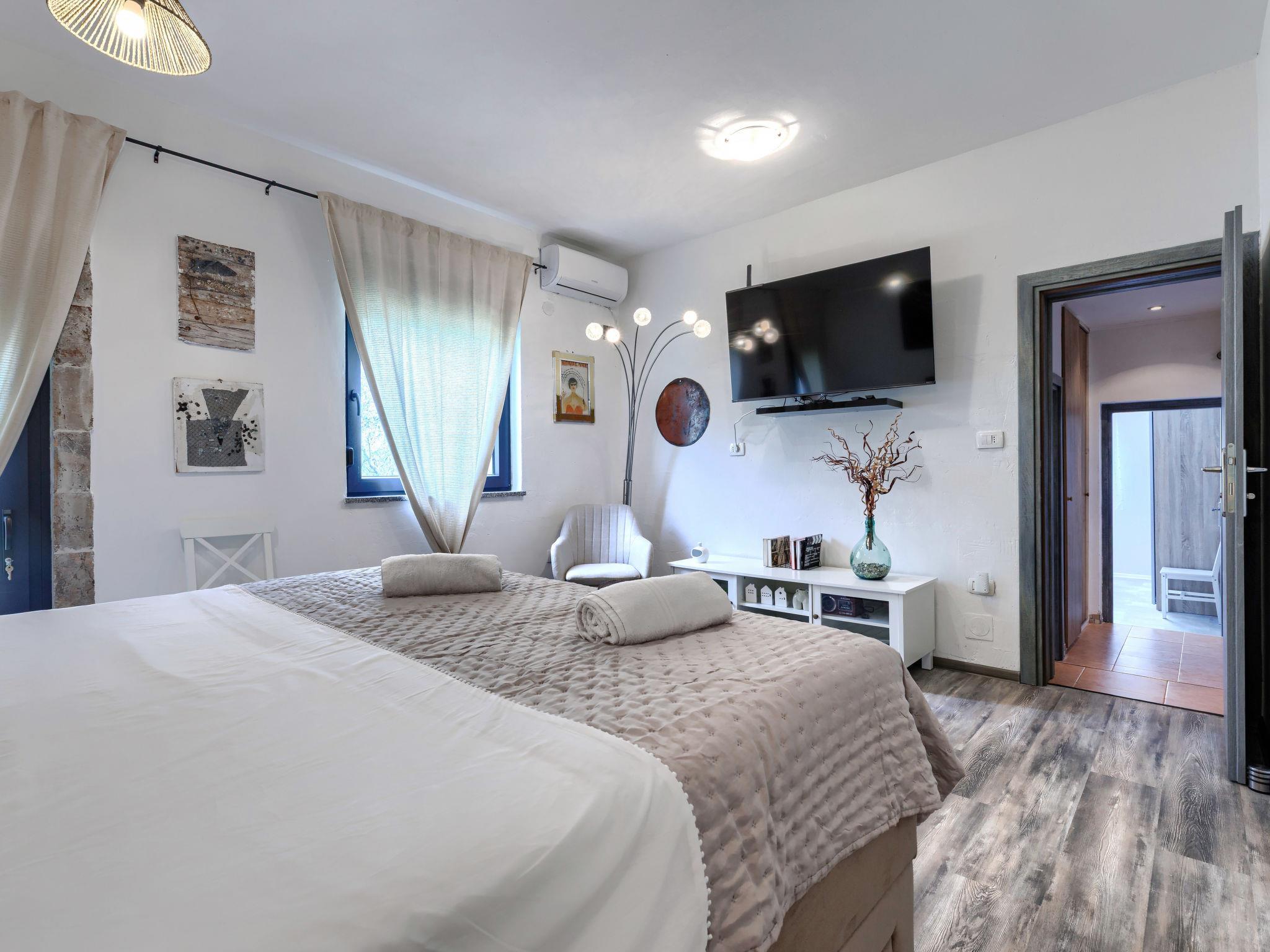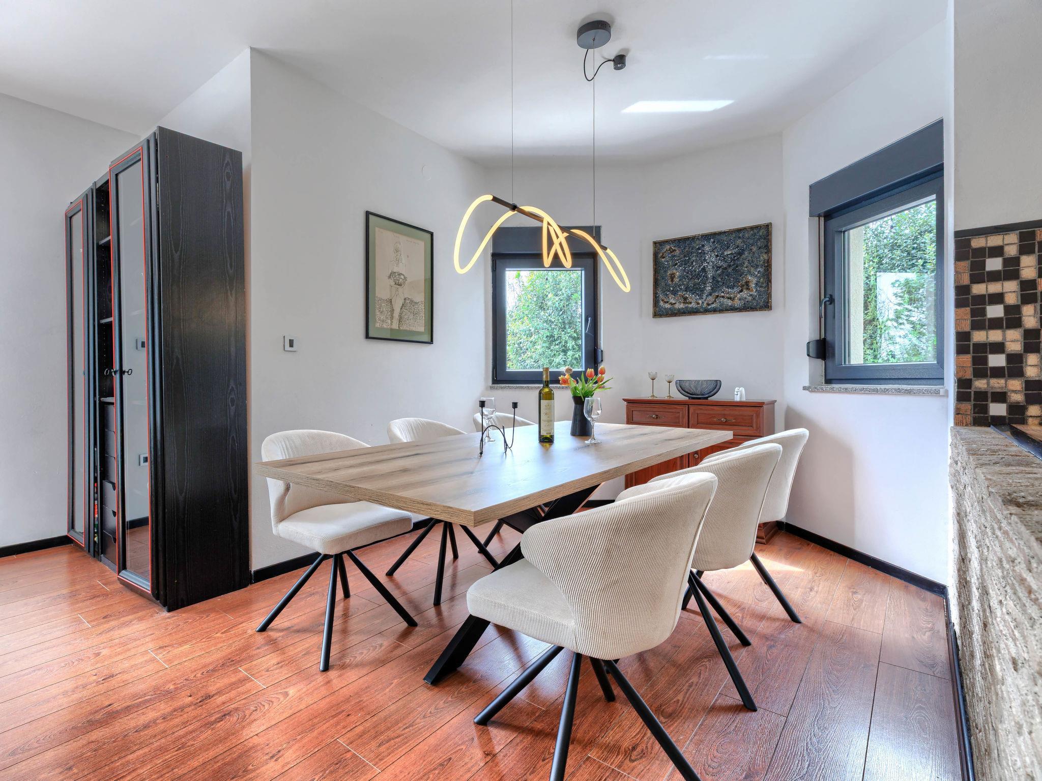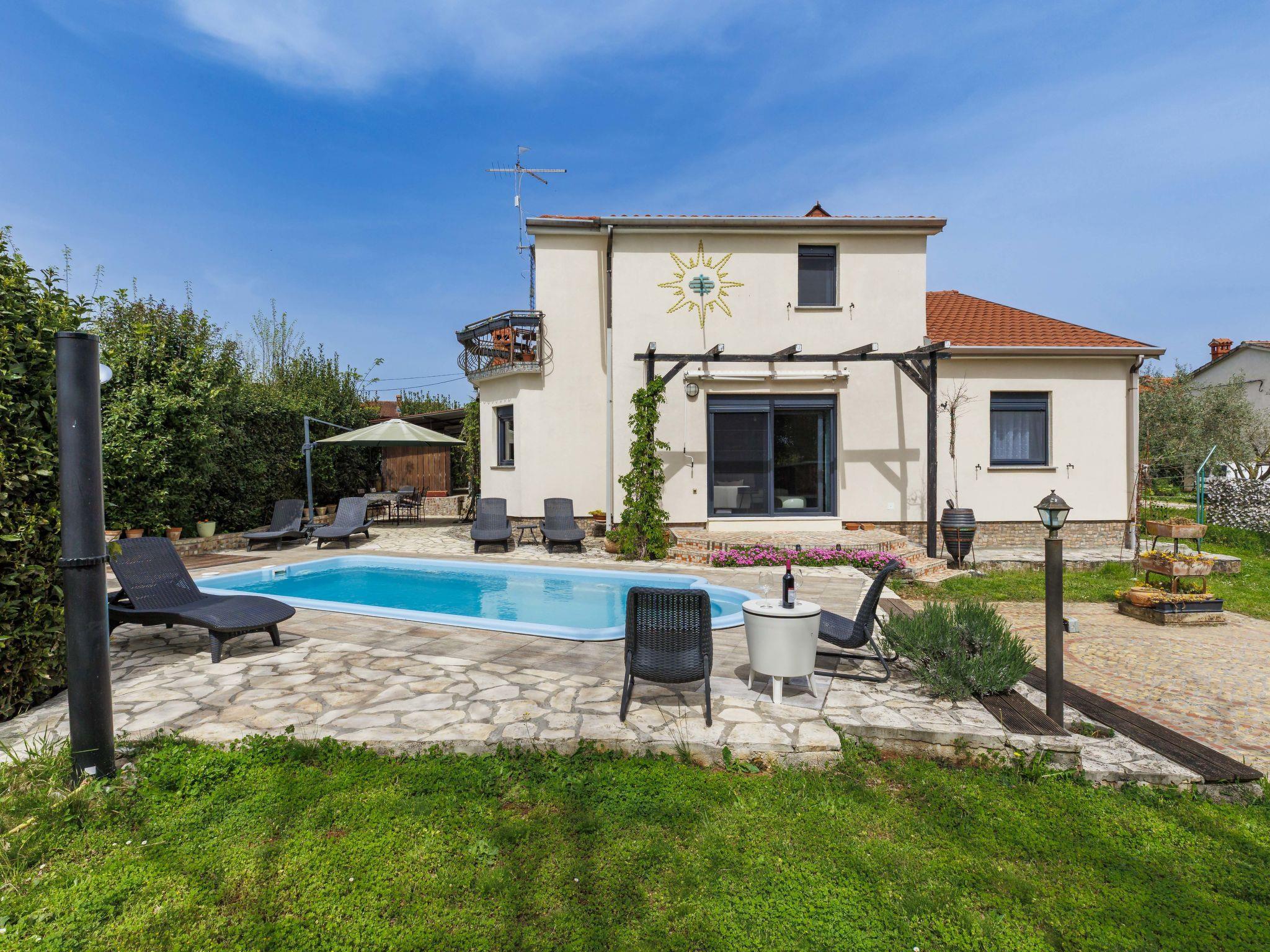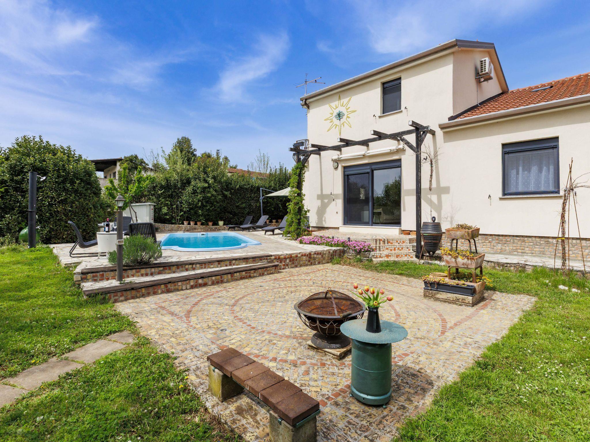 Beautiful house "Acquila", 2 storeys in 2025, surrounded by trees. In the hamlet Lokvini 4.5 km from the centre of Umag, in a quiet position, 4.5 km from the sea, 4.5 km from the beach. Private: property 600 m2, garden, swimming pool (24 m2, depth 155 cm, seasonal availability: 01.May. - 15.Oct.) with internal staircase. Outdoor shower, hot tub, terrace (30 m2), garden furniture, barbecue, pool maintenance by the owner/gardener. In the house: internet access. Parking (for 2 cars) at the house on the premises. Shop 4 km, supermarket 4 km, restaurant 1 km, bus stop 4.5 km, railway station 27 km, pebble beach 4.5 km. Golf course (18 hole) 9.5 km, tennis 4.5 km, cycle lane 50 m. Nearby attractions: Aquapark 15 km. The owner does not accept any groups. The owner does not accept any youth groups.