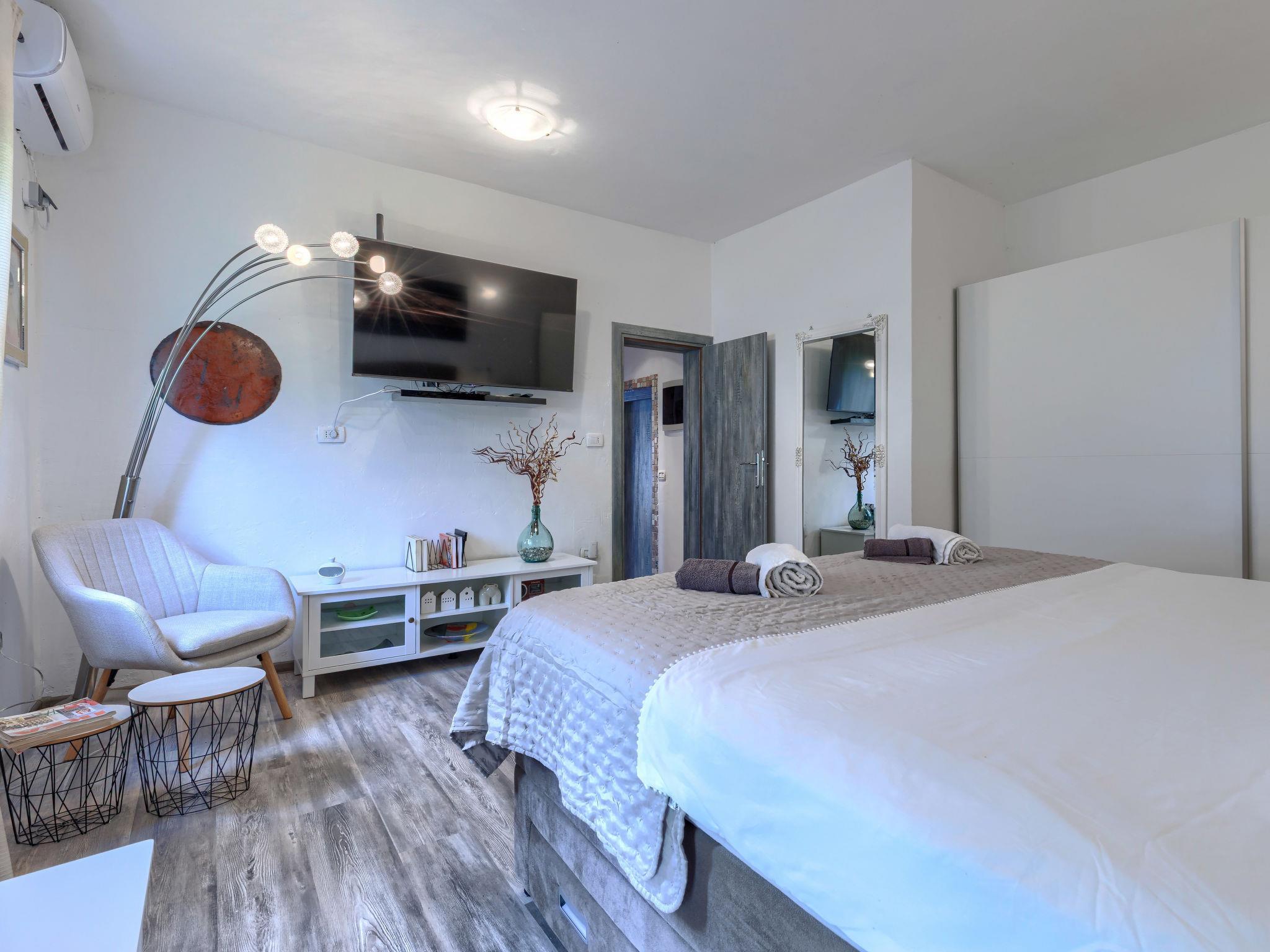4-room house 180 m2. Tasteful furnishings: living/dining room with satellite TV. Exit to the garden, to the terrace, to the swimming pool. 1 room with 1 french bed (180 cm, length 200 cm), satellite TV and air conditioning. Exit to the garden. 1 room with 1 french bed (160 cm, length 200 cm), shower/WC, satellite TV and air conditioning. Open kitchen (4 hot plates, oven, dishwasher, toaster, kettle, microwave, freezer, electric coffee machine). Shower/WC, shower/bidet/WC. Upper floor: gallery with air conditioning. Exit to the balcony. 1 room with 1 french bed (160 cm, length 200 cm), satellite TV and air conditioning. Small balcony 8 m2, terrace 30 m2. Terrace furniture. Panoramic view of the countryside. Facilities: washing machine, safe, hair dryer. Internet (WiFi, free). Please note: non-smoking house. Maximum 2 pets/ dogs allowed.