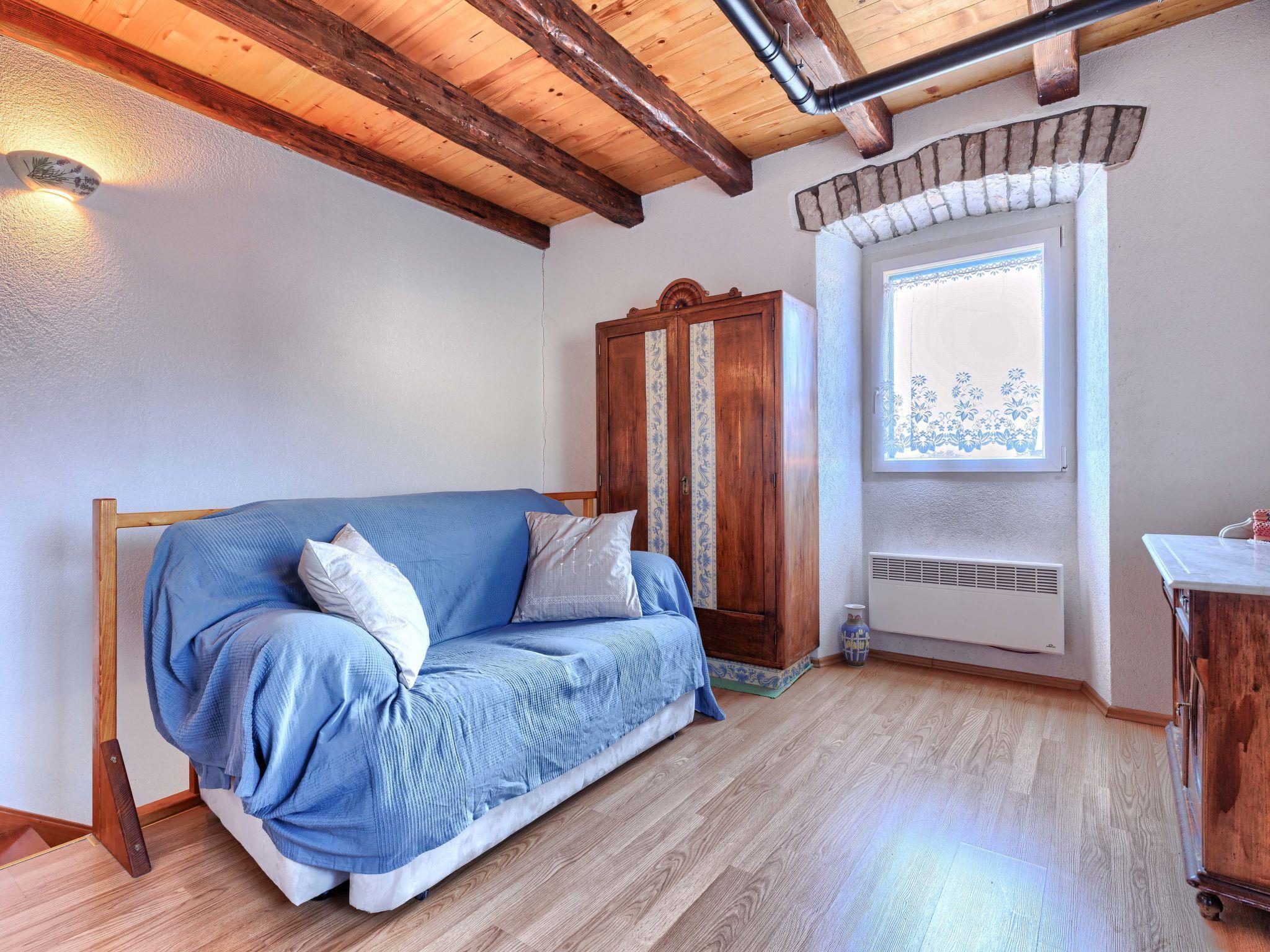 3-room terraced house 88 m2 on 3 levels. Rustic furnishings: living/dining room. Open kitchen (oven, 6 gas rings, kettle, microwave, freezer). Upper floor: open living room with 1 sofabed (140 cm, length 200 cm), air conditioning. Shower/bidet/WC. 2nd upper floor: 1 open room with 1 french bed (160 cm, length 200 cm). No heating option. Panoramic view of the countryside. Facilities: hair dryer. Internet (WiFi, free).