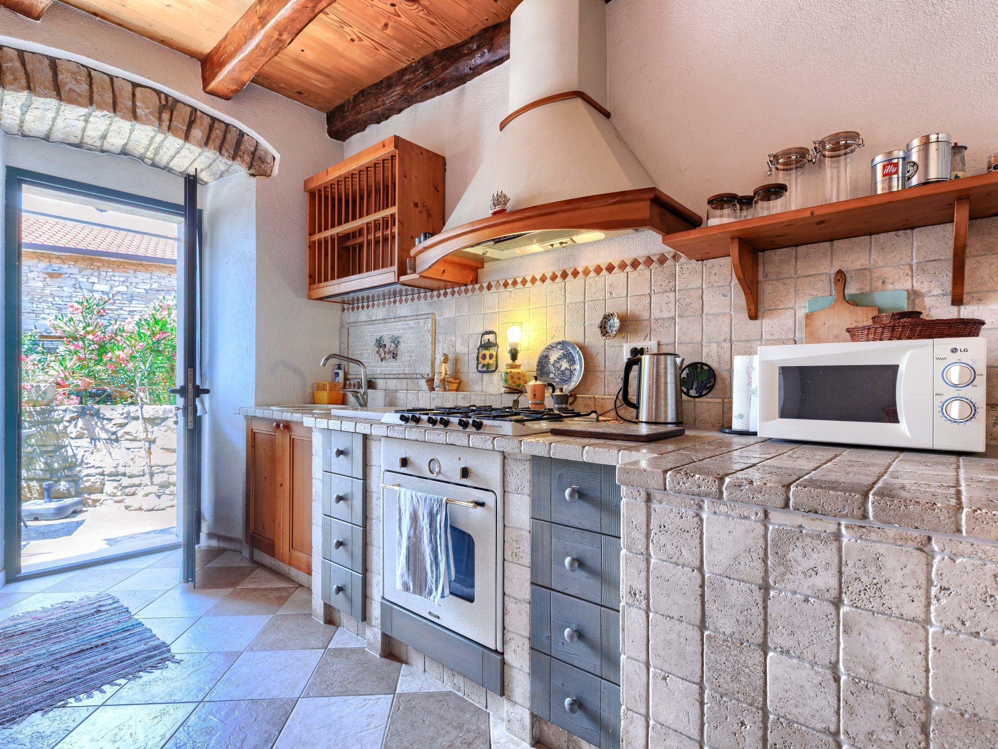 Rustic terraced house "Petra", 3 storeys. In the hamlet Vardica 7 km from the centre of Umag, 7 km from the sea. Private: property 80 m2 (fenced). Terrace (30 m2), garden furniture, barbecue. In the house: internet access, washing machine. Public parking. Shop 5 km, supermarket 7 km, restaurant 3 km, bus stop 7 km, railway station 34 km, sandy beach 7 km pebble beach 7 km. Golf course (18 hole) 7 km.