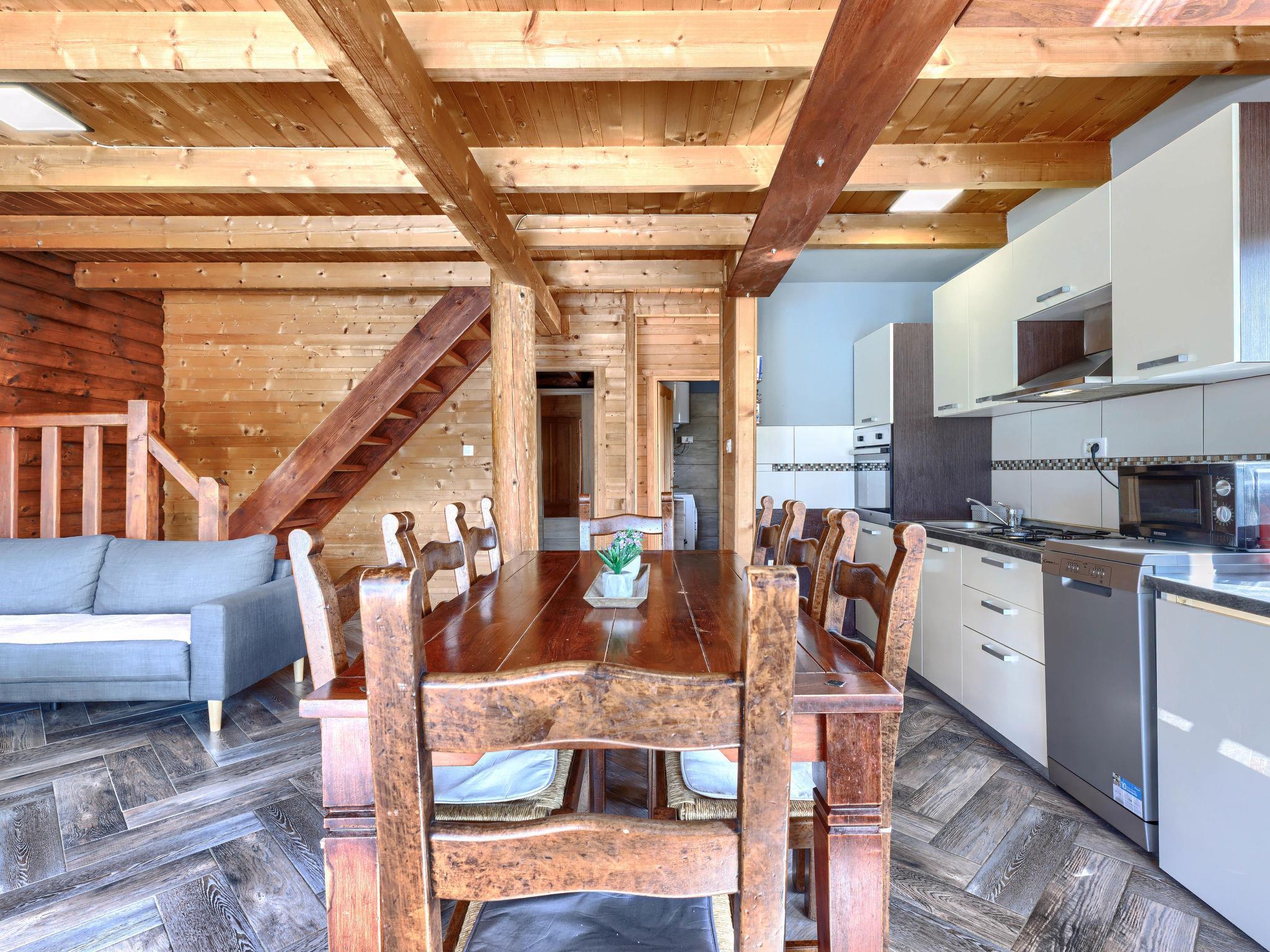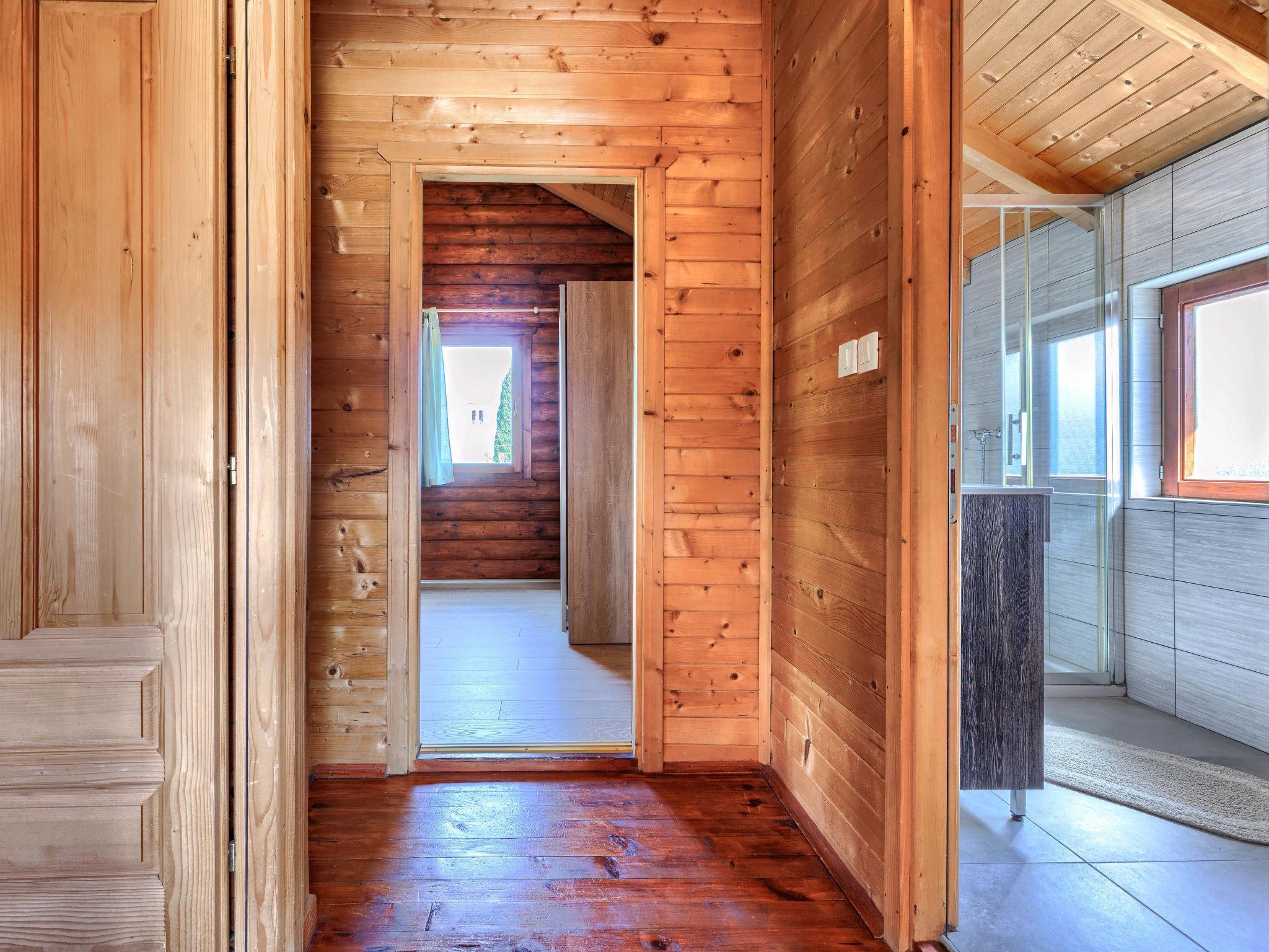 5-room house 120 m2 on 2 levels. Living/dining room with satellite TV (flat screen), wood-burning stove and air conditioning. Exit to the terrace. 1 room with 1 french bed (160 cm). Open kitchen (4 hot plates, oven, dishwasher, microwave, freezer, electric coffee machine). Shower/WC. Wood heating. Upper floor: (open staircase) entrance hall with air conditioning. 3 rooms, each room with 1 french bed (180 cm). Shower/WC. Forced-air heating. Terrace 18 m2, roofed. Terrace furniture, deck chairs, box-room. Facilities: iron, logs (free). Internet (WiFi, free). Please note: non-smoking house. Maximum 1 pet/ dog allowed. Steep stairs towards the upper floor.