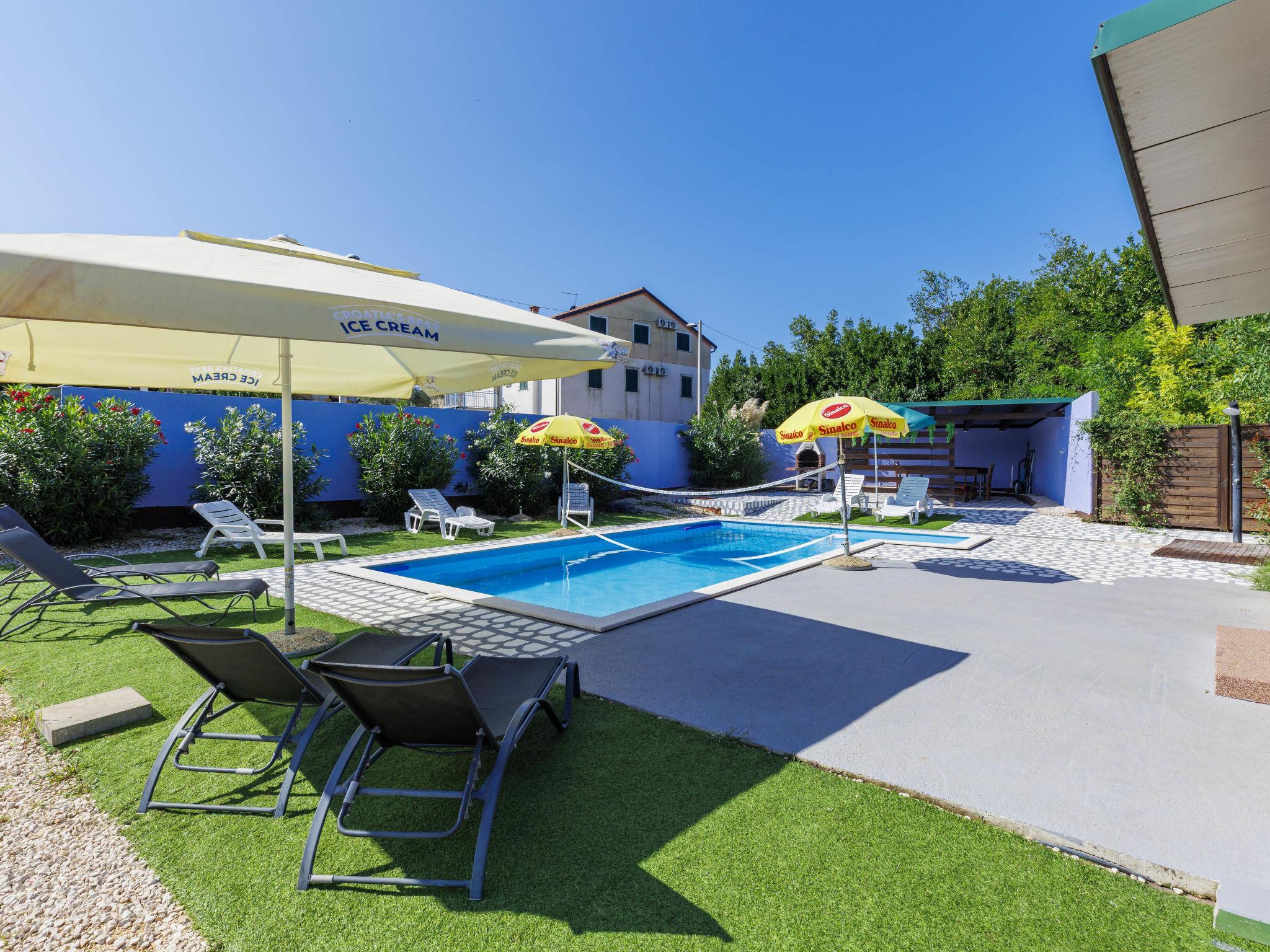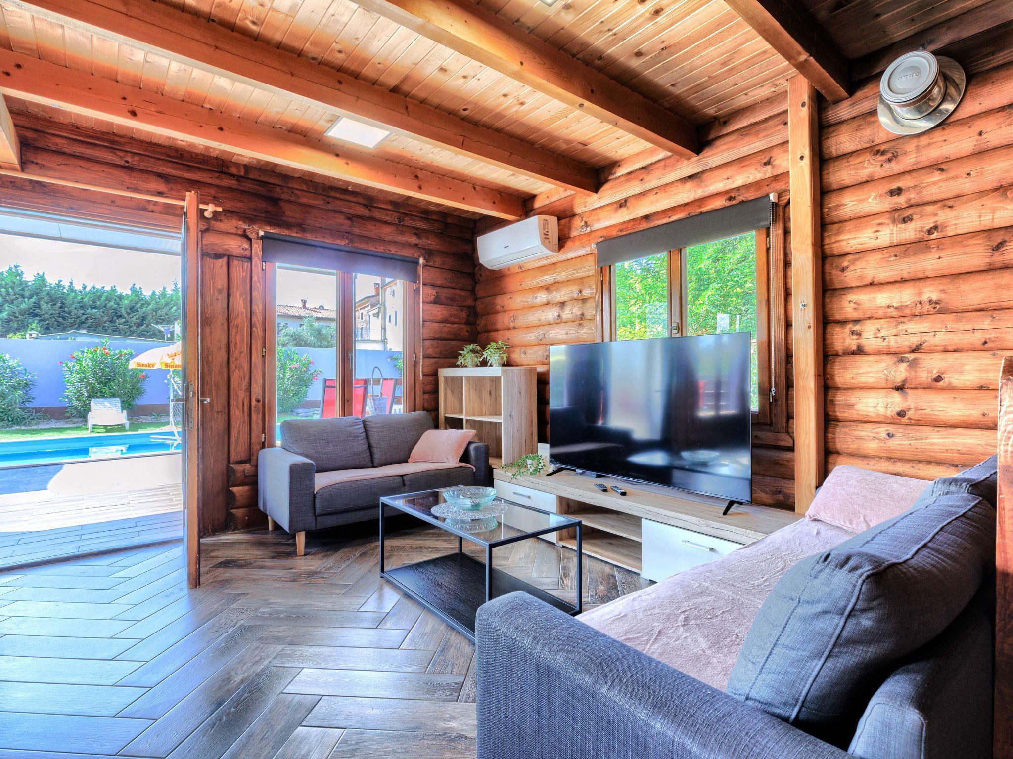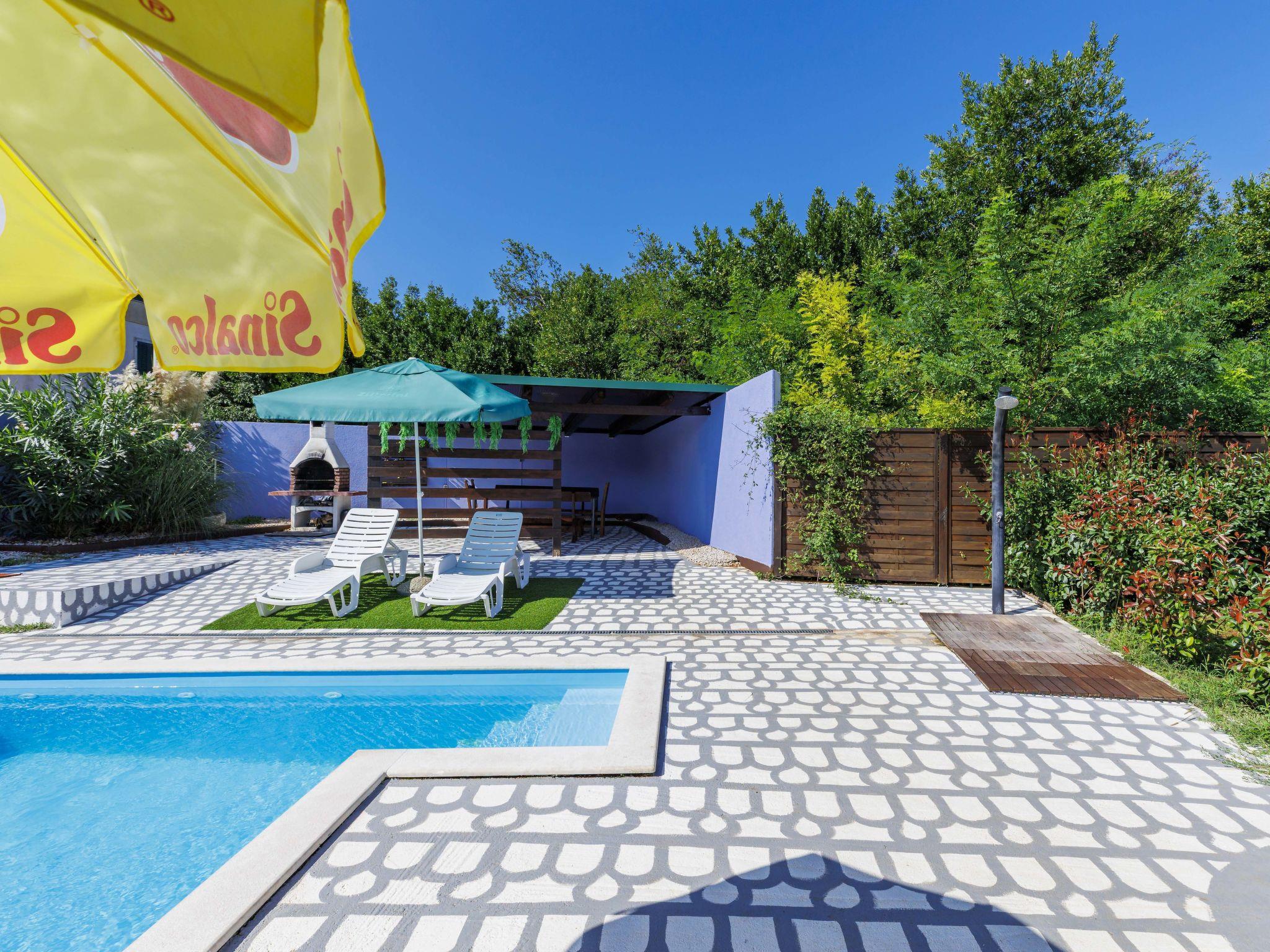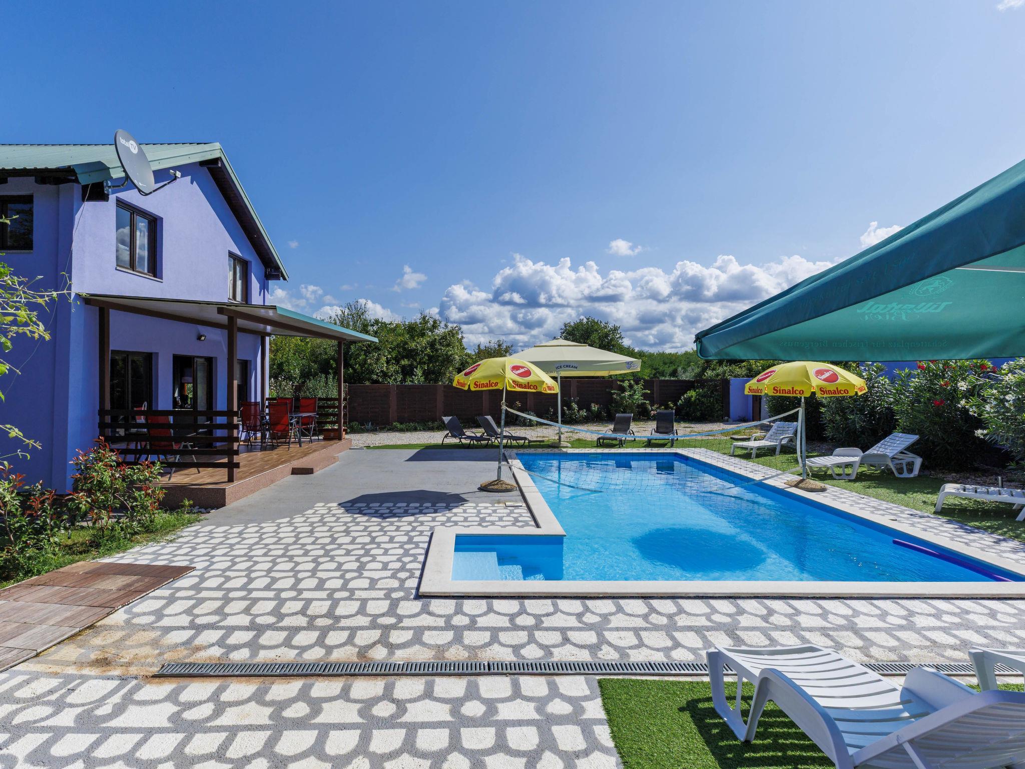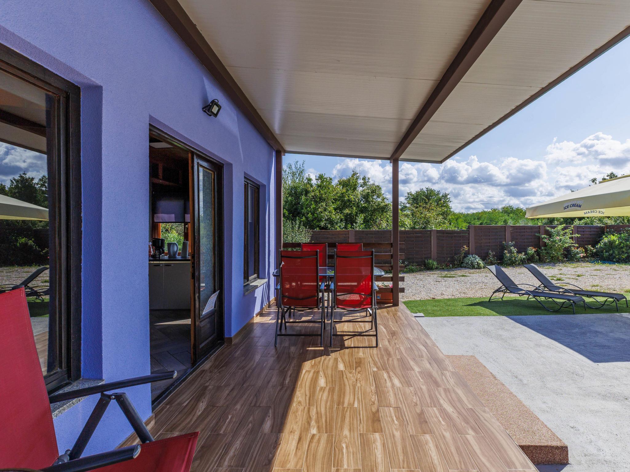 Single-family house "Minja", 2 storeys, built in 2015. In the hamlet Martincici 2 km from the centre of Buje, 8 km from the centre of Umag, 7 km from the sea. Private: property 750 m2 (fenced), swimming pool angular (8 x 4 m, depth 150 cm, seasonal availability: 04.Apr. - 06.Nov.) with internal staircase. Outdoor shower, terrace, garden furniture, barbecue, pool maintenance by the owner/gardener. In the house: internet access, washing machine. Parking (for 2 cars) on the premises. Shop 1 km, supermarket 2 km, bus stop 7 km, railway station 34 km, pebble beach 7 km, rocky beach 7 km.