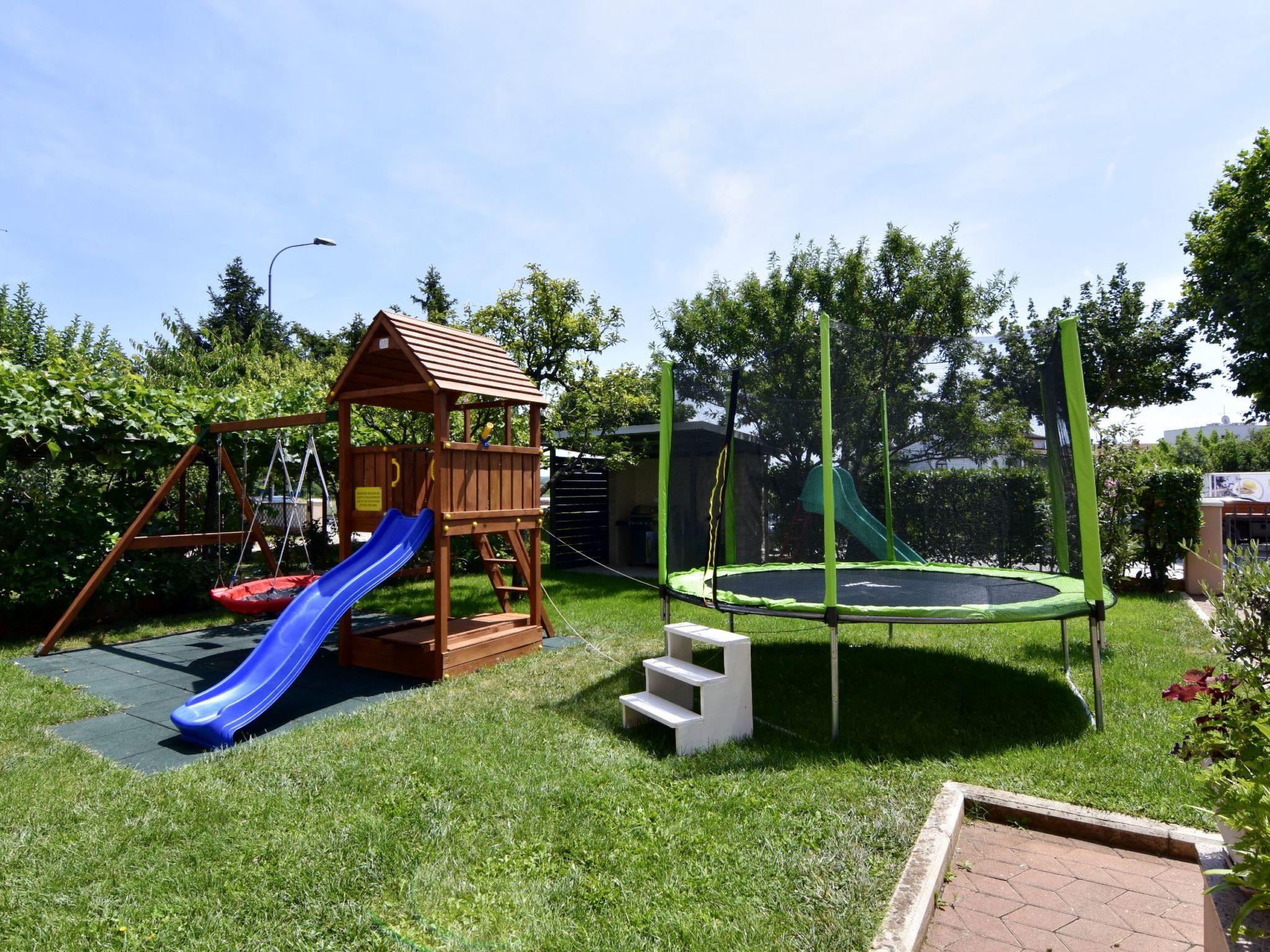 In the fenced garden there is a children's playground with slide, swing and trampoline for shared use. Free public parking is available in front of the house and you have to cross the main road to get there.
