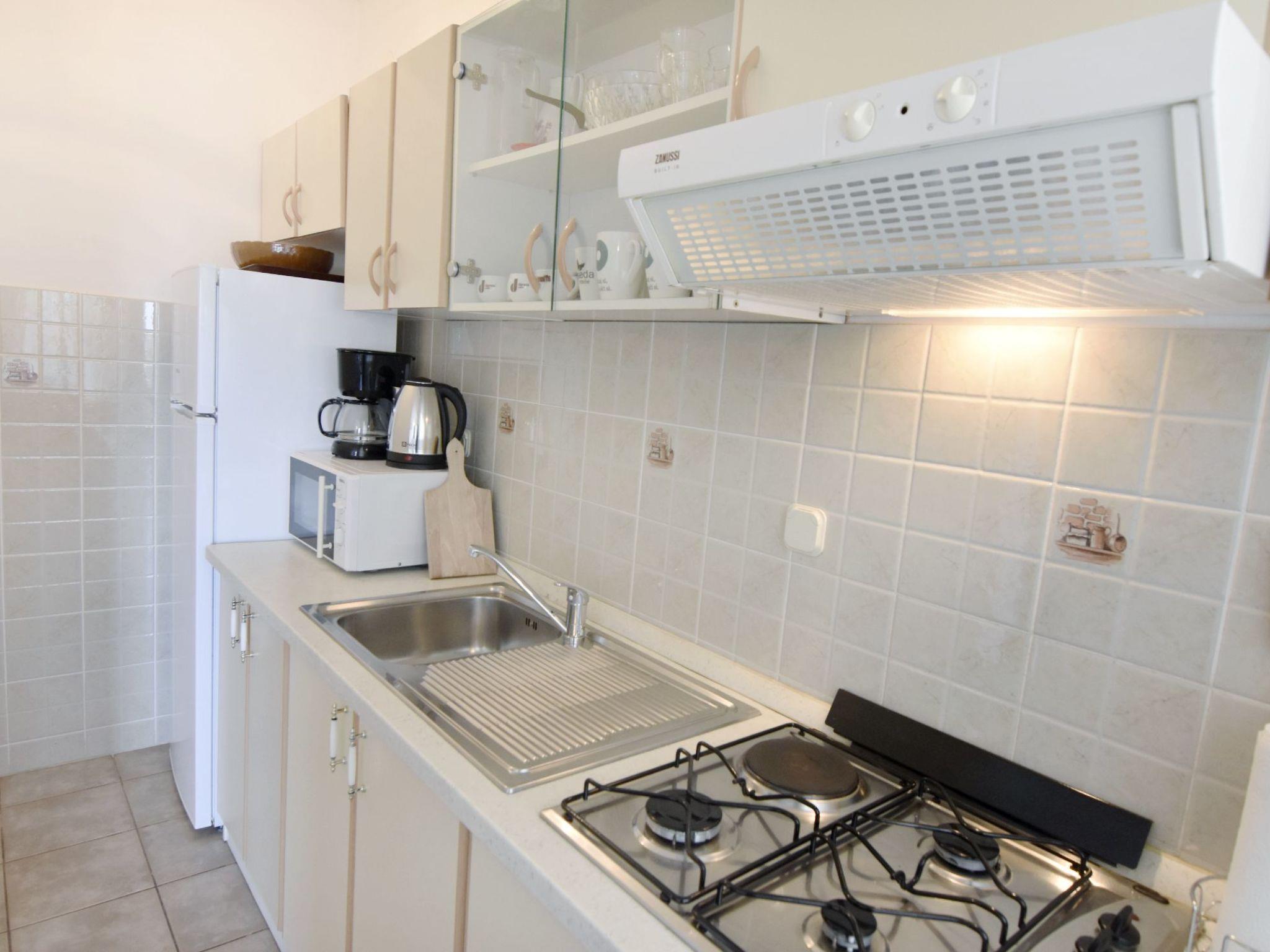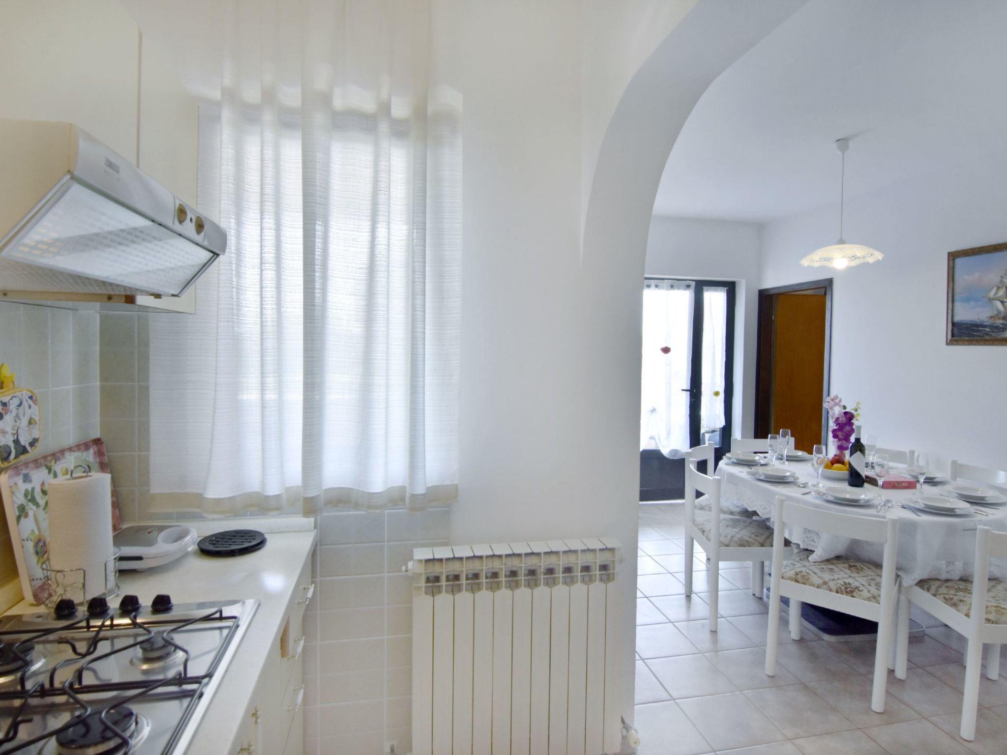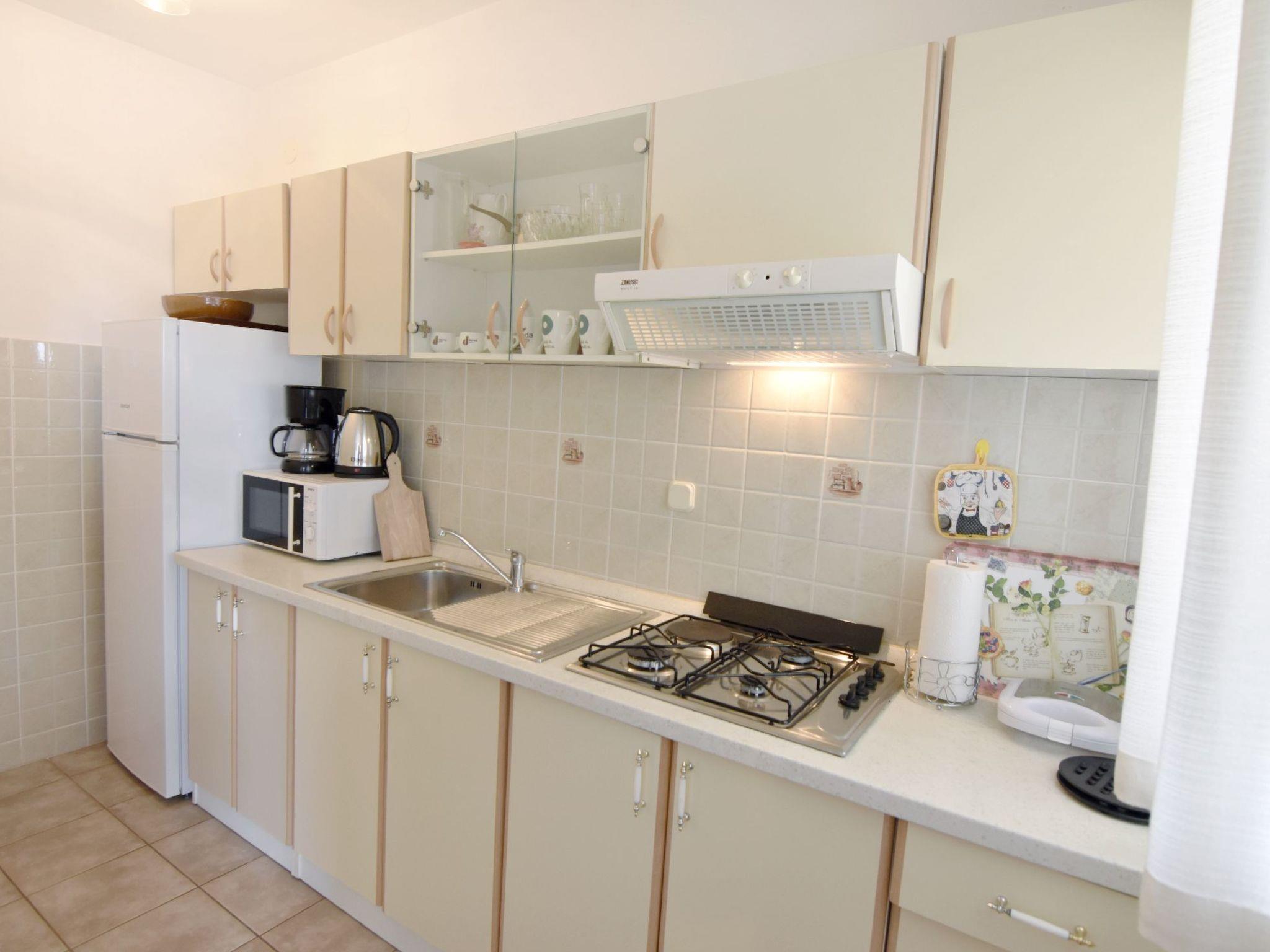 The kitchen is fully equipped with a 3-burner gas hob and electric hob, fridge with freezer compartment, microwave, filter coffee machine, kettle, toaster and kitchen utensils. In the dining area you will find a table and 8 chairs, air conditioning, a flat-screen satellite TV and free WiFi access to the covered terrace with table and chairs.