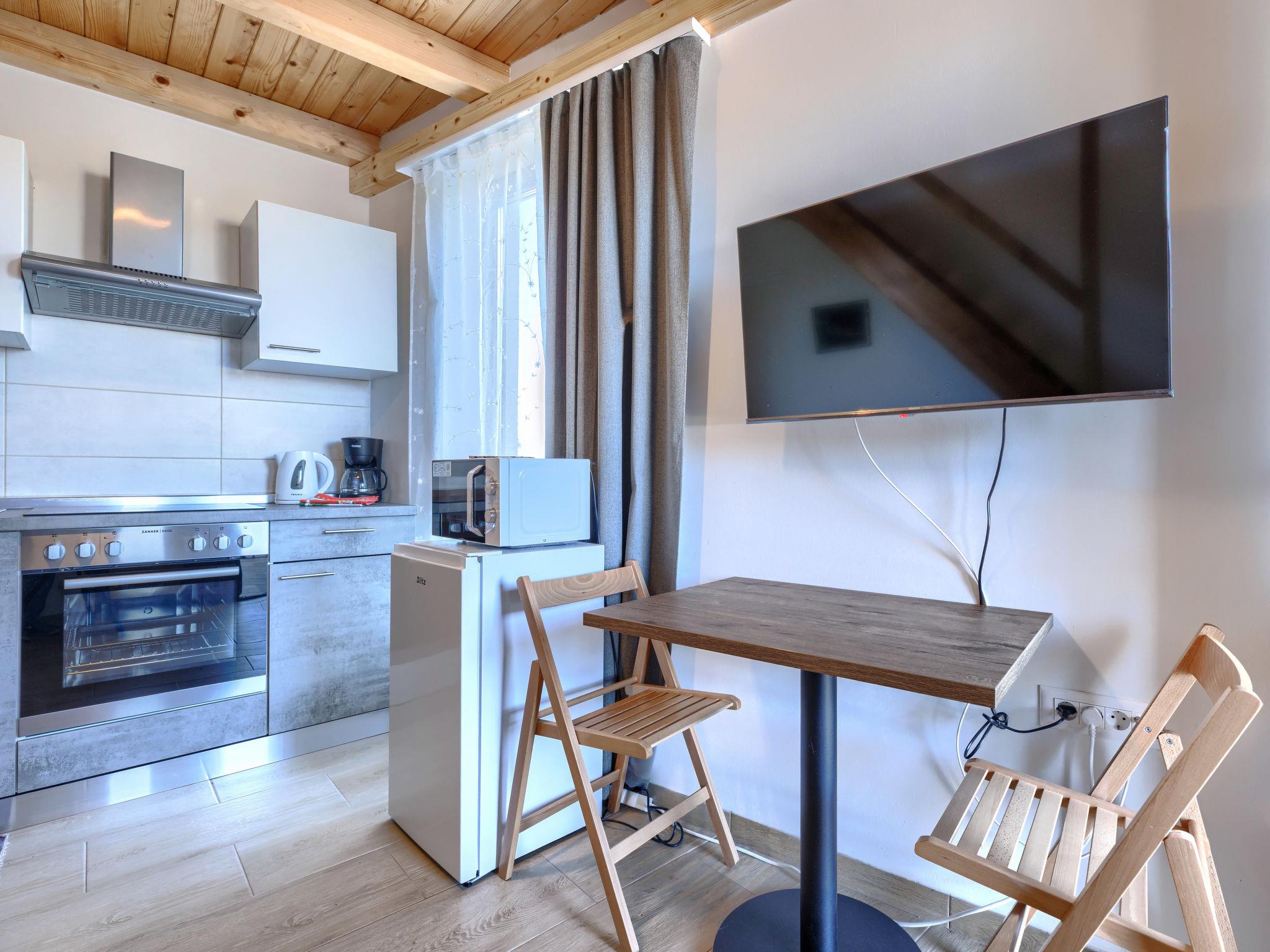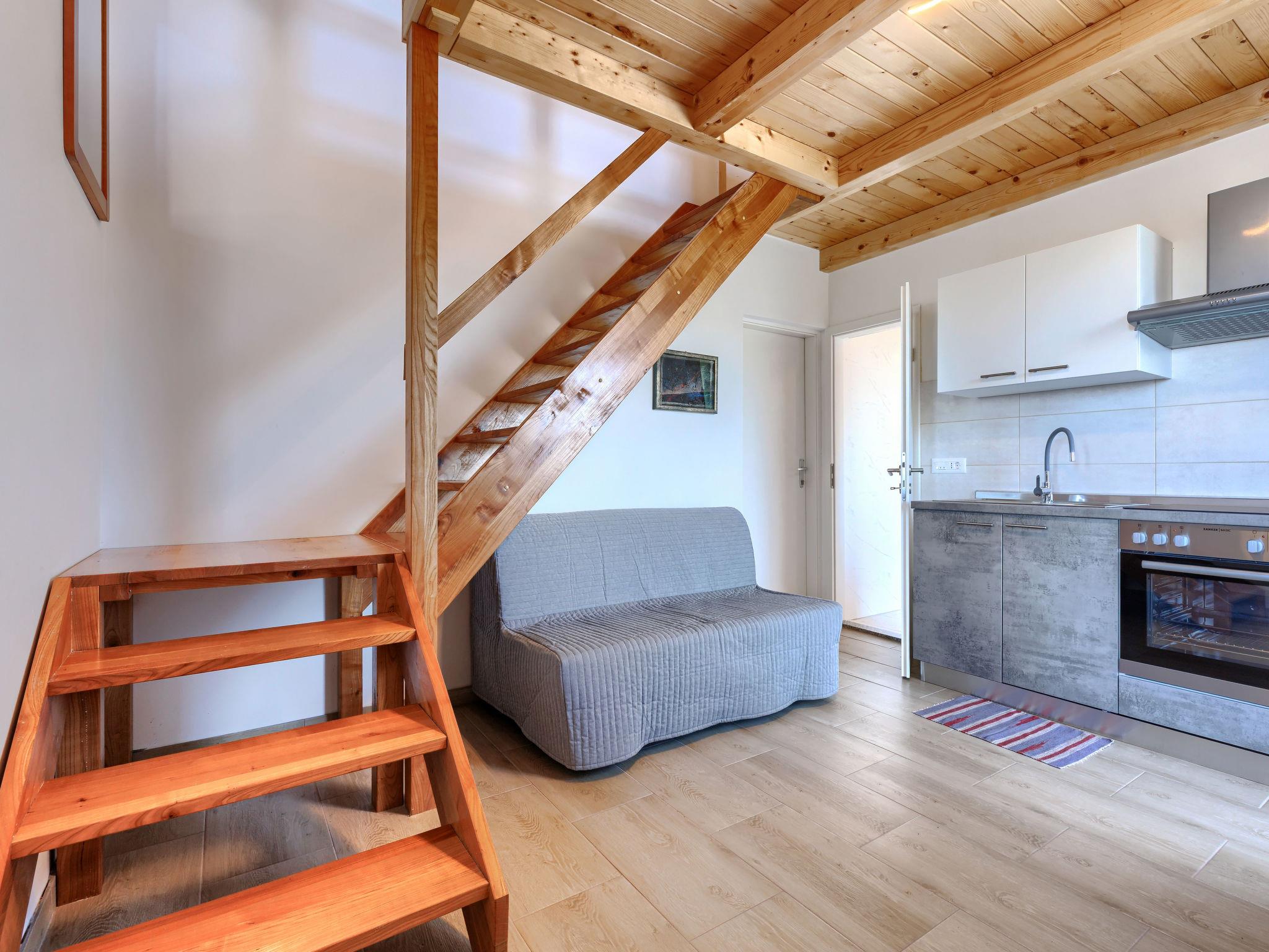 "Pintur", 1-room apartment 27 m2 on 2 levels on 2nd floor. Very tasteful furnishings: living/dining room with satellite TV. Open kitchen (oven, 4 ceramic glass hob hotplates, toaster, kettle, microwave, electric coffee machine). Shower/WC. Upper floor: open gallery 9 m2, with sloping ceilings with 1 double bed (2 x 80 cm, length 200 cm), air conditioning. Beautiful view of the sea. Facilities: hair dryer. Internet (WiFi). Please note: non-smoking house.