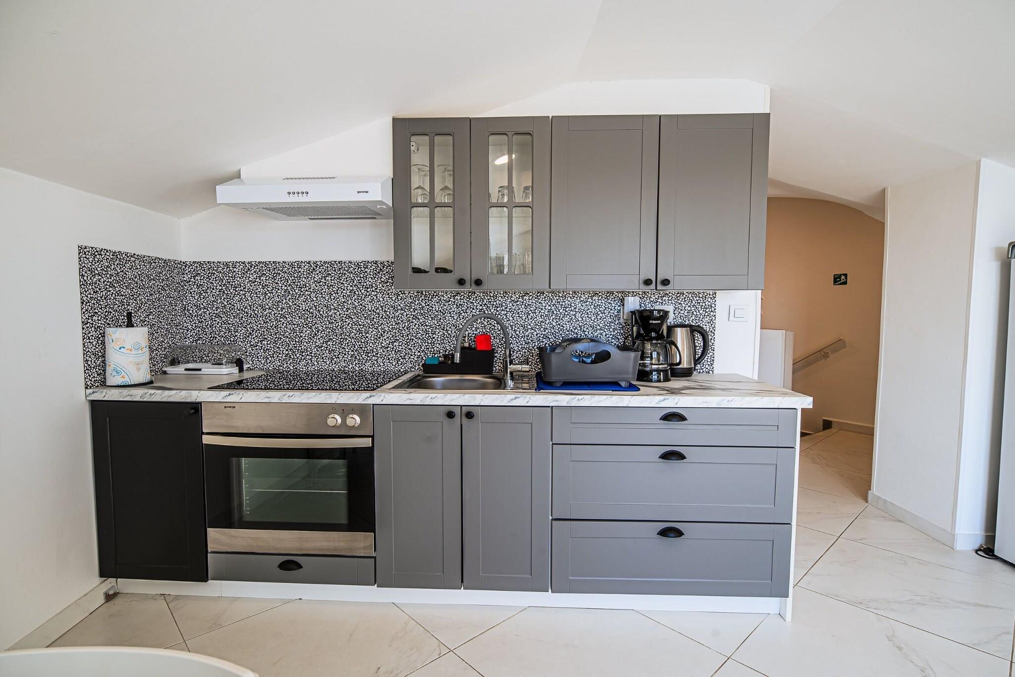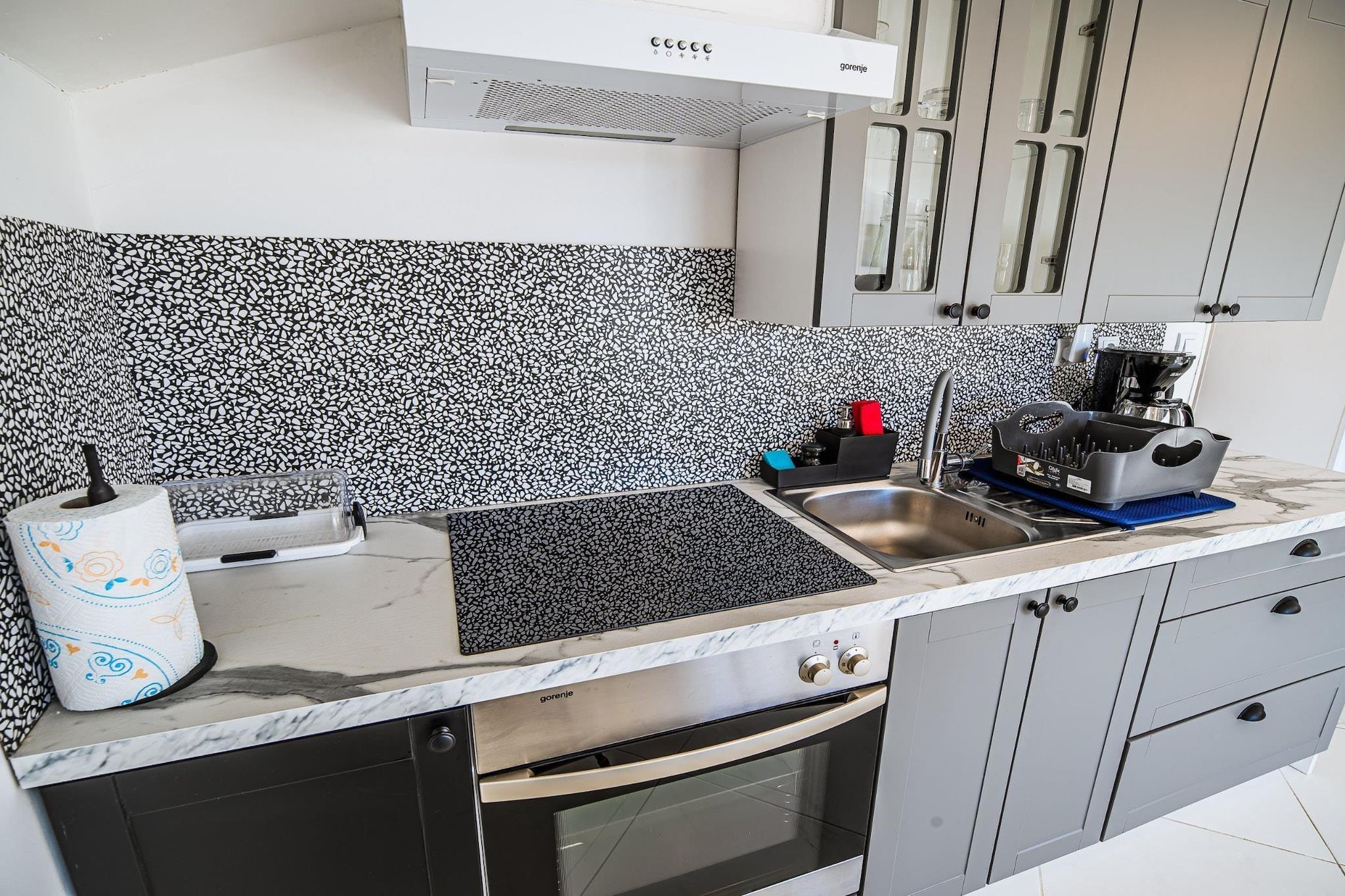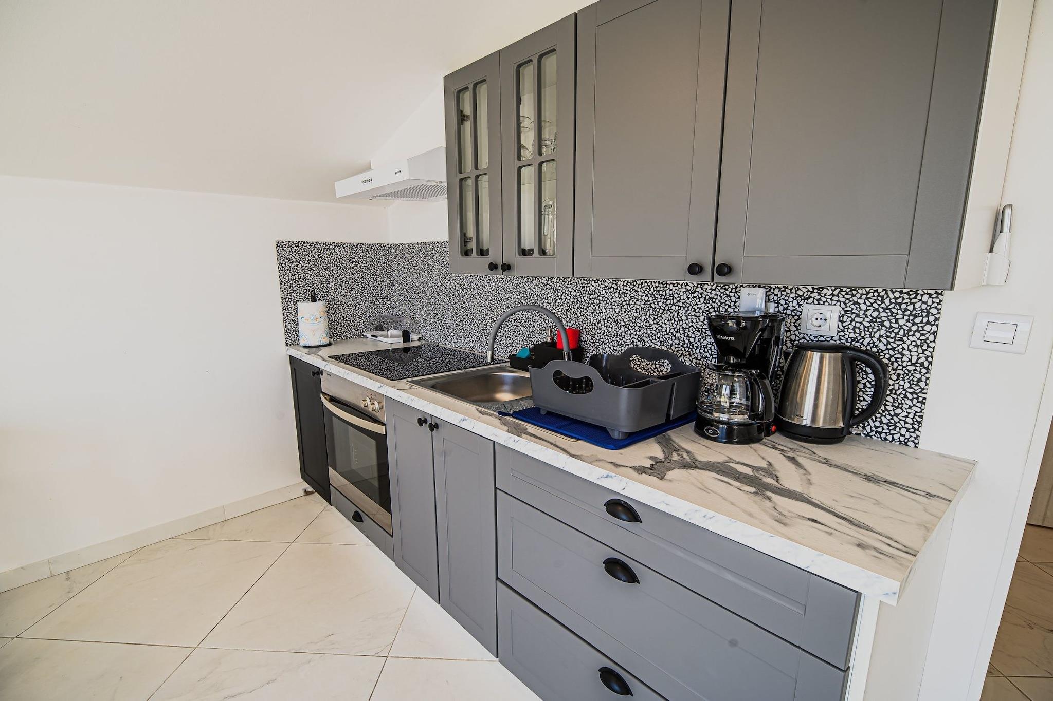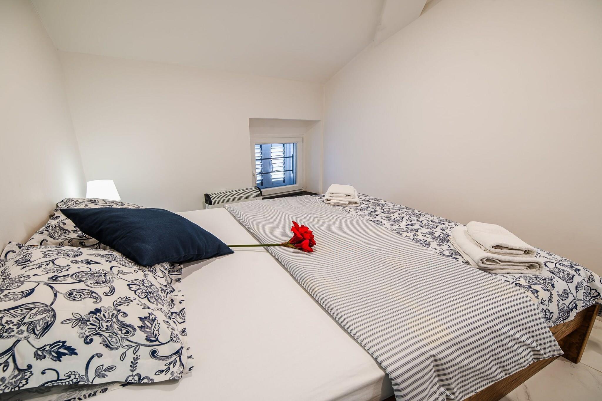 The "Sleek and Stylish Umag Apartments with Sea View" are located in Umag, Istria County, Croatia. These accommodations offer modern designs and amenities, with stunning views of the Adriatic Sea. Most apartments are beachfront or very close to beaches like Gradska Plaža Pozioi and Dante Beach, providing convenient access to seaside activities. These apartments often feature air-conditioned rooms, private kitchens, flat-screen TVs, balconies with sea views, and free parking. They are ideal for families, with spacious layouts and options like terraces or private entrances for added convenience. Guests can explore nearby attractions such as the Aquapark Istralandia, just 16 km away?. Note: Pets are not allowed. Private parking, reservation is not required. Wi-Fi is available throughout the property. This two -bedroom can accommodate up to six guests. It features a TV and is combined with a living room and kitchen. The private bathroom is equipped with a shower and toilet. Thanks to its excellent location, everything you'll need for your vacation is just a short walk away from the property. Grocery stores-400.00 m, cafes-20.00 m, restaurants—10.00 m radius. The beach is 30.00 m away from the property. The airport is 70 km away from the property.