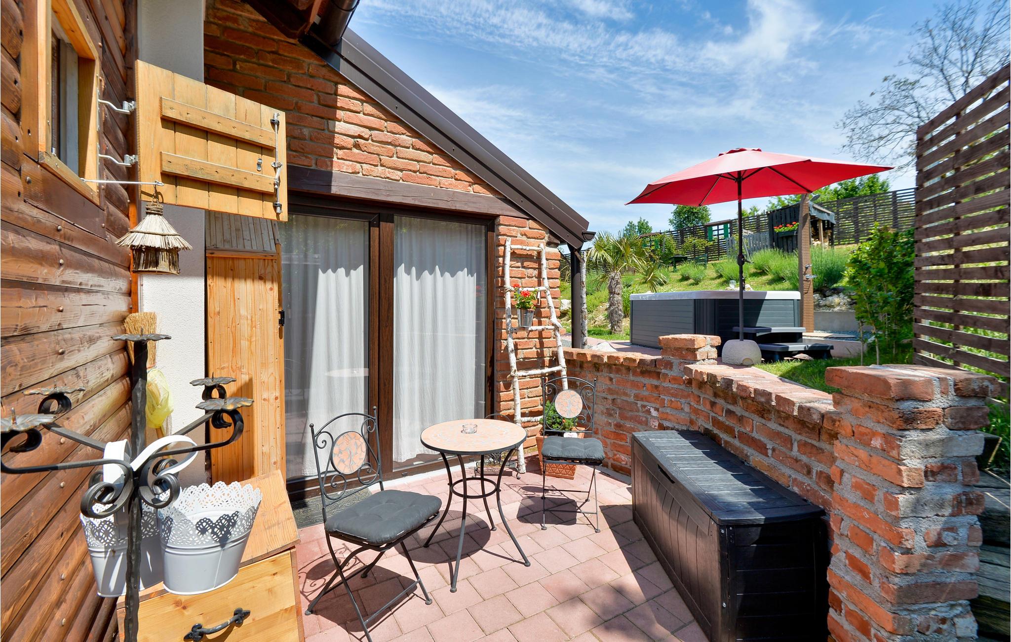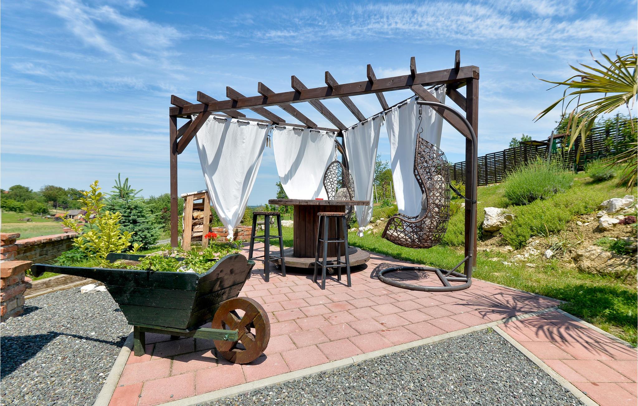 Dette feriehuset ligger på en liten høyde i nærheten av den vakre byen Varadin. Med sin store hage og utsikt over uberørt natur, åkrer, frukthager og vingårder, er det ideelt for 2 personer. Ren luft og ro kjennetegner disse vakre omgivelsene, hvor du kan slappe av mens du tilbereder delikatesser på grillen, slappe av i hagen på hagemøblene, i boblebadet eller på terrassen foran huset. I kjelleren av huset er det et kjøkken med spiseplass, mens det i første etasje er en stue, et soverom, et bad og en vinterhage. Vinterhagen er også møblert med en sofa og er et ekstra rom hvor du kan drikke morgenkaffen eller lese ferielesningen din.