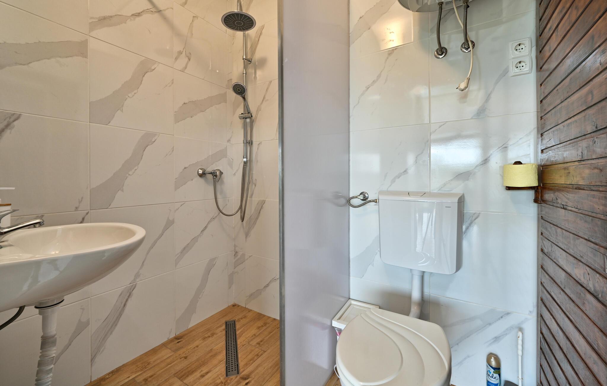 - WC med varmt og kaldt vann, Dusj