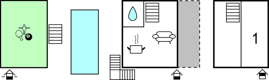 Her kan du slappe av ved bassenget og nyte de varme sommerdagene. Stuen og terrassen med utsikt over det kuperte landskapet, kjøkkenet med spiseplass og badet ligger i husets første etasje. I øverste etasje er det to soverom, hvorav det ene er et sammenhengende rom.