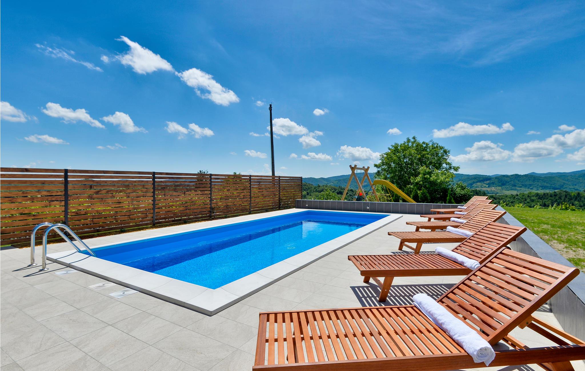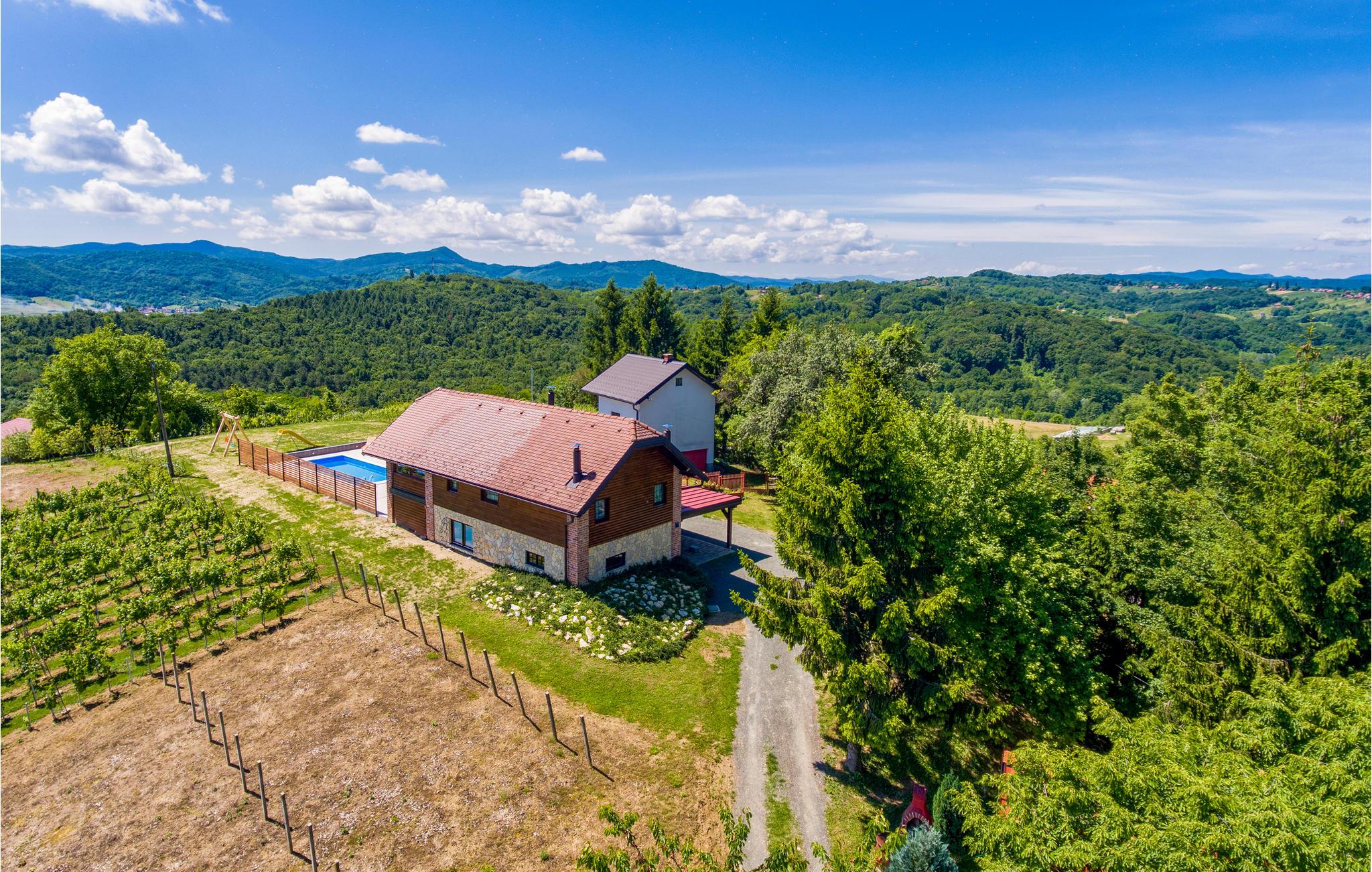 Dette feriehuset ligger på en høyde ikke langt fra Varadin, og er omgitt av en vakker hage med svømmebasseng og utsikt over de omkringliggende fjellene og bakkene med frukthager og vinmarker. Det er funksjonelt innredet og utstyrt. Foran huset er det en vakker terrasse med sommerkjøkken, peis og grill for tilberedning av gourmetspesialiteter. Fred, ren luft og en avslappende ferie er det du kan regne med under oppholdet ditt. Vi anbefaler et besøk til byen Varadin og en tur til byens severdigheter og kulturelle begivenheter, som den entomologiske samlingen The World of Insects og Museum of Angels. I gamlebyens barokke sentrum finner du bevarte palasser, viktige offentlige bygninger, verdifulle hus og villaer i barokk-, rokokko-, klassisisme- og jugendstil samt et av Europas eldste rådhus. Varadin er også kjent som byen med klokketårnene. Husk å besøke kirkegården, som er et eksempel på parkarkitektur og et monument over naturen, samt de mange vakkert anlagte parkene og promenadene, der Johannes Paul II-parken og Strossmayer-promenaden skiller seg ut. Blant de interessante severdighetene er vaktskiftet foran rådhuset, hvis medlemmer kalles Purgari, deretter byens marked, torget for tradisjonelt håndverk og gårdsplassene i Varadin, spesielt i det historiske sentrum. Gjenkjennelige symboler på byen er våpenskjoldet på rådhuset, tårnet i gamlebyen, palassene Drakovi, Patai og Mrazovi, kirken St. For gjester som ønsker å slappe av, anbefaler vi en dag i Varadinske Toplice, som tilbyr termalvann og velværetjenester.