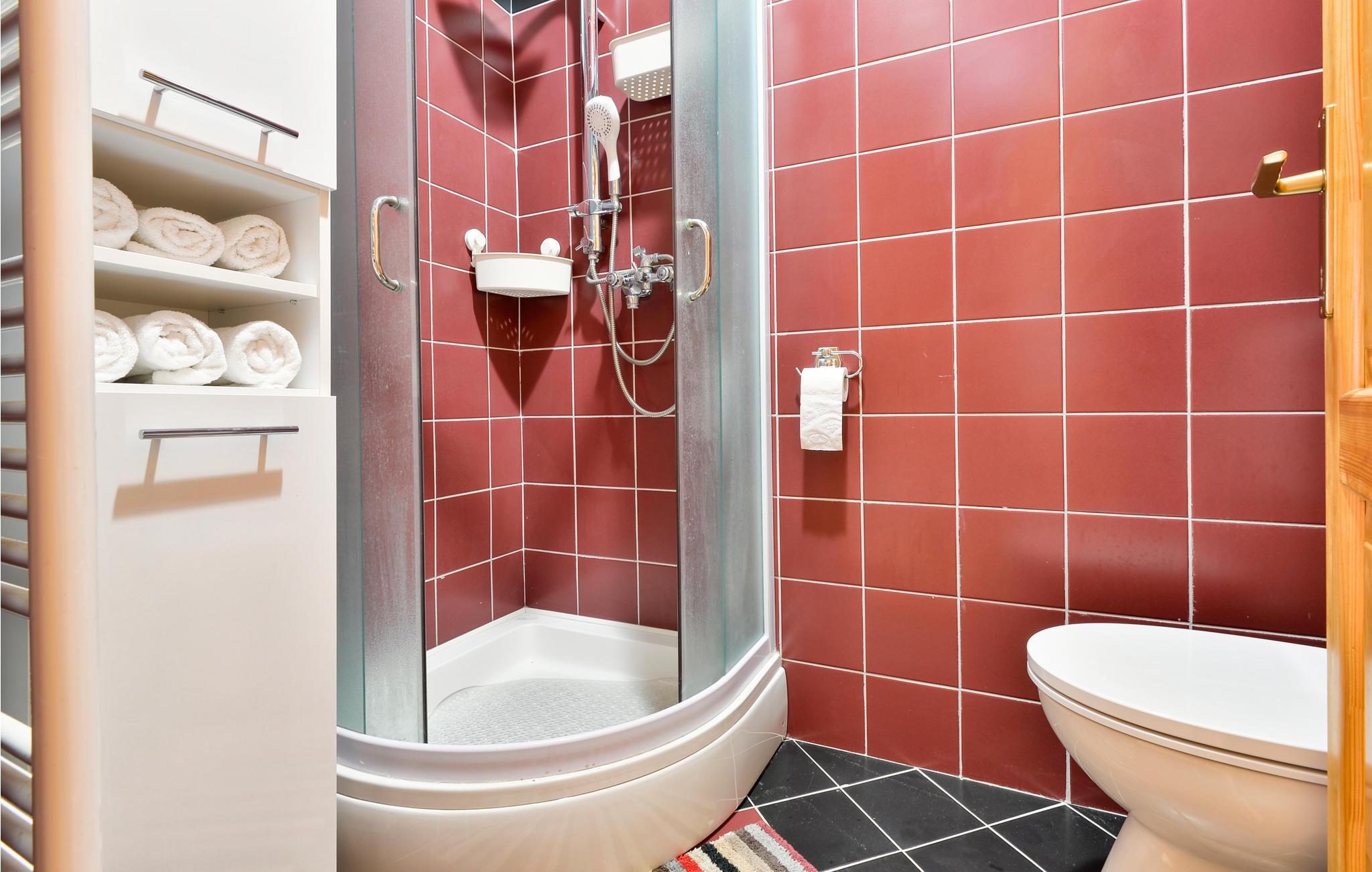 - WC med varmt og kaldt vann, Dusj
