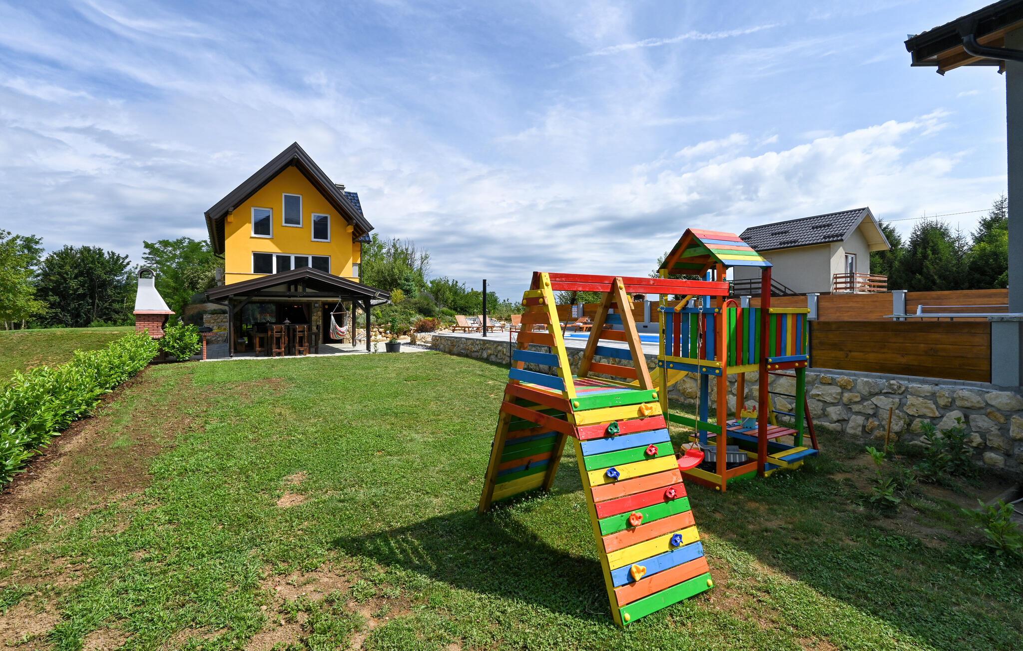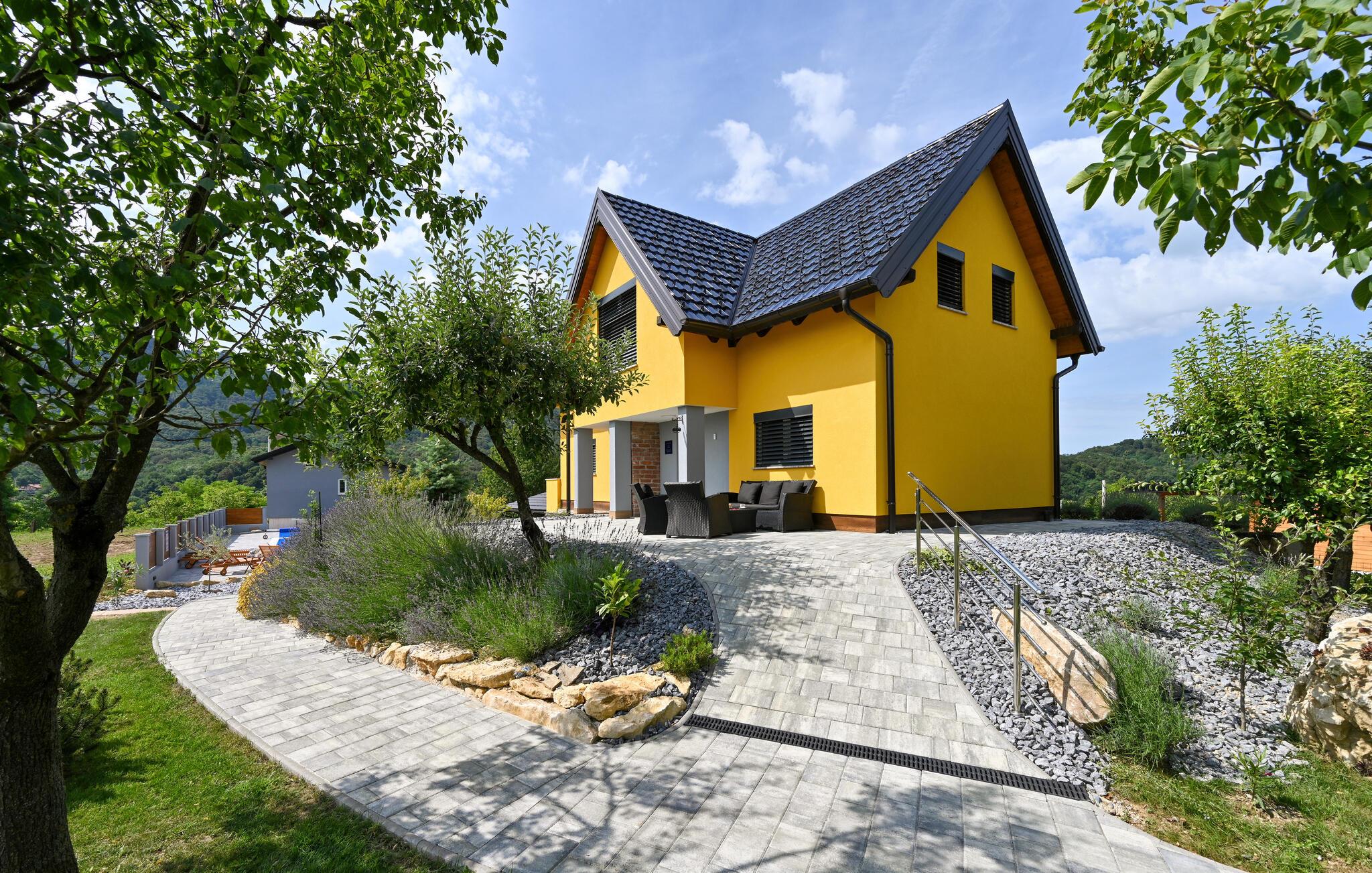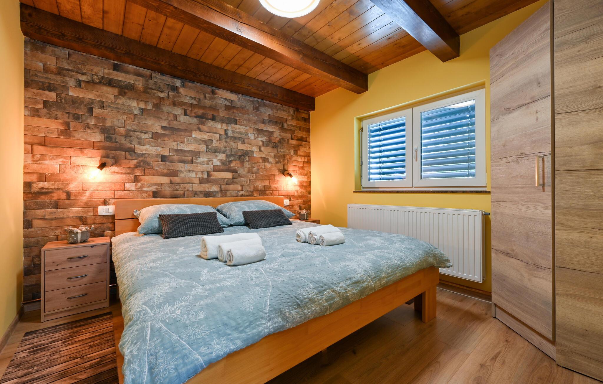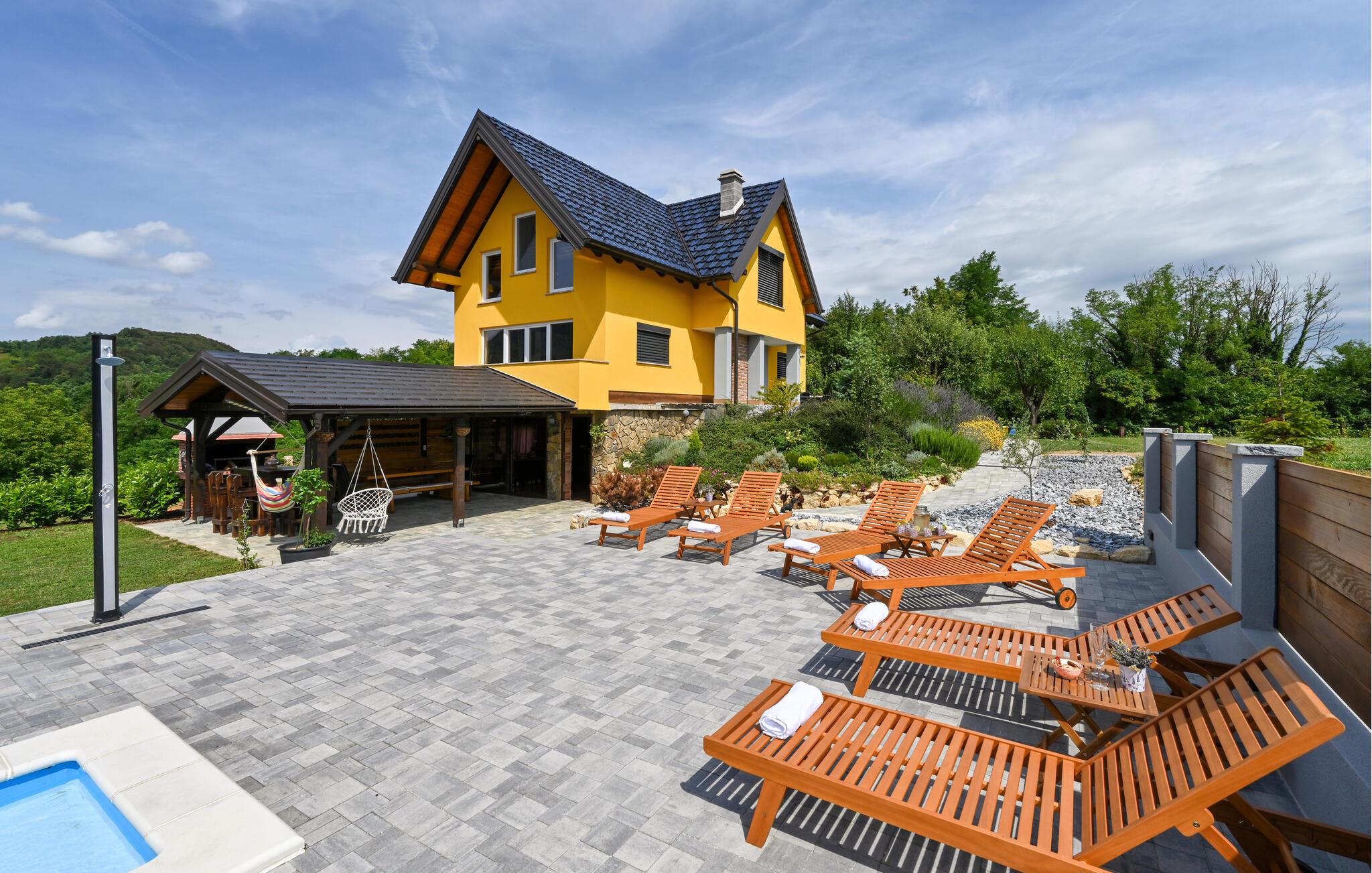 Feriehuset har plass til en stor familie. Det idylliske huset ligger i et fredelig og rolig område, og er det ideelle stedet for å flykte fra hverdagens stress og nyte naturen. Start dagen med en forfriskende dukkert i det oppvarmede bassenget, og planlegg deretter utflukter i nærområdet. Besøk det imponerende Trakoan-slottet, som imponerer med sin pittoreske beliggenhet og historiske sjarm. Det nærliggende museet for den berømte Lepoglavska-kniplingen gir deg et fascinerende innblikk i det tradisjonelle håndverket i regionen.