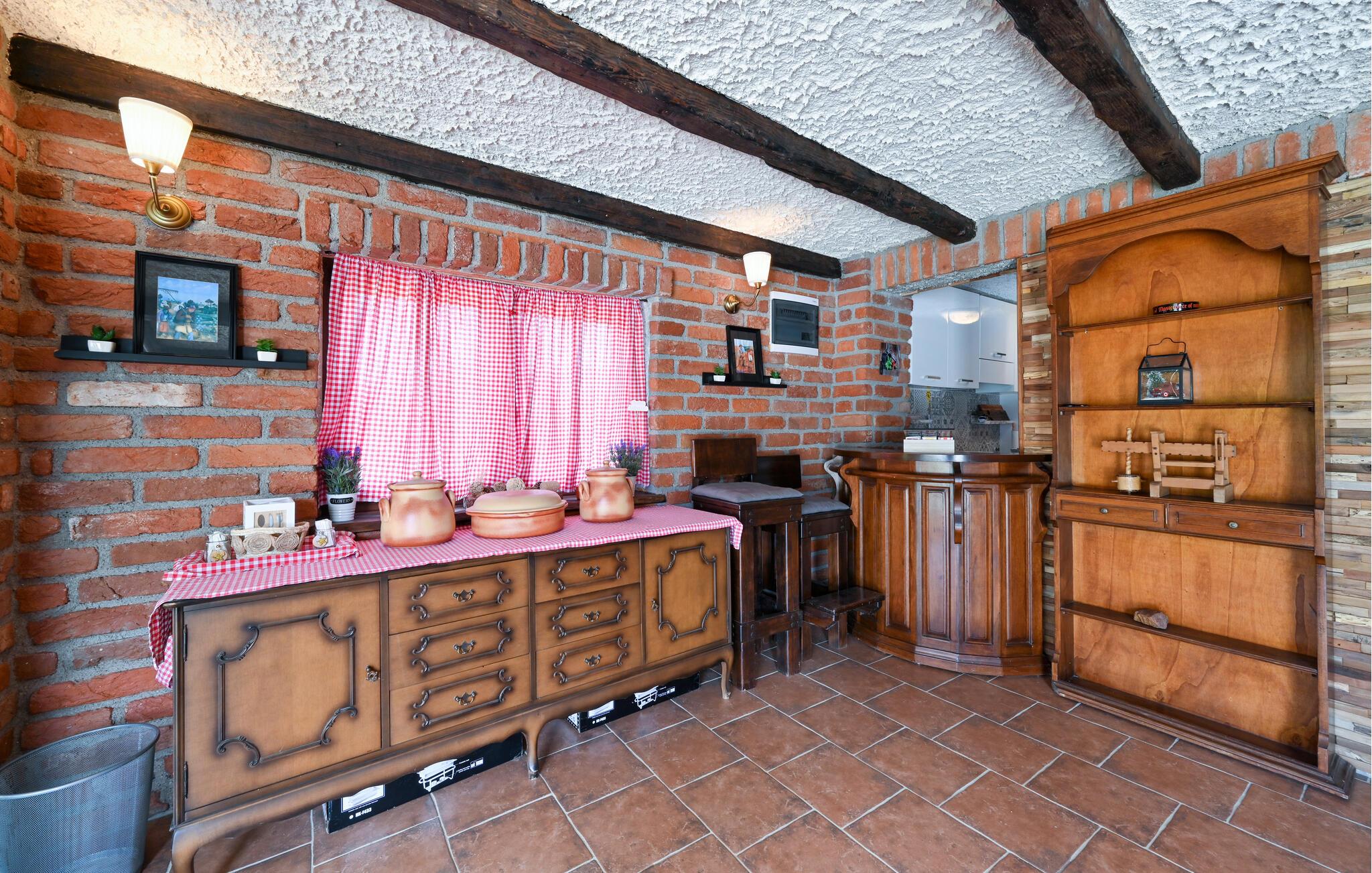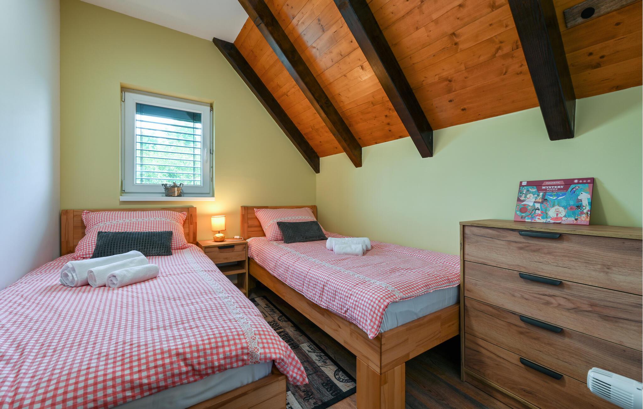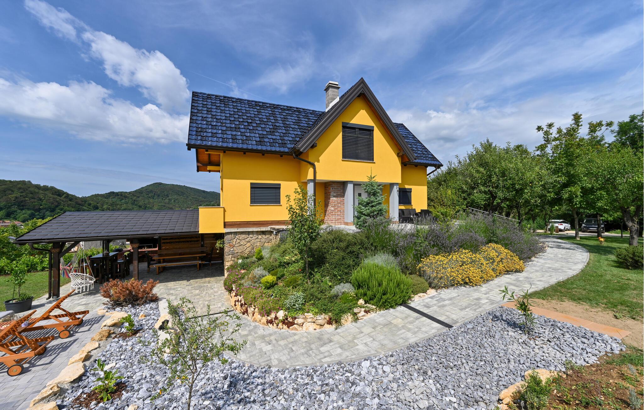Feriehuset har plass til en stor familie. Det idylliske huset ligger i et fredelig og rolig område, og er det ideelle stedet for å flykte fra hverdagens stress og nyte naturen. Start dagen med en forfriskende dukkert i det oppvarmede bassenget, og planlegg deretter utflukter i nærområdet. Besøk det imponerende Trakoan-slottet, som imponerer med sin pittoreske beliggenhet og historiske sjarm. Det nærliggende museet for den berømte Lepoglavska-kniplingen gir deg et fascinerende innblikk i det tradisjonelle håndverket i regionen.