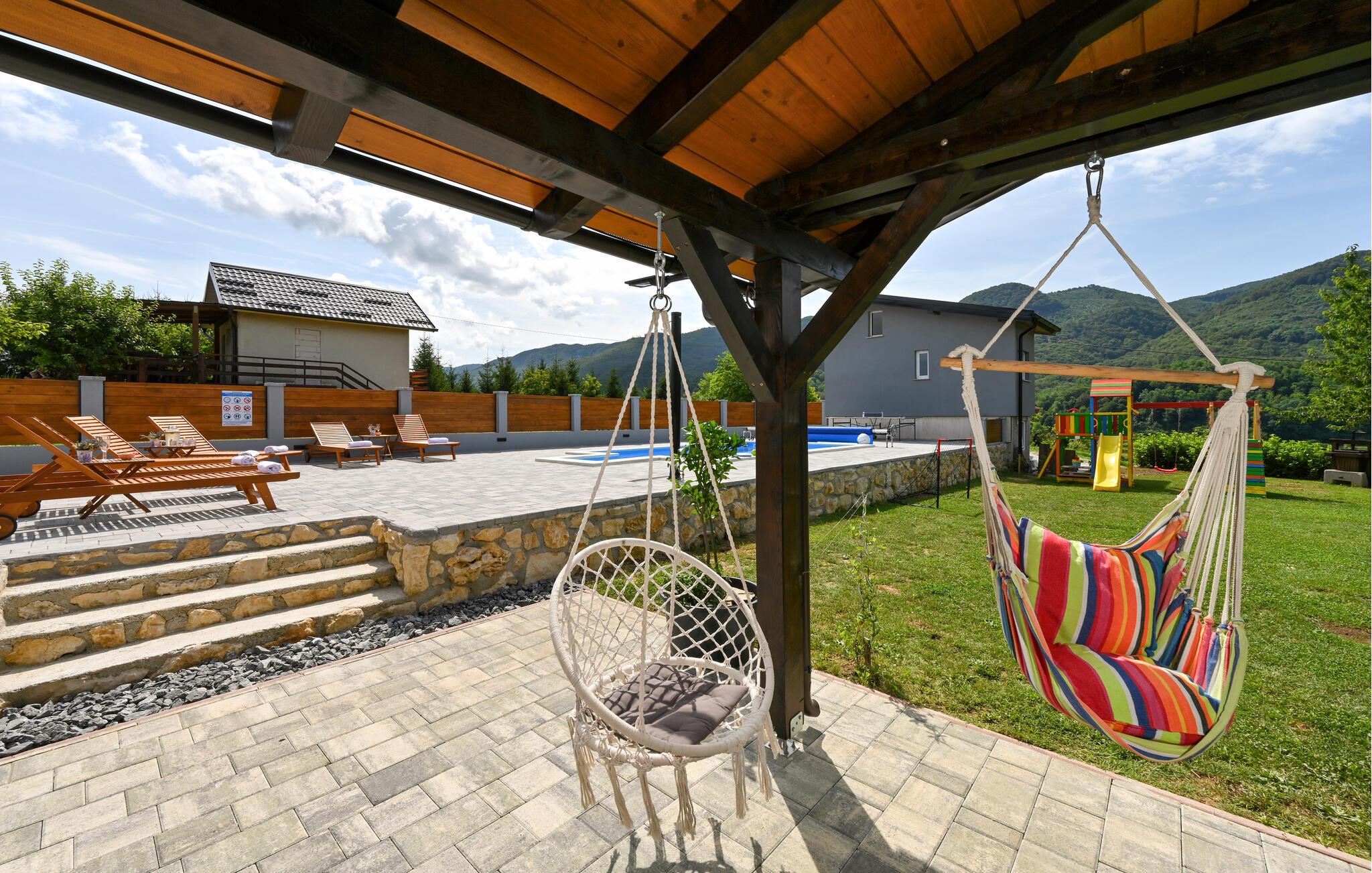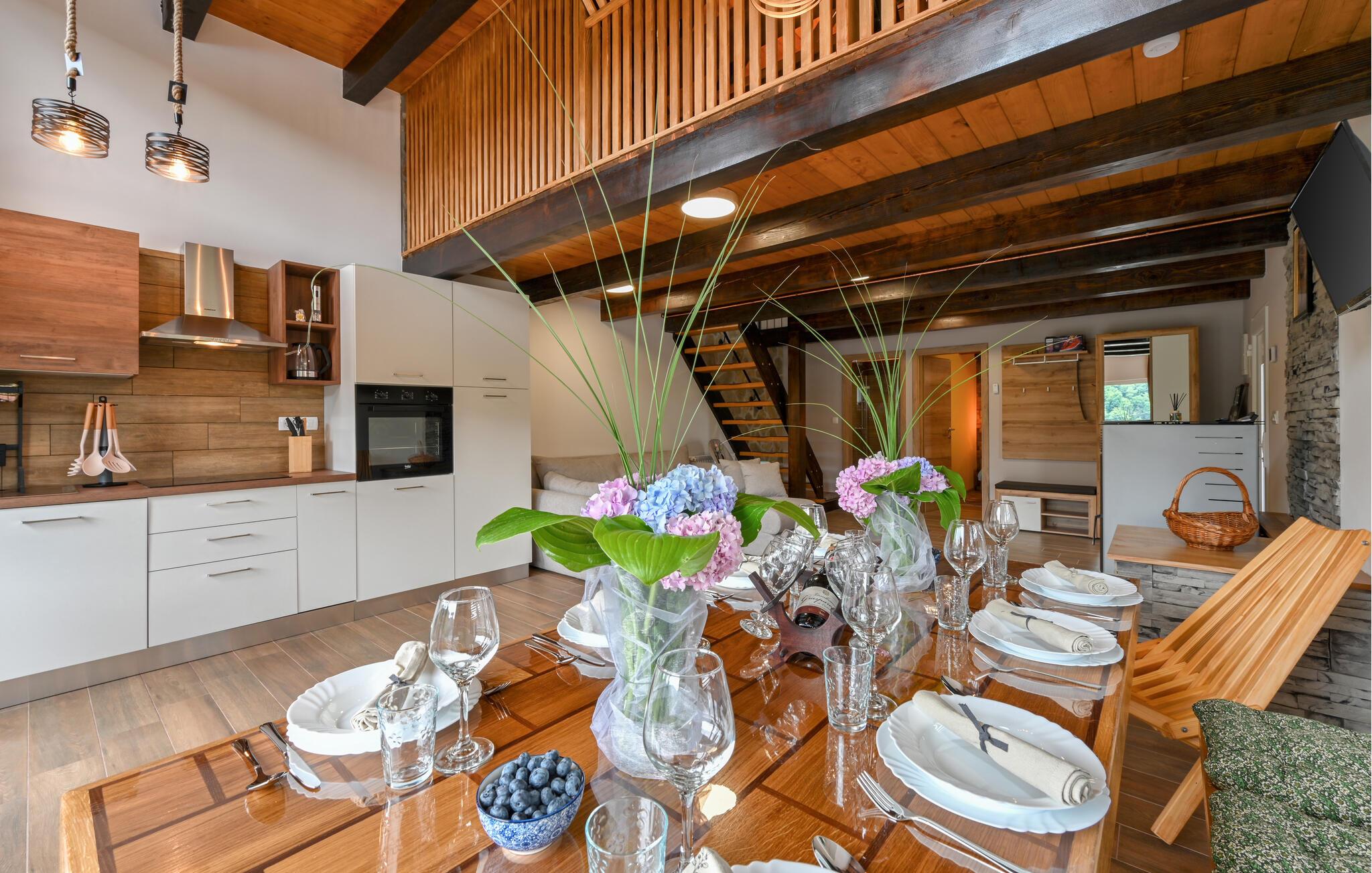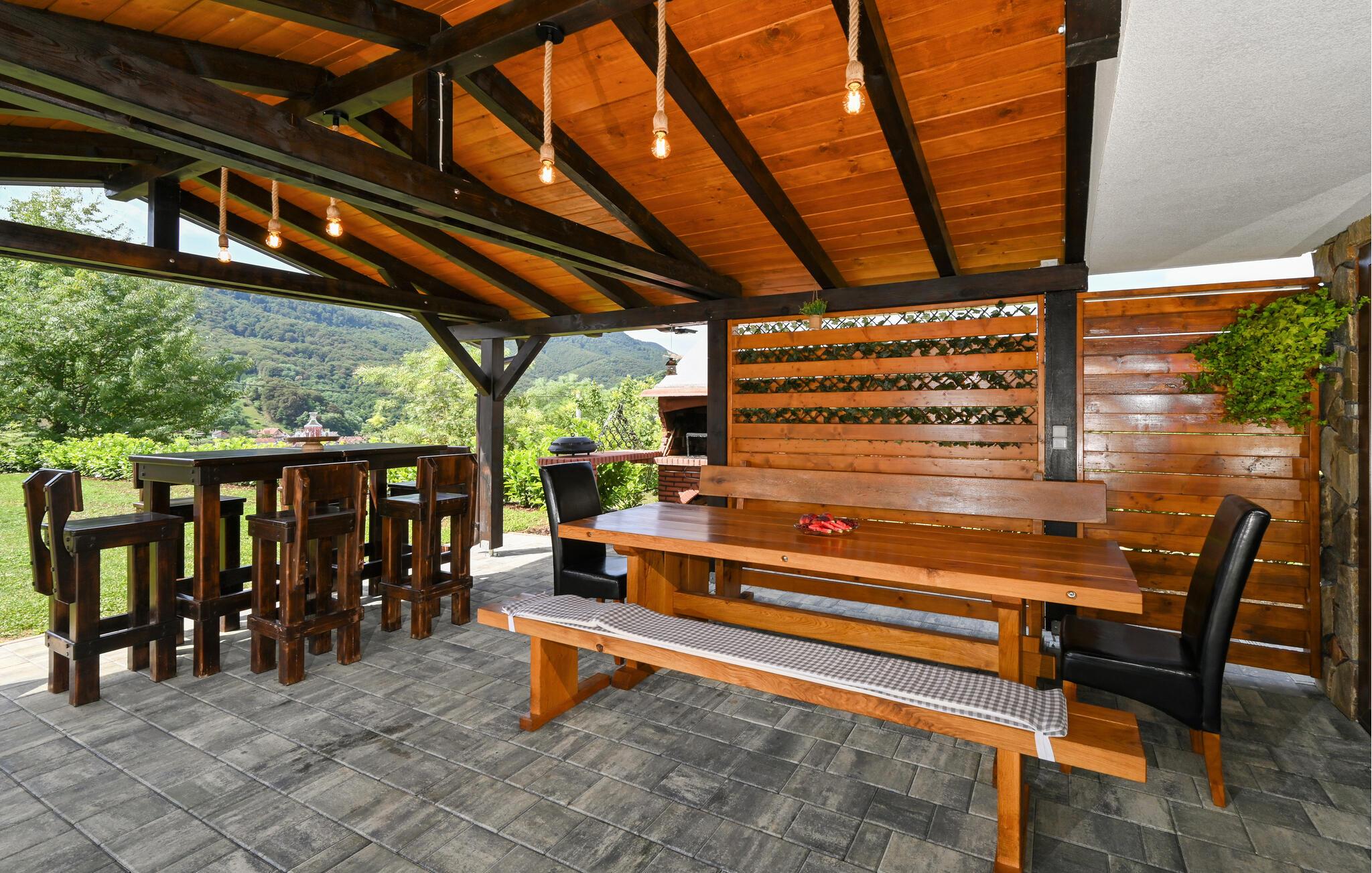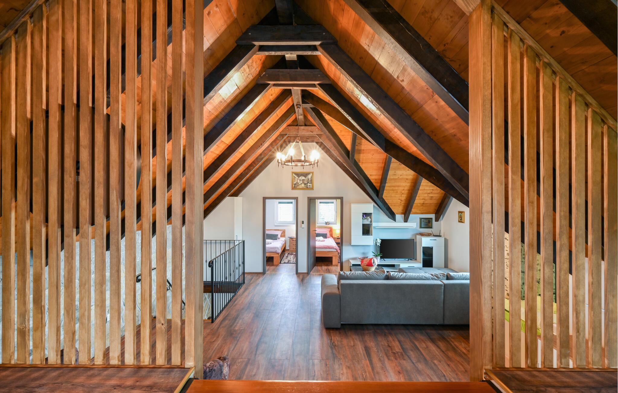 Feriehuset har plass til en stor familie. Det idylliske huset ligger i et fredelig og rolig område, og er det ideelle stedet for å flykte fra hverdagens stress og nyte naturen. Start dagen med en forfriskende dukkert i det oppvarmede bassenget, og planlegg deretter utflukter i nærområdet. Besøk det imponerende Trakoan-slottet, som imponerer med sin pittoreske beliggenhet og historiske sjarm. Det nærliggende museet for den berømte Lepoglavska-kniplingen gir deg et fascinerende innblikk i det tradisjonelle håndverket i regionen.