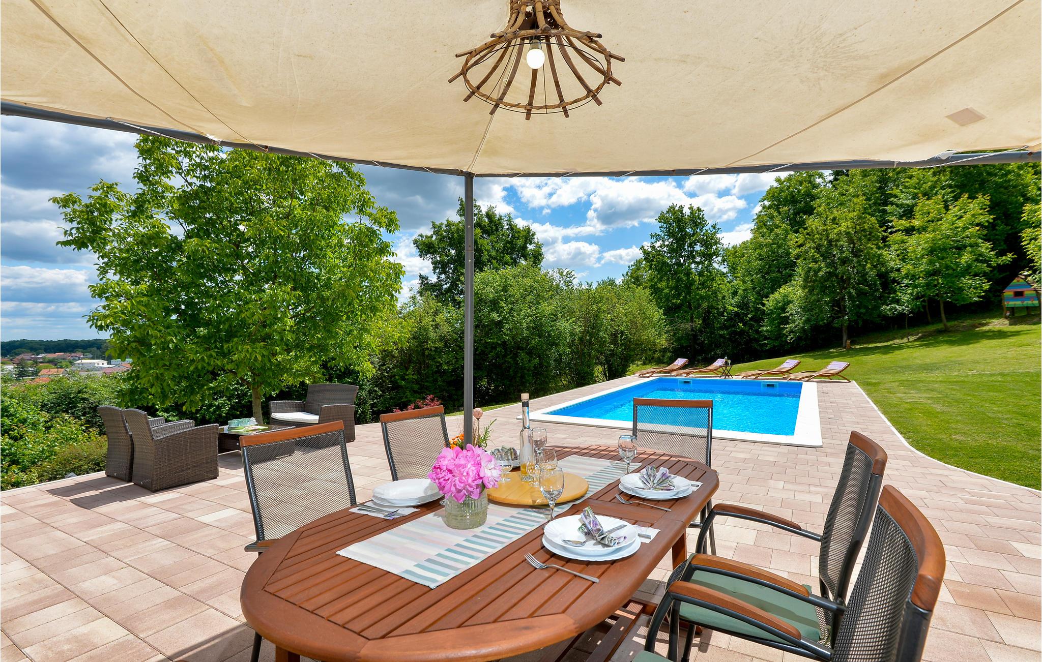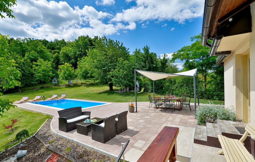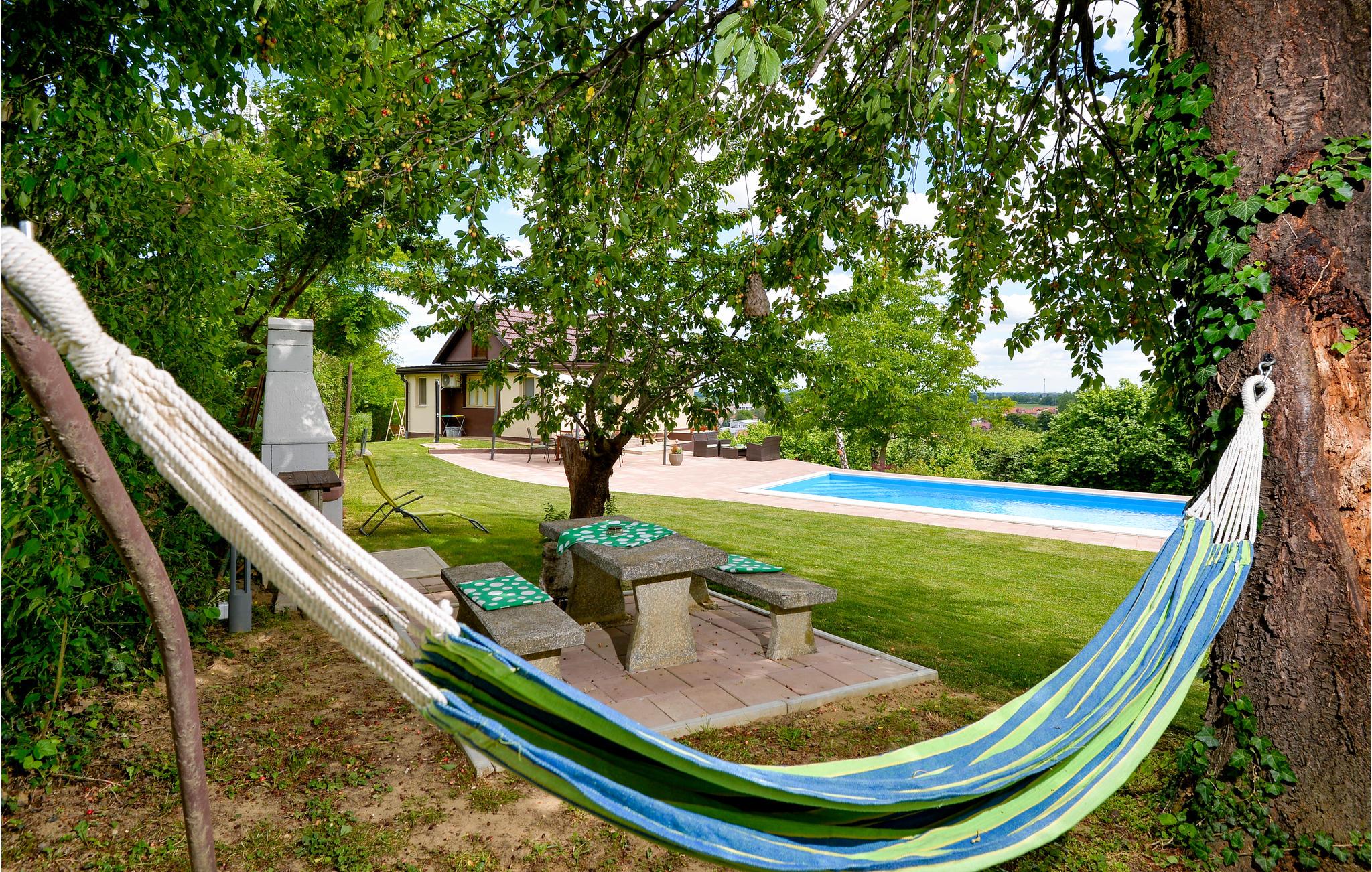 Dette kjærlig og enkelt innredede feriehuset ligger på en høyde med utsikt over det grønne landskapet og byen Ludbreg. Du er omgitt av enger, skog og ren natur. Ved siden av feriehuset ditt er et vakkert utendørsbasseng og terrasse hvor du kan nyte fullstendig hvile. I første etasje har du to soverom og et bad, ovenpå har du et annet soverom, et bad, et spisekjøkken og en stue med utgang til vinterhagen og utsikt over omgivelsene. På tjue minutter med bil kan du nå det termiske spaet Varazdinske Toplice.