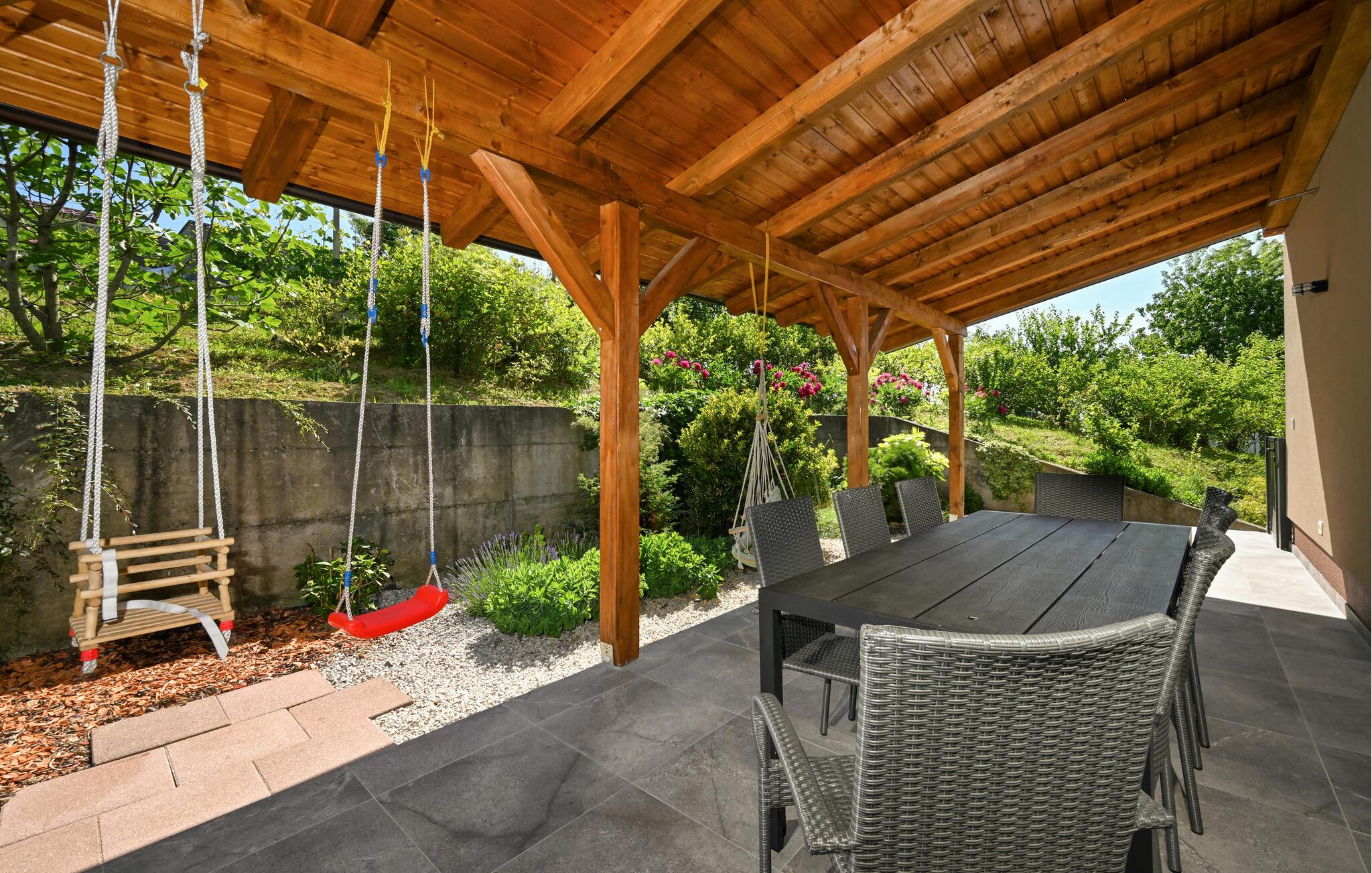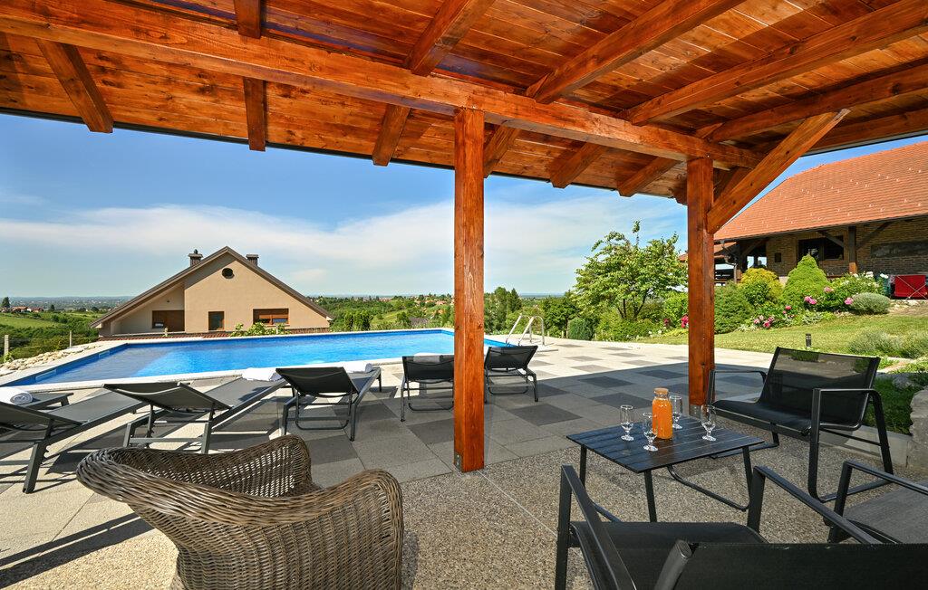 Feriehusets opphøyde beliggenhet gir deg en fantastisk panoramautsikt over landskapet. La barna løpe rundt i den velstelte hagen, unn deg en forfriskende dukkert i bassenget, og organiser stemningsfulle grillkvelder på varme sommerkvelder mens du smaker på råvarene fra de omkringliggende vinmarkene.