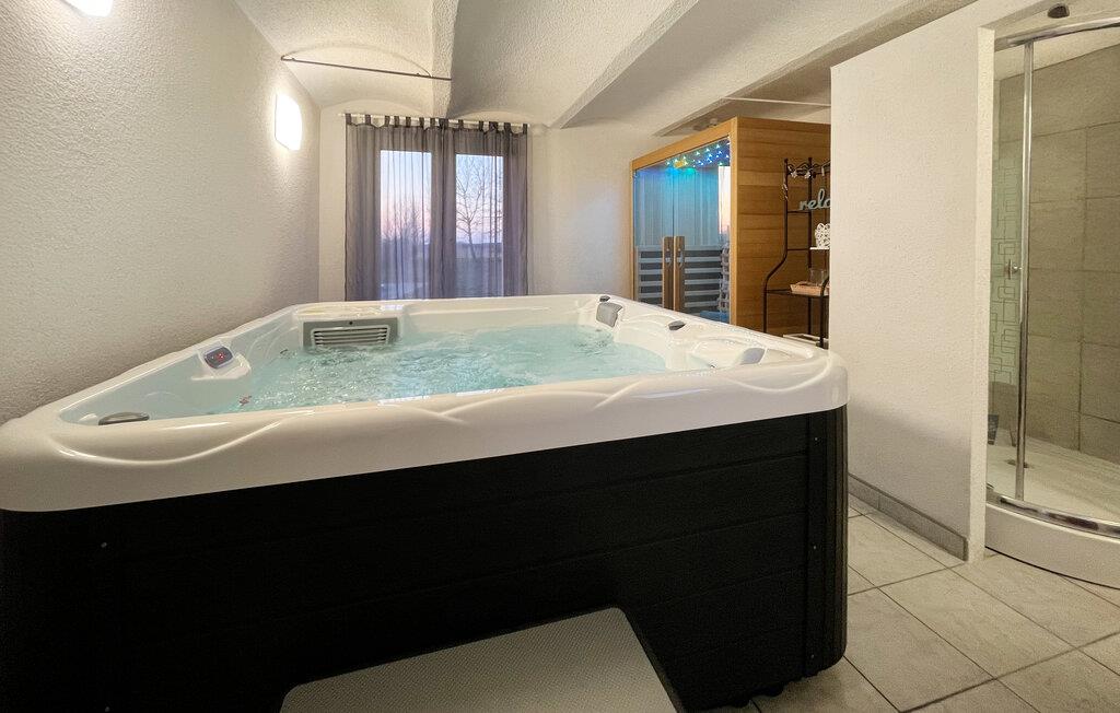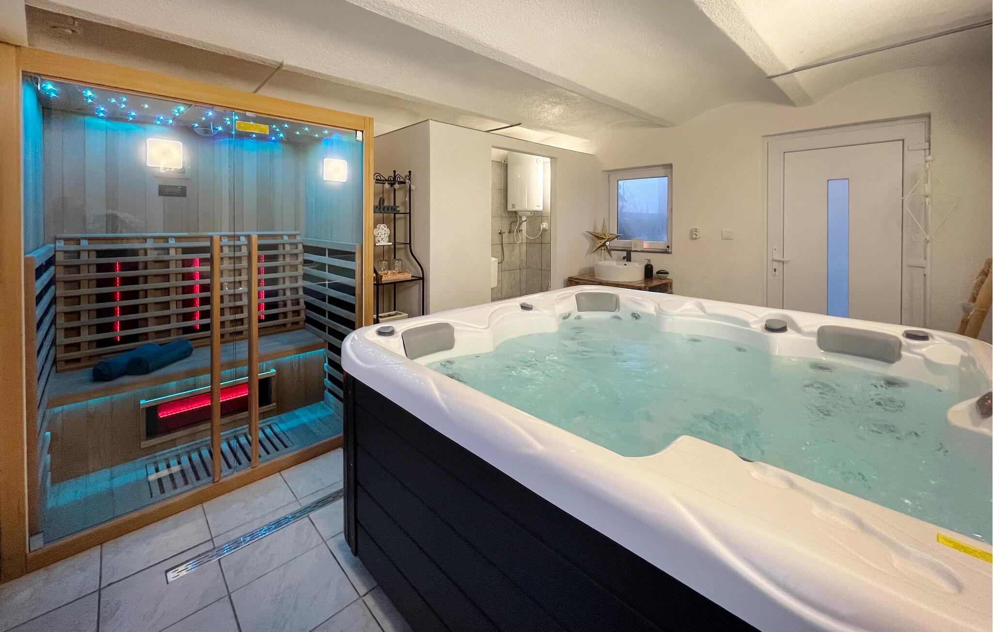 Utenfor inviterer utendørsbassenget til avkjøling og en dukkert. På kjøligere dager kan du varme deg i badstuen eller boblebadet i huset og koble av fra hverdagen. Takket være de to terrassene og balkongen kan du alltid finne et hyggelig sted ute for å lese eller slappe av. Den store hagen byr på god plass til å leke.