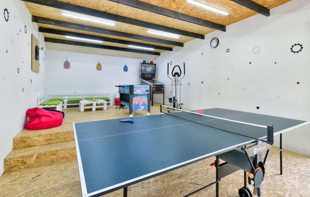 Et høydepunkt i huset er aktivitetsrommet, som ligger i annekset og er utstyrt med en rekke aktiviteter. Etter en spennende feriedag kan du avslutte dagen her med biljard, bordtennis og mye mer.