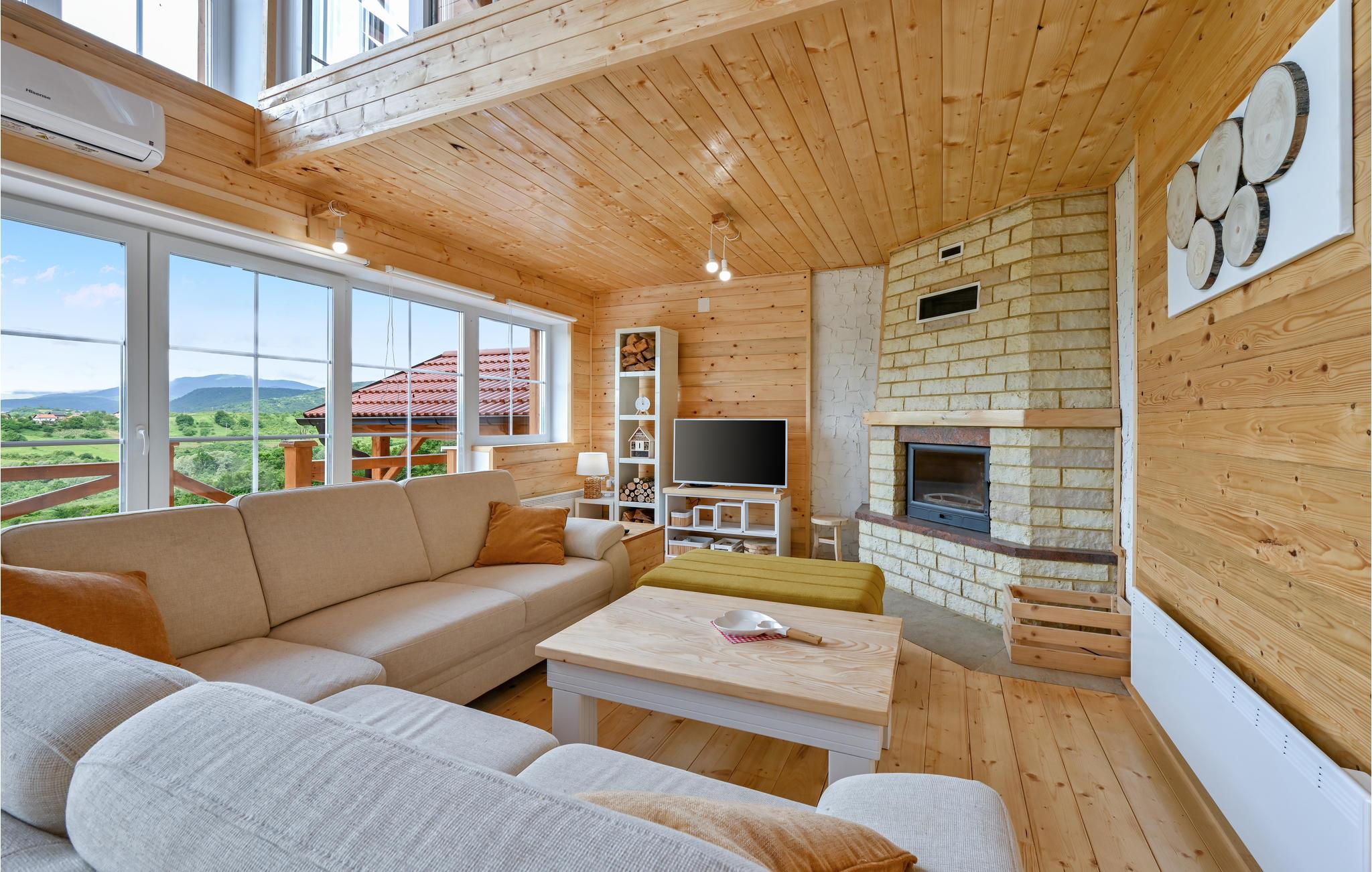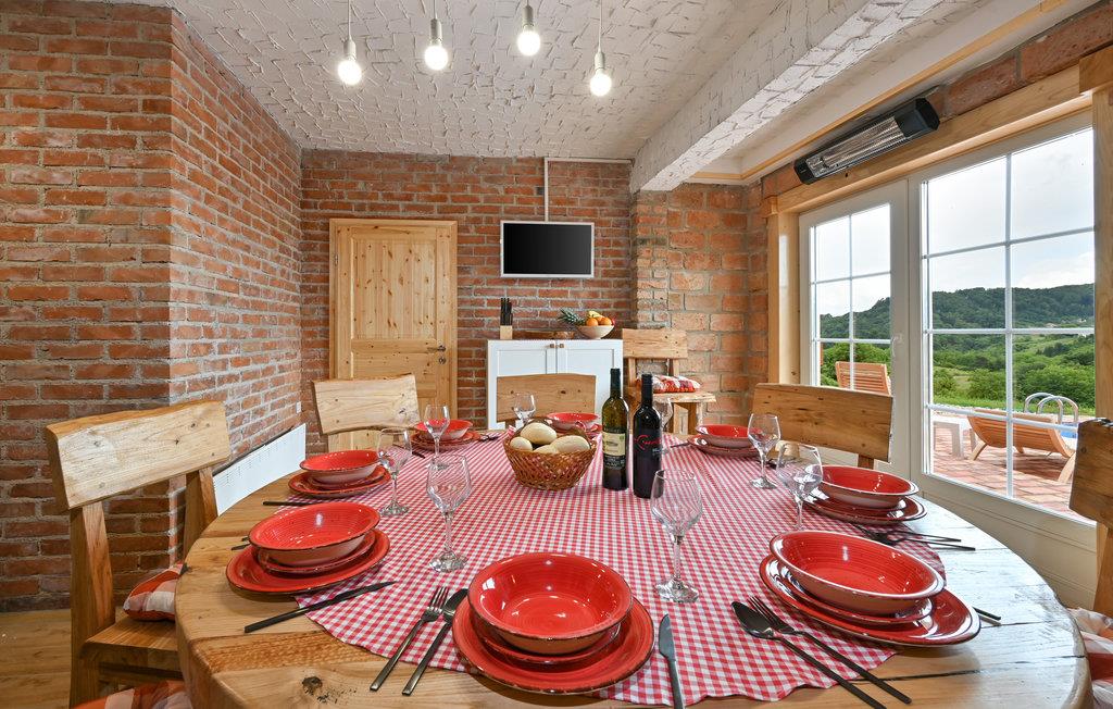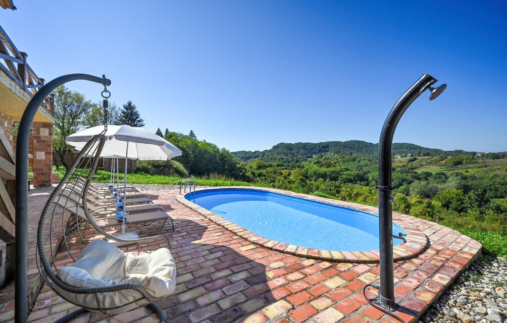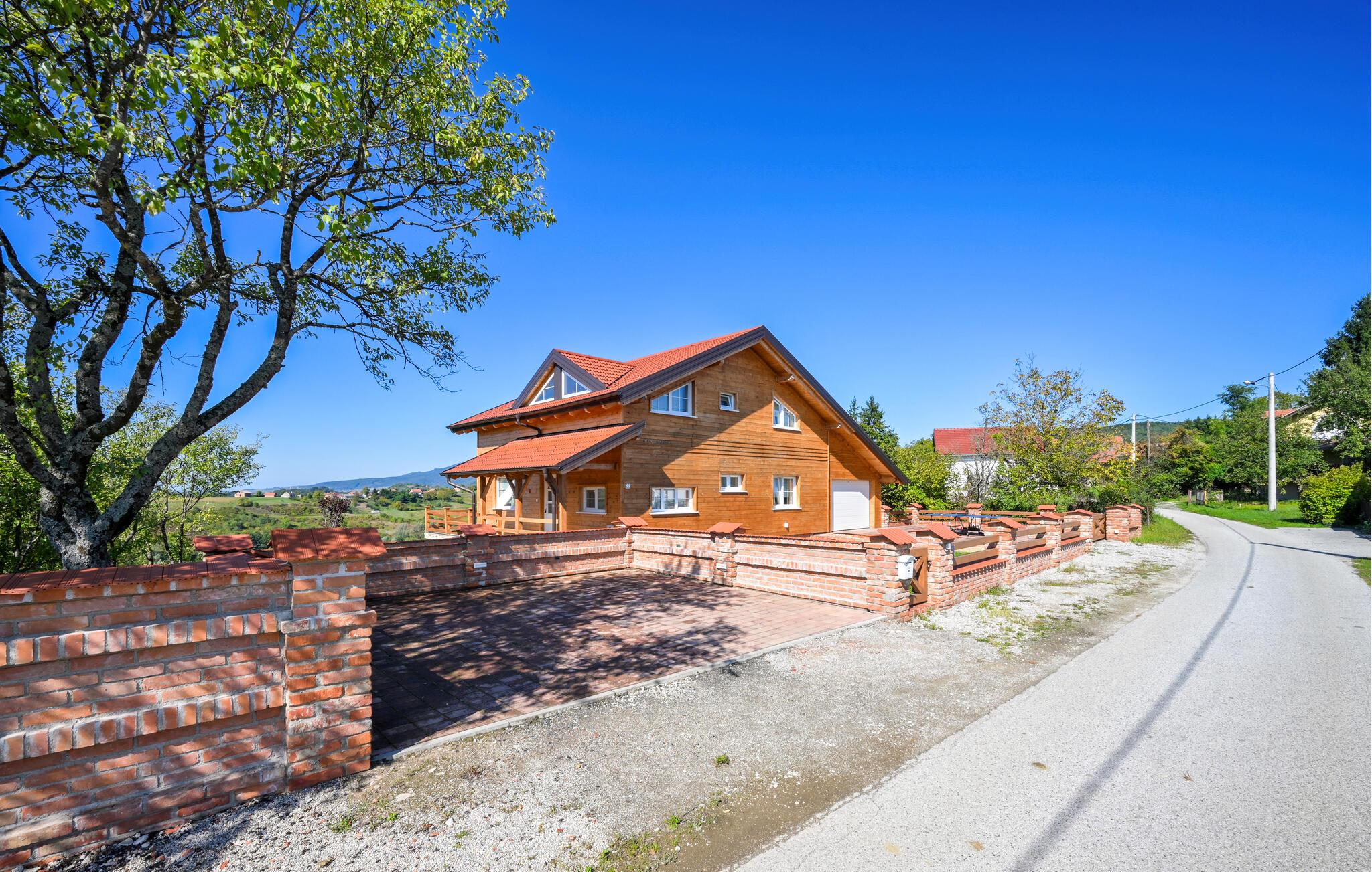 Dette fantastiske feriehuset ligger i nærheten av Novi Marof, på en høyde med vakker panoramautsikt over det omkringliggende idylliske landskapet. Det romslige huset er fordelt på tre etasjer, og de store panoramavinduene slipper ikke bare inn rikelig med sollys, men gir deg også en fantastisk utsikt. Mens du kan samles til lek, moro og god mat i de to øverste etasjene, kan du følge velværeprogrammet ditt i underetasjen. Her kan du kose deg i badstuen eller boblebadet, eller gå ut på terrassen og hoppe i svømmebassenget i hagen. Flere terrasser innbyr til opphold i hagen, og den murte grillen med sittegruppe er ideell for sosiale kvelder.
