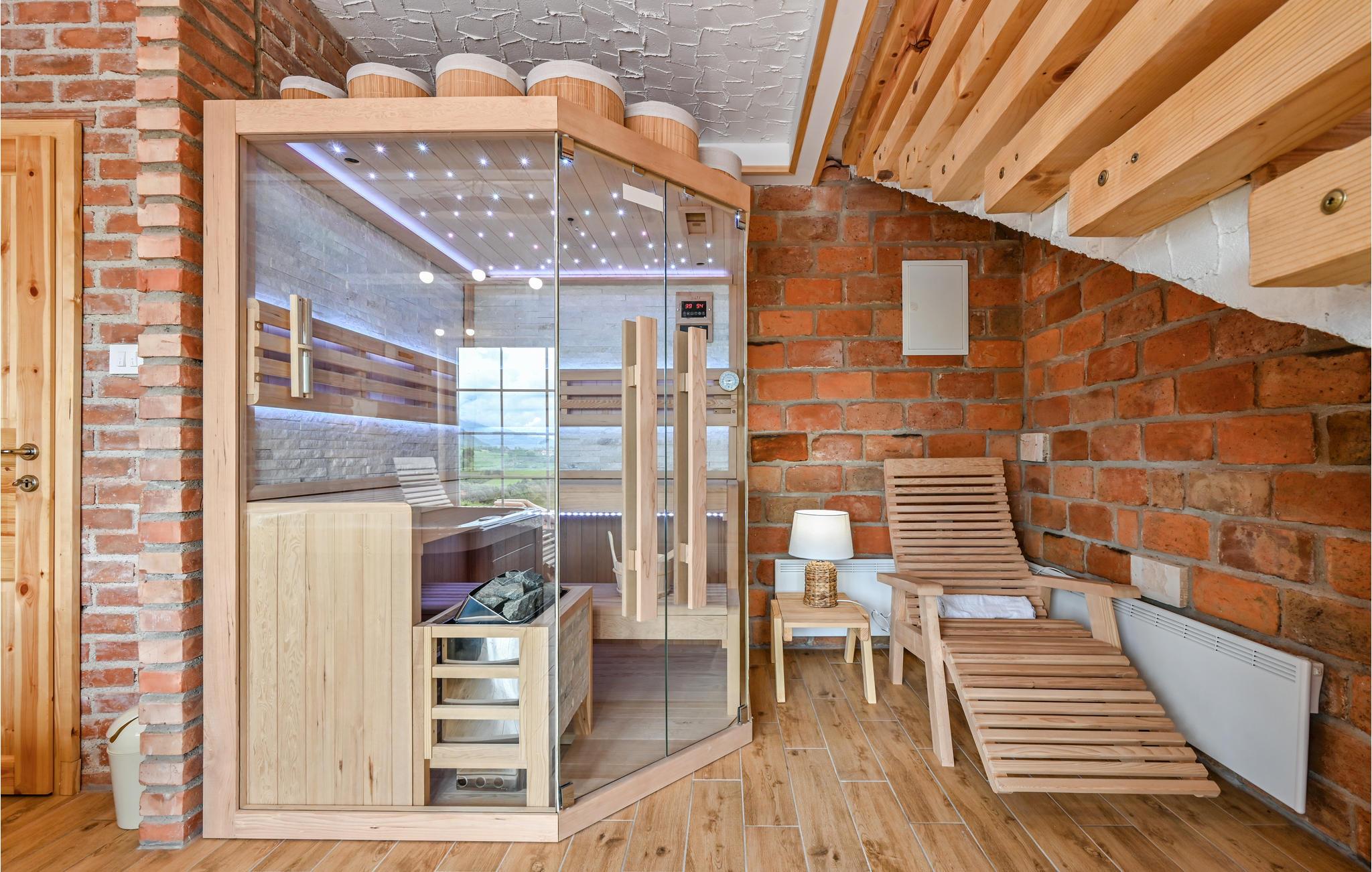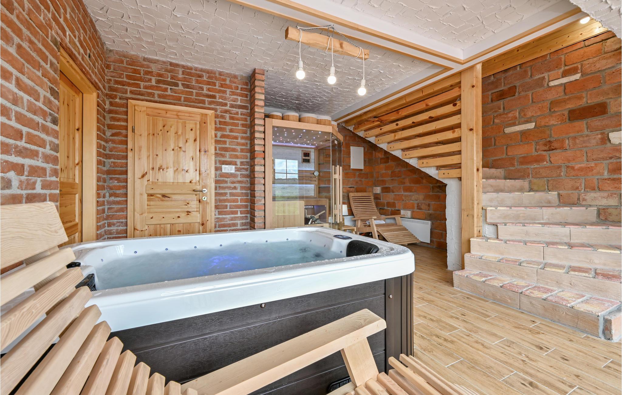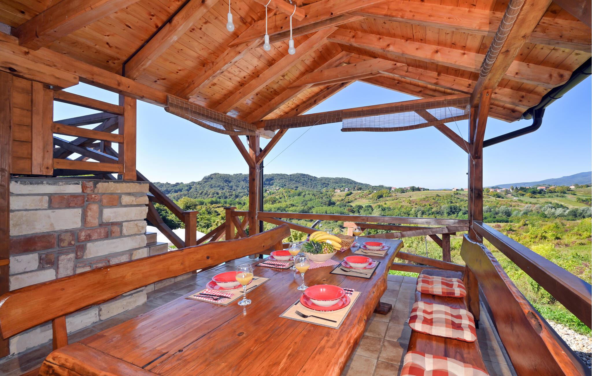Dette fantastiske feriehuset ligger i nærheten av Novi Marof, på en høyde med vakker panoramautsikt over det omkringliggende idylliske landskapet. Det romslige huset er fordelt på tre etasjer, og de store panoramavinduene slipper ikke bare inn rikelig med sollys, men gir deg også en fantastisk utsikt. Mens du kan samles til lek, moro og god mat i de to øverste etasjene, kan du følge velværeprogrammet ditt i underetasjen. Her kan du kose deg i badstuen eller boblebadet, eller gå ut på terrassen og hoppe i svømmebassenget i hagen. Flere terrasser innbyr til opphold i hagen, og den murte grillen med sittegruppe er ideell for sosiale kvelder.