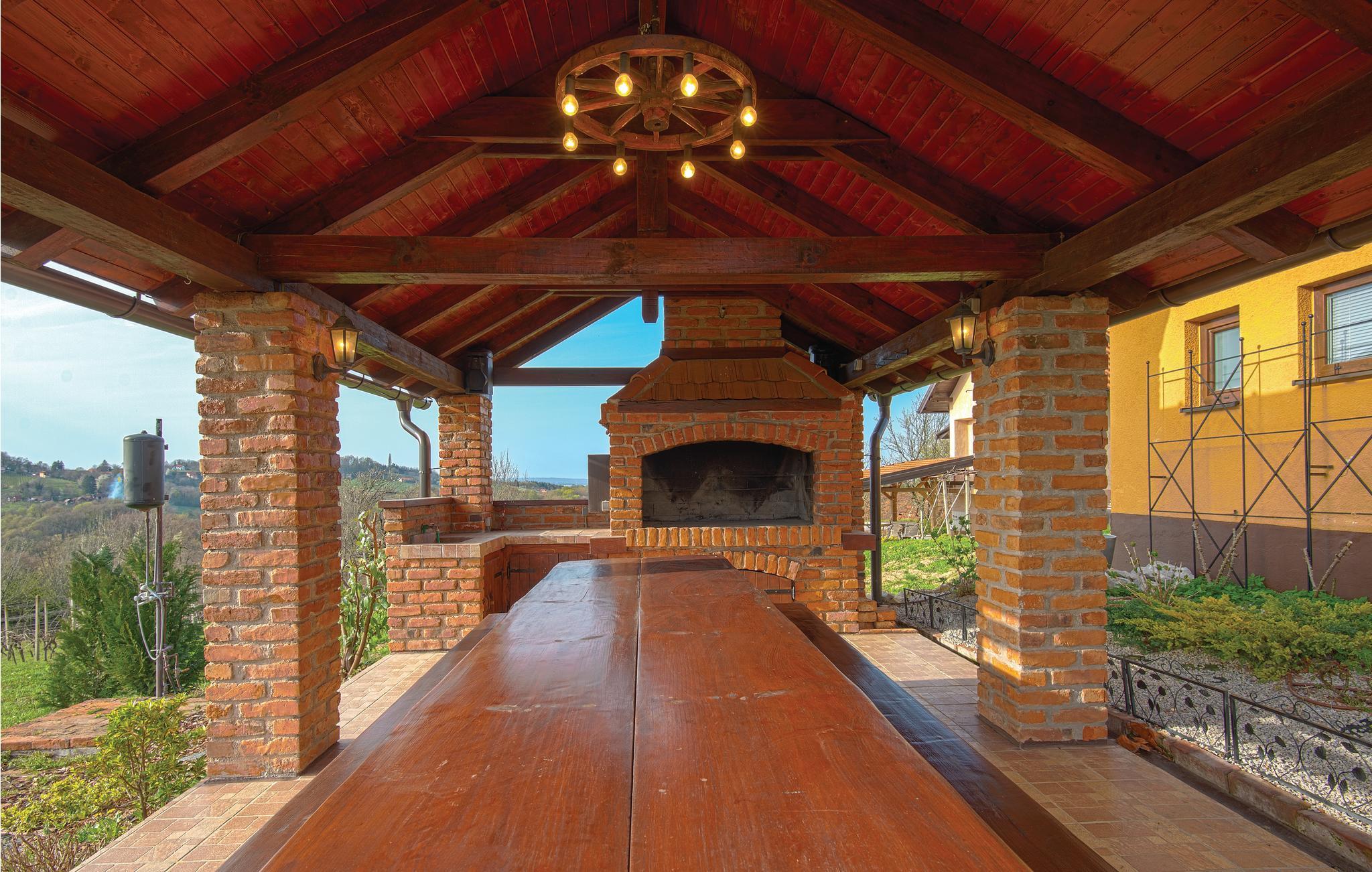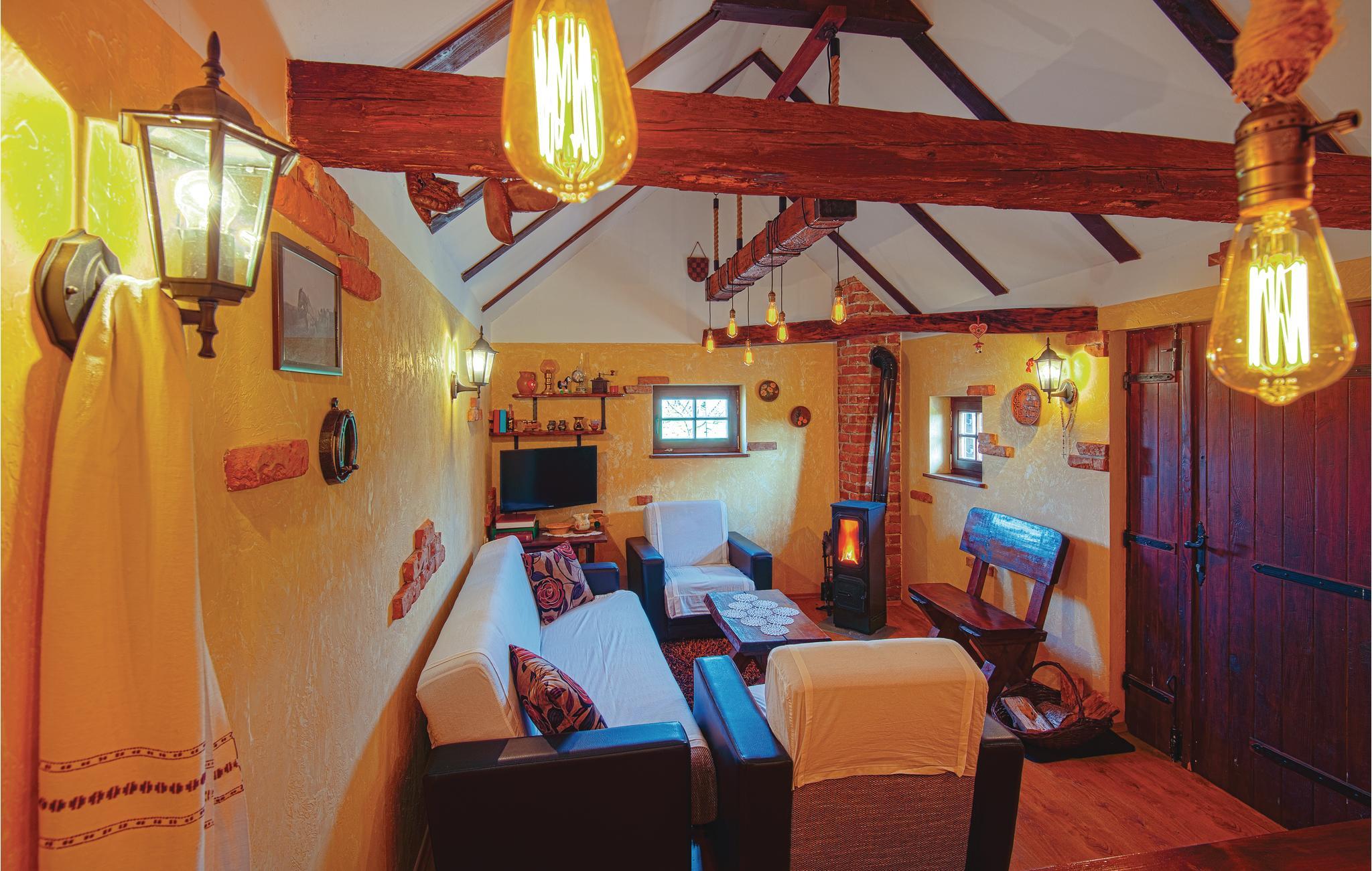 Dette vakre feriehuset på en høyde, omgitt av enger og vingårder i Zagorje, vil gi deg en hyggelig ferie. Huset er innredet i autentisk stil. Stuen ligger i den opprinnelige trehytta. Det er to soverom, det ene er et gjennomgangsrom med egen inngang utenfra, det andre, med et skråtak på 100 cm, nås via en bratt trapp. Du kan tilberede grillmåltider på terrassen og finne forfriskninger i bassenget. Det er mange sykkel- og turstier i nabolaget. Besøk byen Varadin med sine mange severdigheter.
