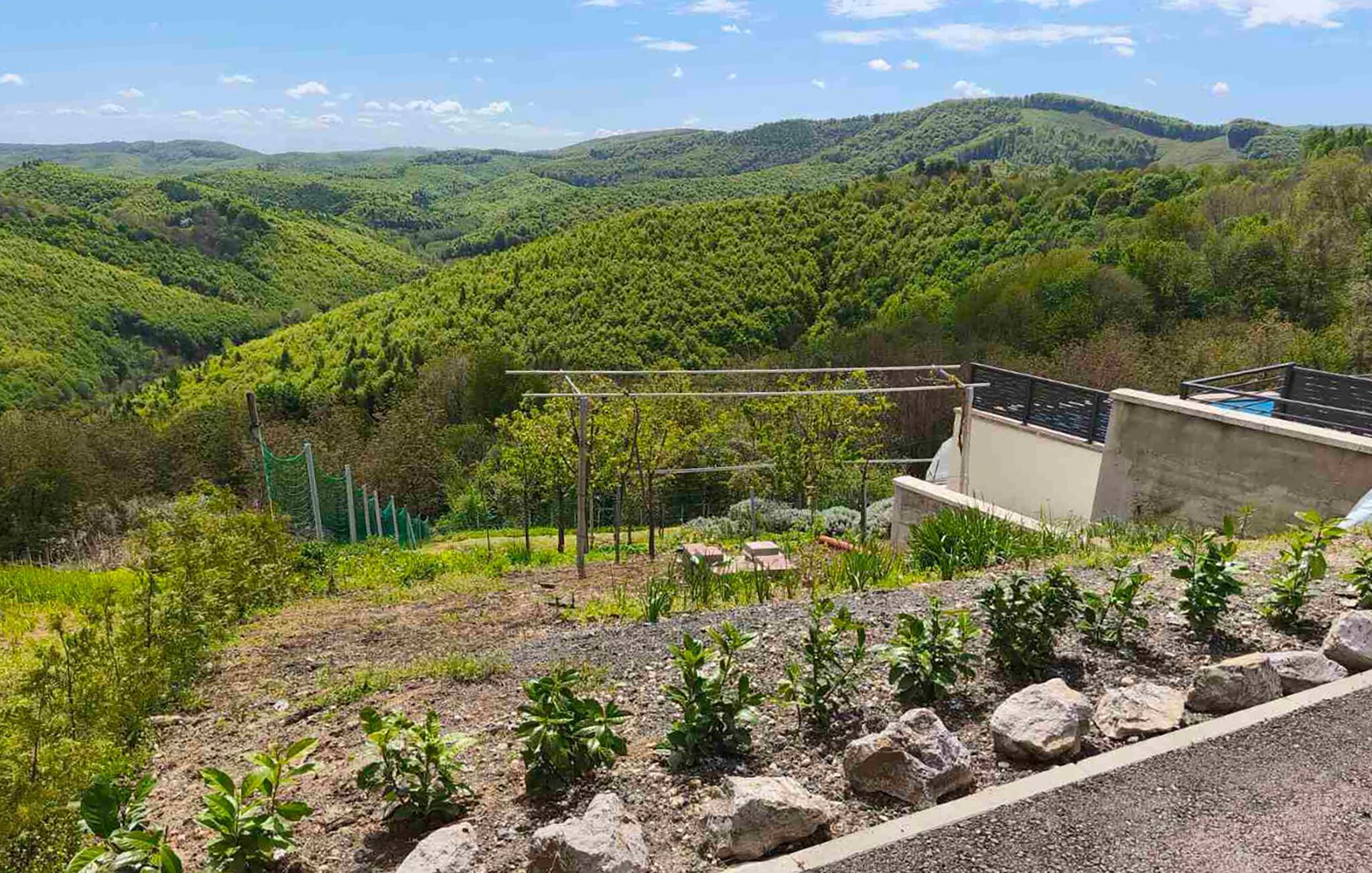 Imidlertid vil du sikkert tilbringe mye tid i hagen, enten med å spille bordtennis, grille og bake i hagens grillovn eller svømme i bassenget. Etterpå kan du legge deg ned på solsengene og nyte panoramautsikten over landskapet.