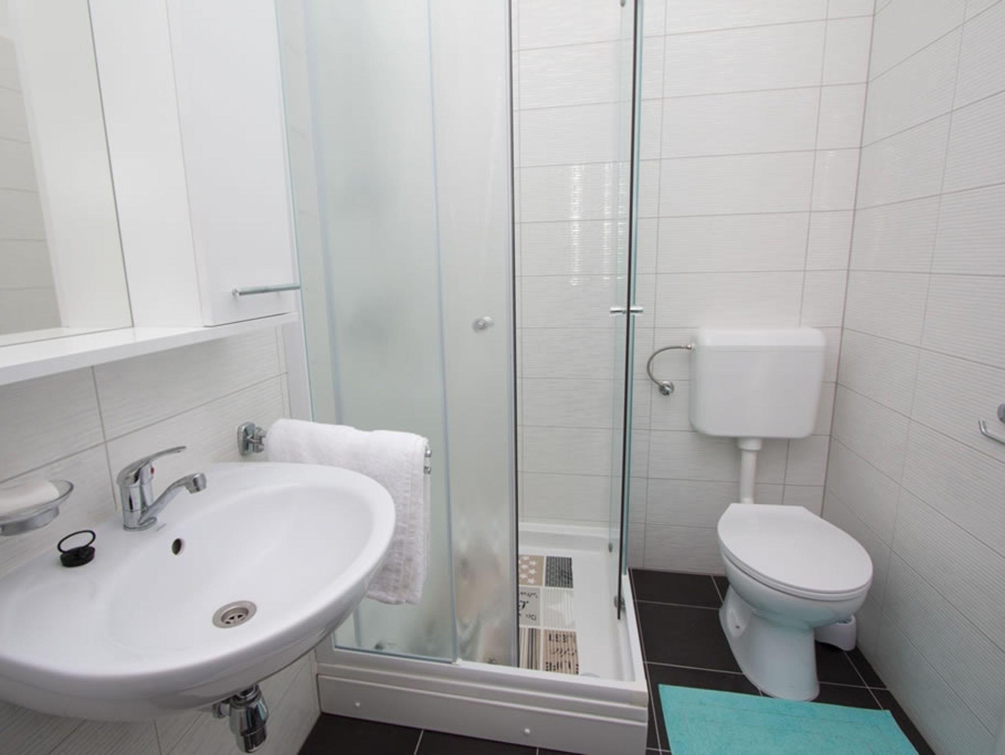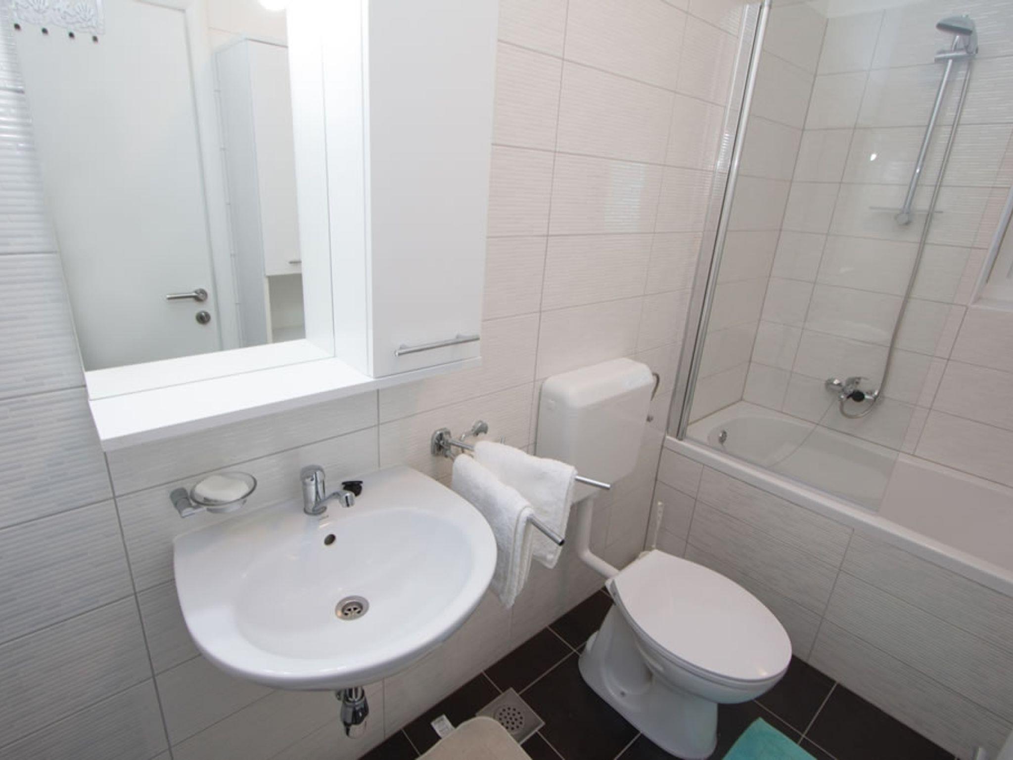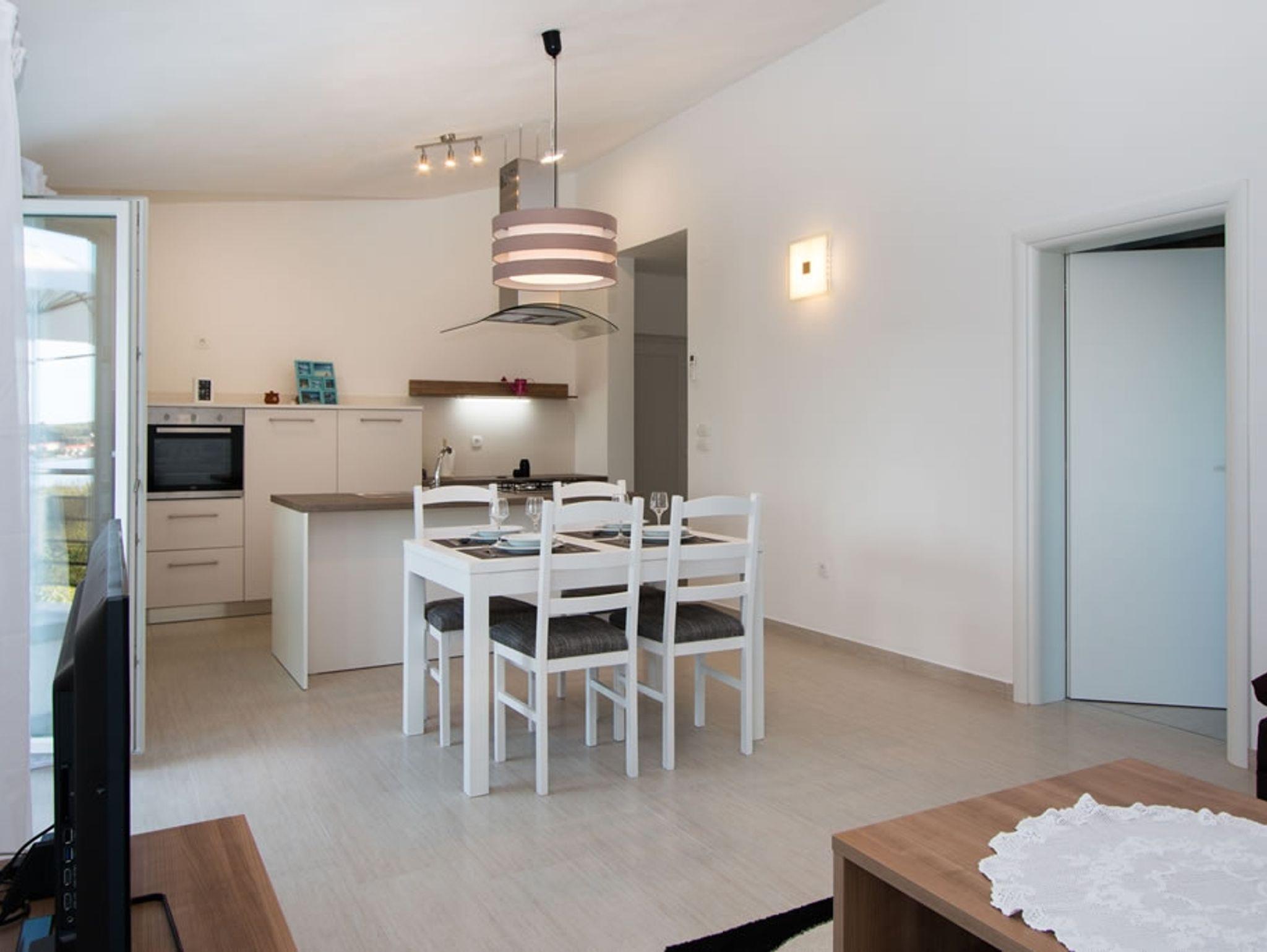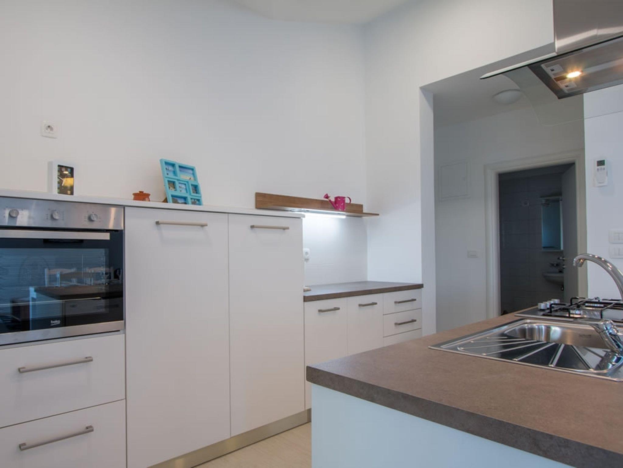 Ferienwohnung bietet Platz für 6 Gäste. Die Betten sind in Schlafzimmern, die es 2 gibt, und in Wohnzimmer, innerhalb einer Gesamtfläche von 66m2, angeordnet. Die Gäste haben eine eigene Terrasse zur Verfügung, auf der sie in warmen Sommernächten genießen können. Das Apartment bietet Meerblick. Es ist erlaubt, Speisen auf dem Gemeinschafts-Grill vorzubereiten. Während ihres Aufenthalts können Gäste das gemeinsam zur Nutzung stehende Schwimmbad benutzen. In der gebuchten Unterkunftseinheit zahlt man am Ort ein Depositum ( der Preis ist an der Internetseite angeführt ). IM PREIS INBEGRIFFEN: Kurtaxe, Endreinigung, Klimatisierung, Pool, Parkplatz, Internet, Bootsanlegeplatz, Kinderbett, Föhn. VERBINDLICHE ZUSÄTZLICHE KOSTEN: Kaution (200,00 € Einmalzahlung), Aufzahlung für Kurzaufenthalte (prozentualer Zuschlag pro Nächtigungsanzahl: 30% - 1, 20% - 2, 10% - 3). UNVERBINDLICHE ZUSÄTZLICHE KOSTEN: Wäschewaschen (5,00 € Waschen). Die Verfügbarkeit zusätzlicher Dienstleistungen in Ihrem reservierten Termin und die Preise derselben (falls nicht aufgeführt) müssen im Voraus überprüft werden. Zusätzliche Dienstleistungen die in der Zahlungsaufforderung nicht aufgeführt sind werden direkt beim Vermieter bezahlt, angenommen der Gast nutzt auch diese.