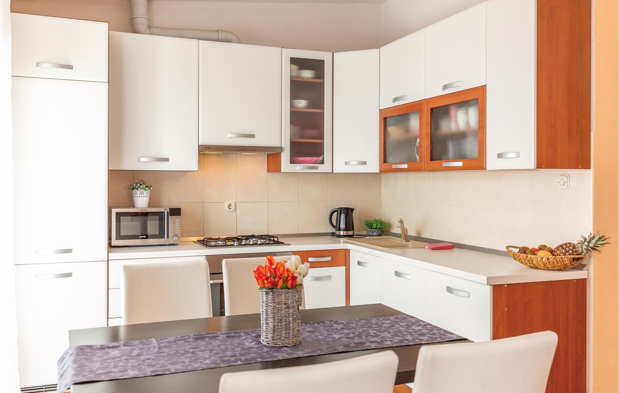 Disse to komfortable og funksjonelt utstyrte ferieleilighetene har egne terrasser med havutsikt. Selvfølgelig er en grill tilgjengelig på den felles eiendommen med hage. Venner og familier kan føle seg hjemme her. I den populære badebyen Makarska finner du rikelig med variasjon, enten på de fantastiske rullesteinstrendene eller mens du går langs promenaden, hvor det er mange barer og utmerkede restauranter. Du kan også nyte byens mange sommerarrangementer og kjøpe en suvenir i en av de mange gavebutikkene. CDE195 har også et boblebad.
