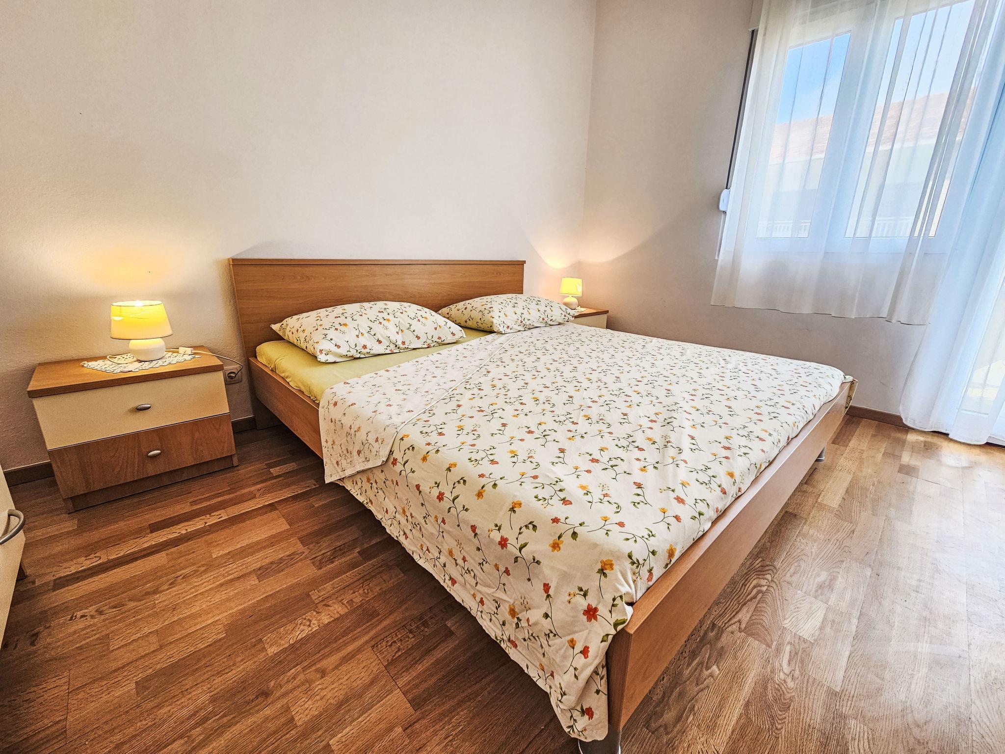 10-room house 165 m2 on 2 levels, south facing position. Living/dining room with kitchen corner, satellite TV and air conditioning. Exit to the terrace. 1 room with 1 french bed (160 cm, length 200 cm). 1 room with 1 french bed (140 cm, length 200 cm). 1 room with 2 beds (90 cm, length 200 cm). Living/dining room with satellite TV. Open kitchen (4 hot plates, oven, freezer). Bath/WC, shower/WC. Upper floor: (exterior staircase) living/dining room with satellite TV and air conditioning. Exit to the balcony. 1 room with 2 beds (90 cm, length 200 cm). 1 room with 1 double bed (2 x 90 cm, length 190 cm). 1 room with 1 double bed (2 x 90 cm, length 200 cm). Open kitchen (4 hot plates, oven, dishwasher, microwave, freezer). Shower/WC, sep. WC. Air-conditioning (extra). Balcony 13 m2, terrace 10 m2. Terrace furniture. View of the sea. Facilities: Internet (WiFi, free). When there are less than the maximum number of guests staying at the property, one floor will not be available for use.