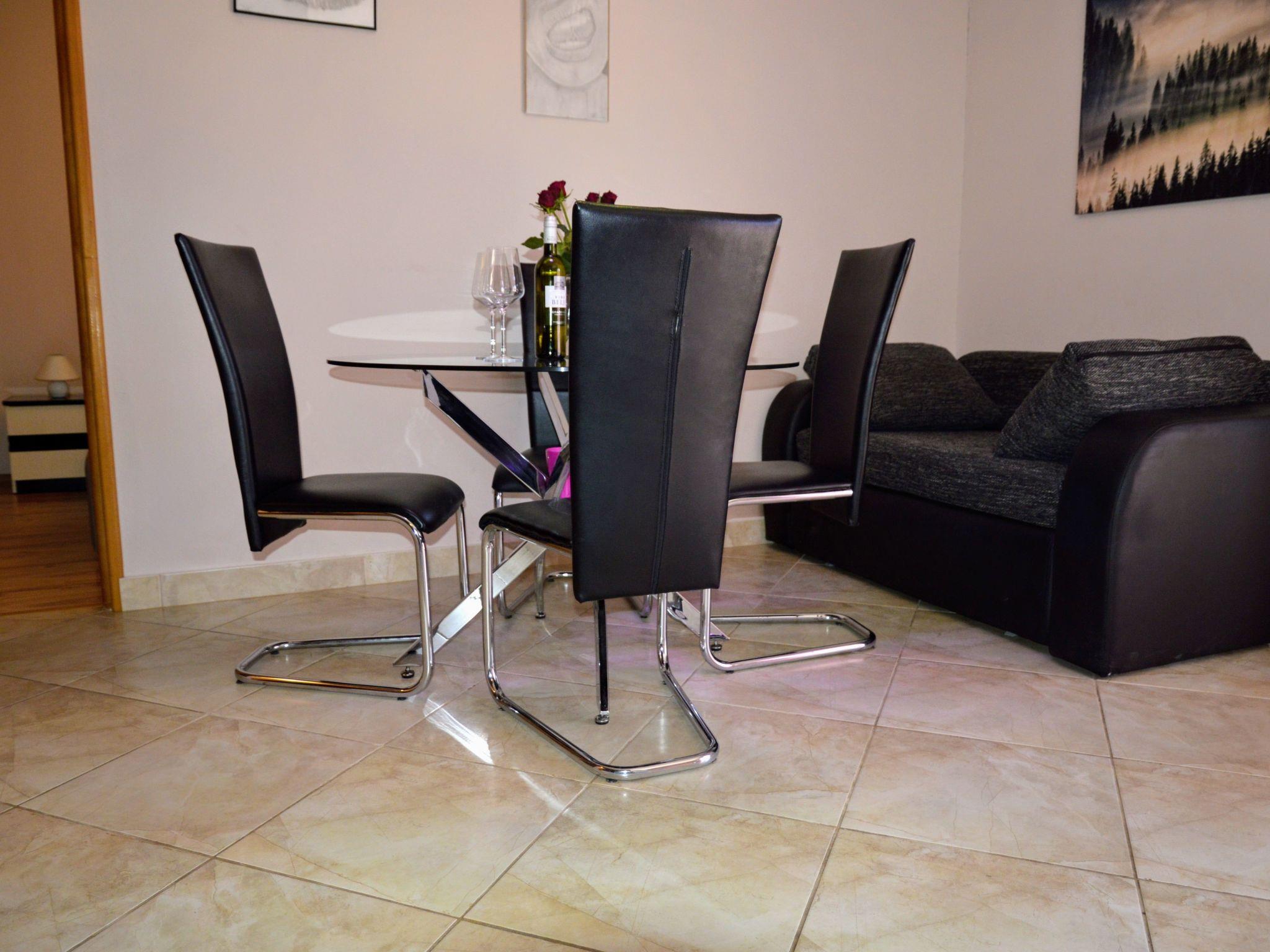 The apartment is situated in beautiful bay of Vinišce, 10 km from the Marina and 20 km from Trogir. It's only 150 m from the pebble beach. Maximum capacity of the apartment is 4 people and a baby (cot available), If you have a pet you can bring it with you. It consists of 2 bedrooms - double and twin beds, bathroom, kitchen with dinning room (sofa bed for 1 person) with exit to the balcony with a sea and street view . It's located on the first floor of the house that has a total of 3 apartments max. capacity for 13 people , You share the main entrance on the first floor but the apartment has separate entrance. The house is in a quiet environment,safe for children with croft of 300 m2 childerns' playground is in vicinity of the house. You will have the barbecue and free parking space on your disposal. All basic services are nearby, and for everything else you might need it can be found in the Marina or Trogir.