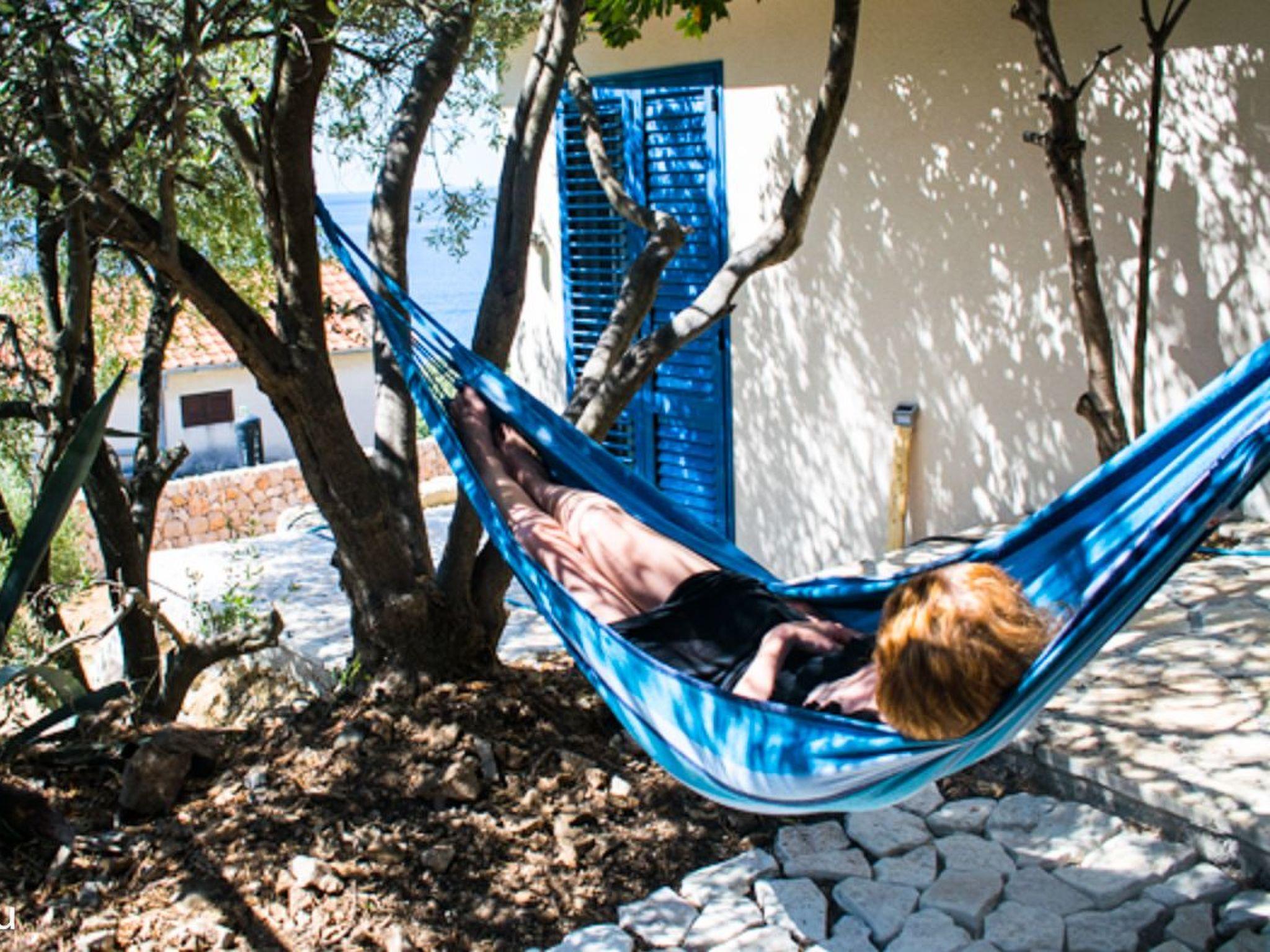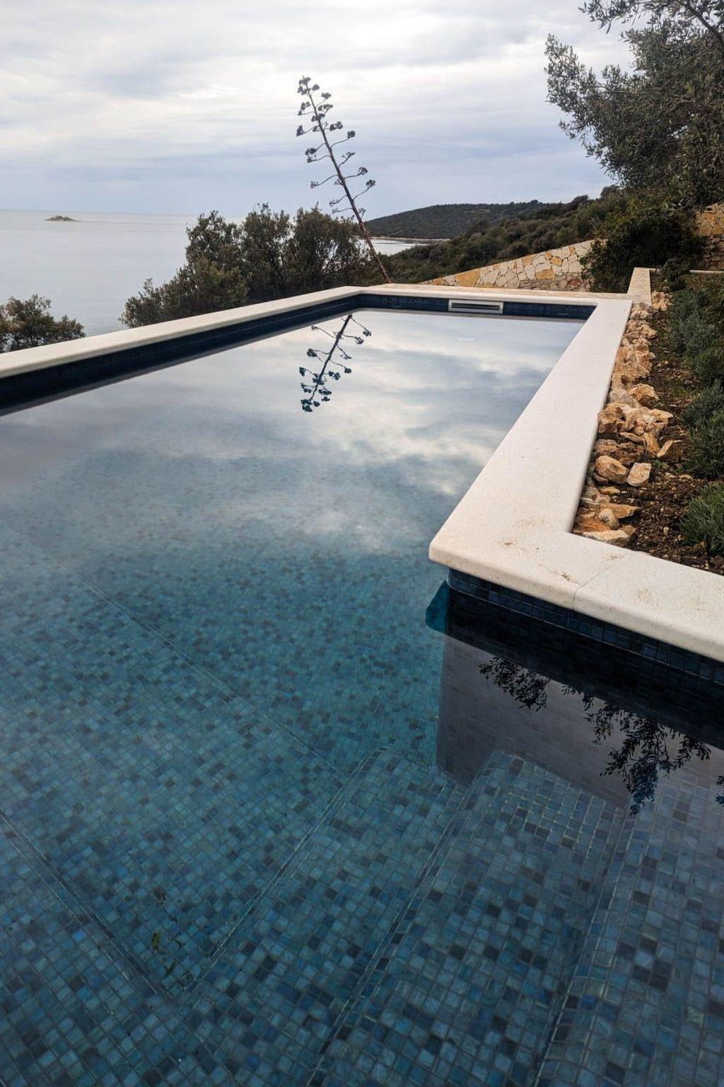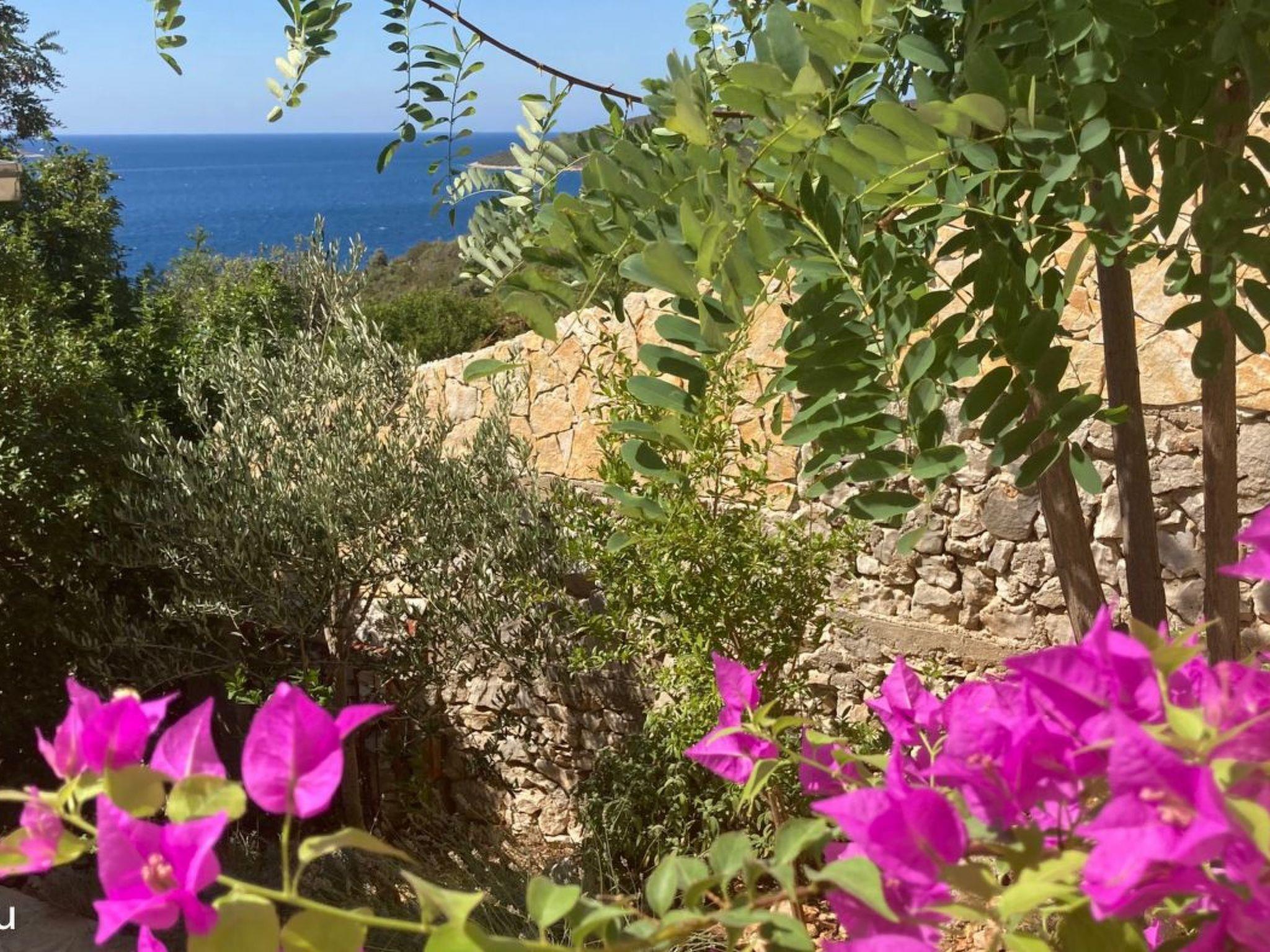 Villa Blu: secluded, luxurious holiday home by the sea Ideal for large families or a group of friends looking for a quiet escape, Villa Blu is located next to a nature reserve and just a few steps away from a secluded bay on the Dalmatian coast. Relax and enjoy the breathtaking view from the large sun terrace (40 m2). Villa Blu consists of two residential units (a main house with about 150 m2 and a smaller flat with about 60 m2 of living space) that can sleep 10 to 12 people. In total there are 6 bedrooms (2 with access to the balcony), 4 bathrooms, 2 kitchens, a 40 m2 terrace with awnings, a garage and 2 additional parking spaces, in the middle of a large, old garden with olive, almond, fig and citrus trees. Please note: Good driving skills or a four-wheel drive vehicle are recommended for the remote location of the bay. The last 50 metres are very steep.