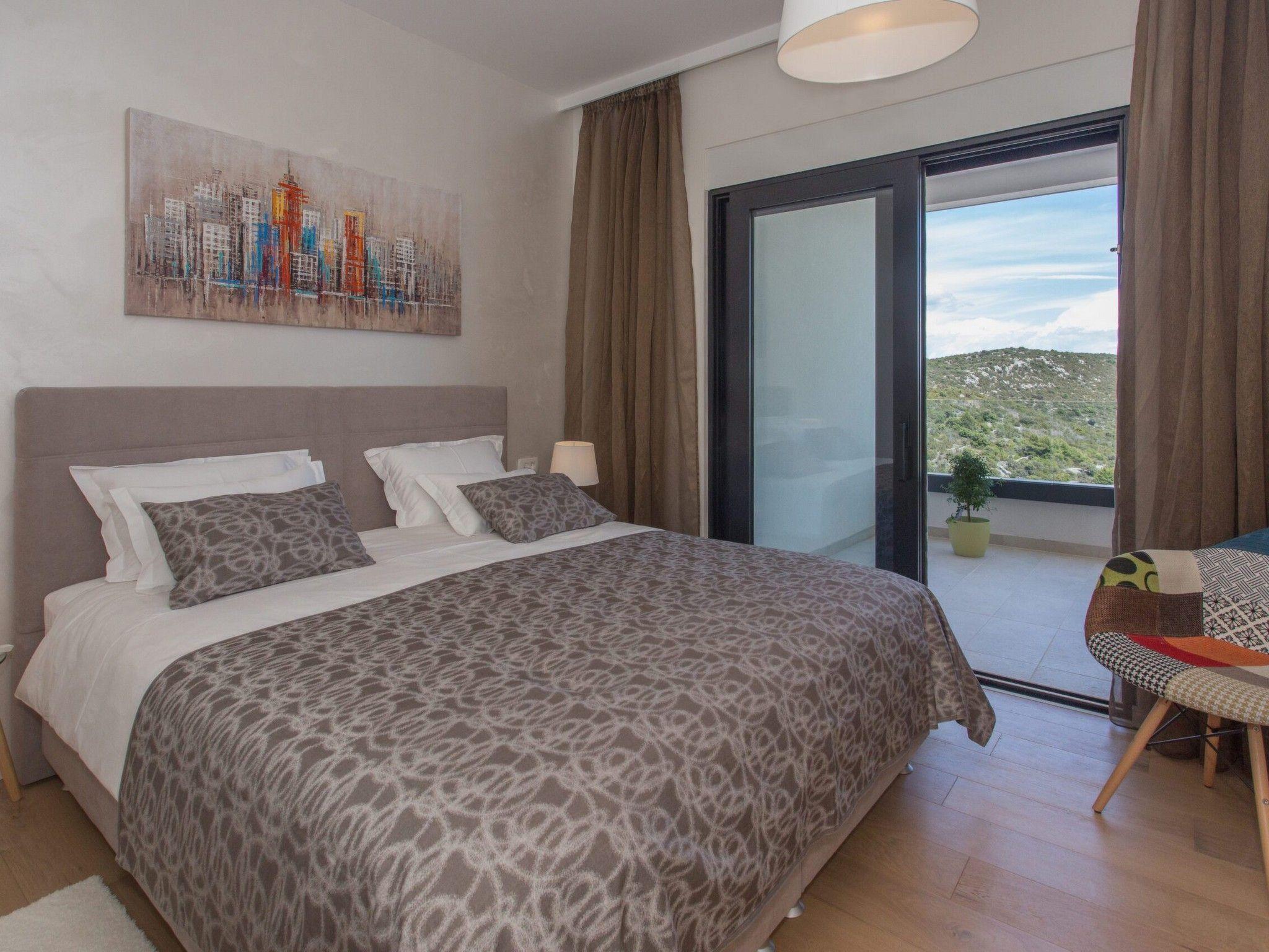 Luxury villa Orange Tree is part of a complex of luxury villas and can also be booked with other identical luxury villas, villas Magnolia and Iris, which makes it a perfect choice for larger groups. The villa covers 169 m2 of living area, divided on ground and first floor levels. Luxuriously designed interior rich with warm tones creates the ambience of a comfortable and airy holiday home where every guest feels welcome. Villa Orange Tree has 3 bedrooms, 2 bathrooms, 1 half-bath and can comfortably accommodate up to 6 persons. ?Ground floor consists of a spacious open concept living room, fully equipped kitchen with dining area, laundry room and 1 half-bath. Ground floor has access to a covered terrace with an outdoor table where guests can dine al fresco while enjoying the view of the pool, garden and the sea. First floor is designed as a resting area with 3 air conditioned bedrooms with king size double beds (180 x 200 cm) and seaview balconies. Master bedroom has an en suite bathroom with shower and access to the spacious covered seaview balcony equipped with outdoor furniture which is shared with another bedroom.