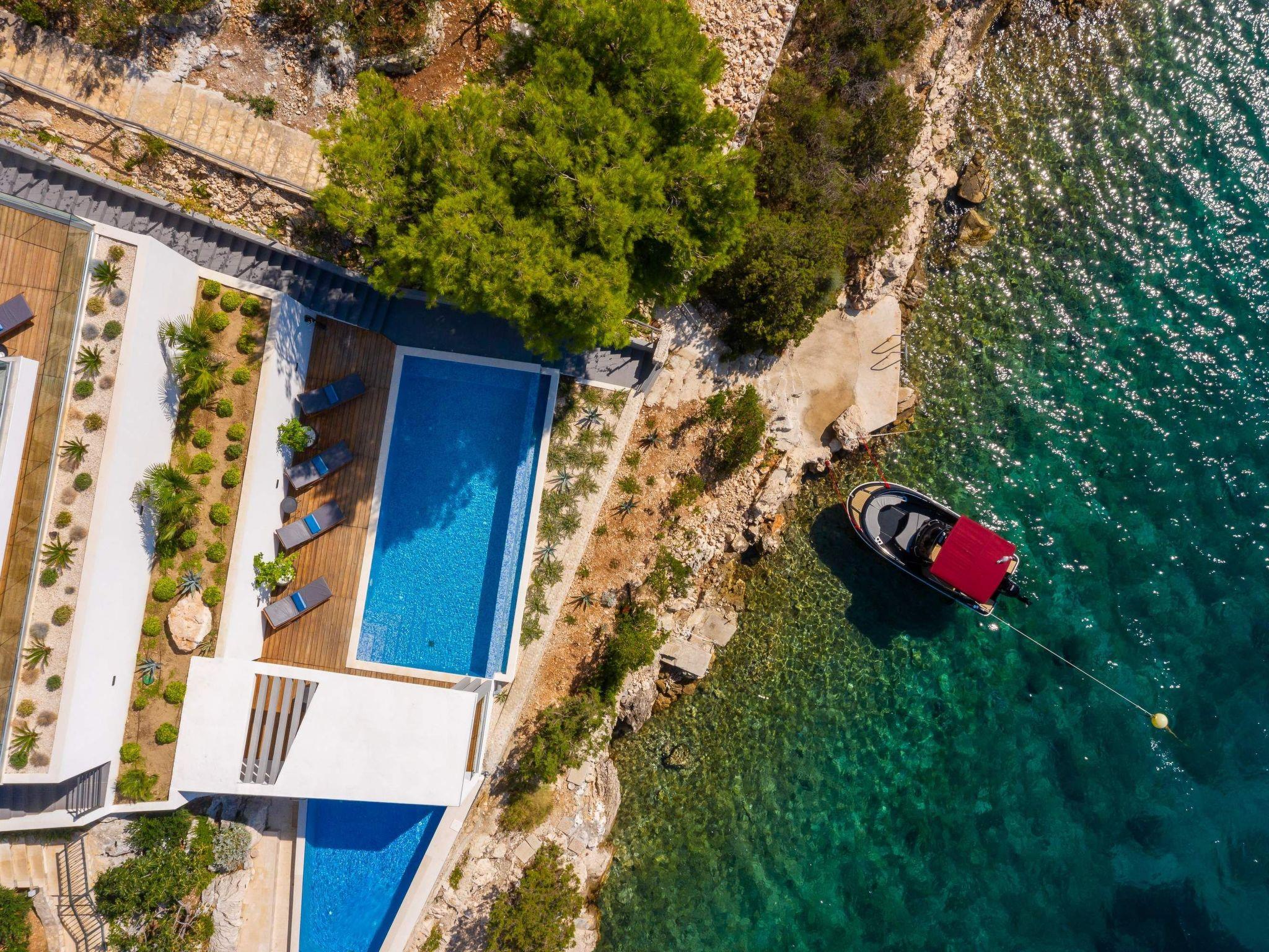 Beachfront villa Extravaganza is a high-end luxury mansion in Croatia. This new luxurious 5-star villa is ideal for a family vacation and designed for maximal relaxation and comfort. Located in a secluded bay of a charming fishing village near Trogir, the property offers guests ultimate privacy and seclusion. The villa’s elegant interior, ultimate attention to detail, and high-end equipment offers both modern convenience and luxury.