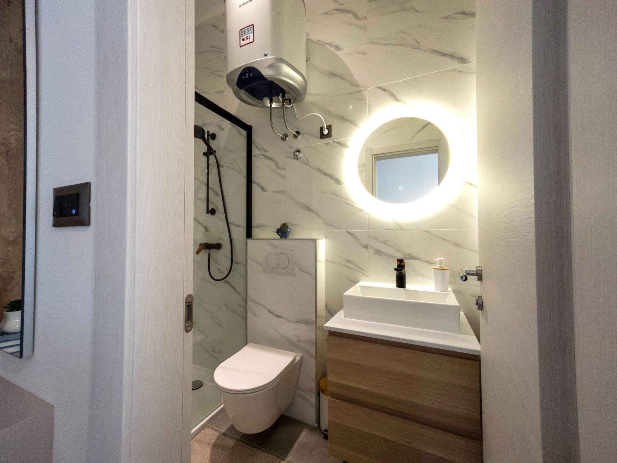 The modern renovate holiday apartment for 2024. season is on the ground floor and provides 85m² of living space with 20 m2 of terrace for up to six people. It has three bedrooms with a king size bed and two bathrooms. All bedrooms and living room have air contioner. The open kitchen is fully-equipped with a hob, oven, microwave, fridge with freezer compartment and dishwasher. It also has a big dining table with chairs. The living room has a flatscreen TV with satellite channels where you can enjoy your movies from comfortable sofa.