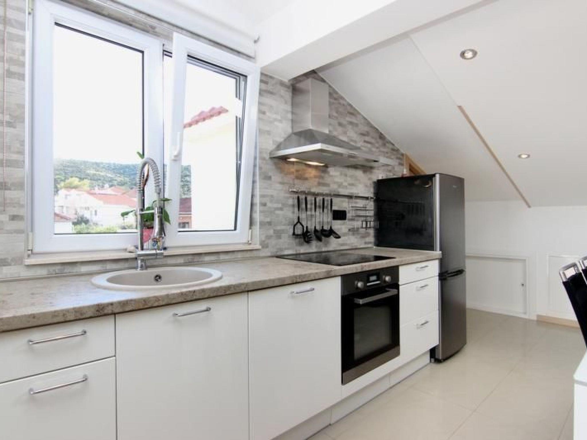 The 70m² attic flat is located in Vinisce and is situated directly by the sea. Vinisce is a small Dalmatian village situated in a beautiful bay between Primošten and Trogir.