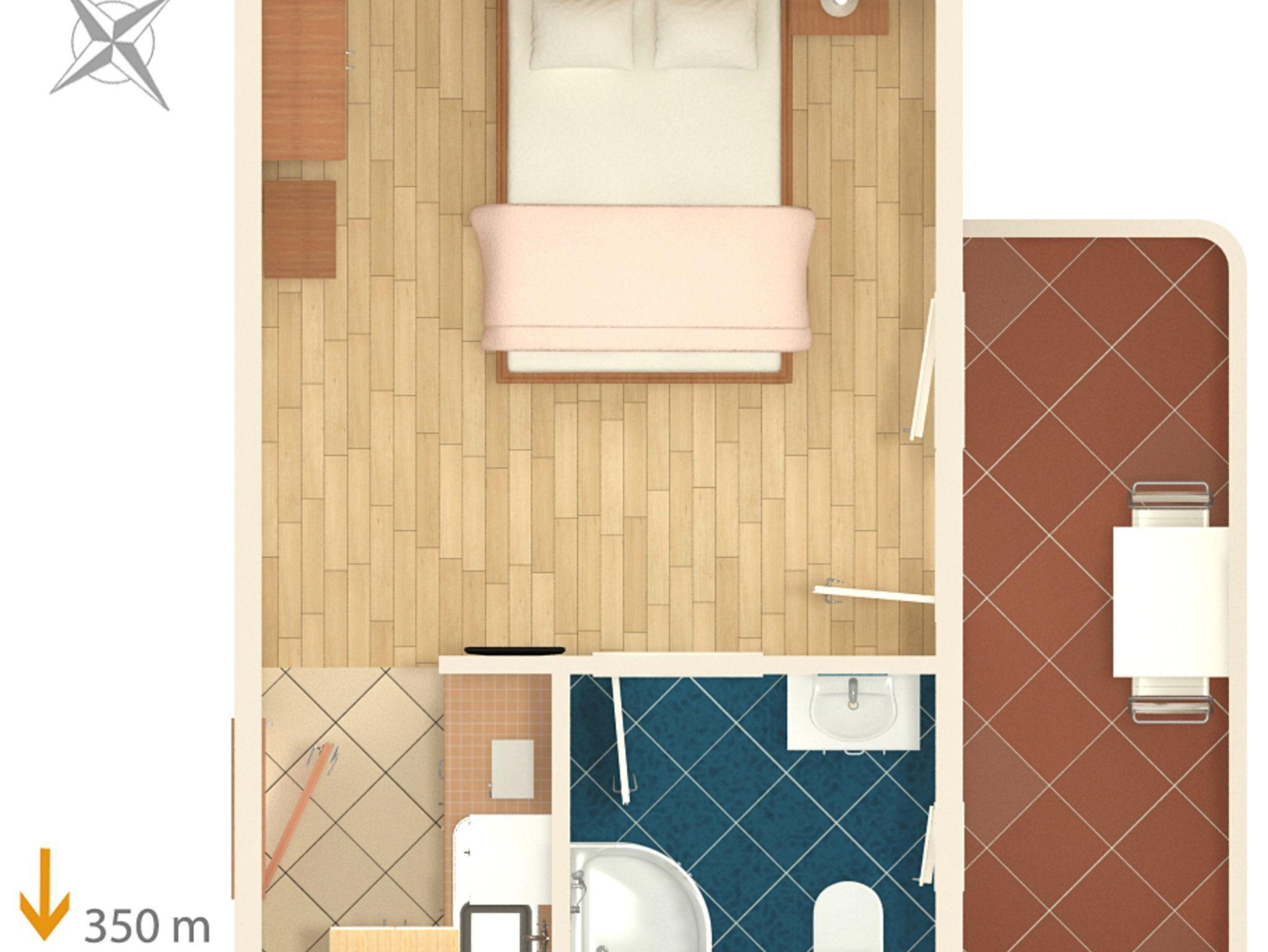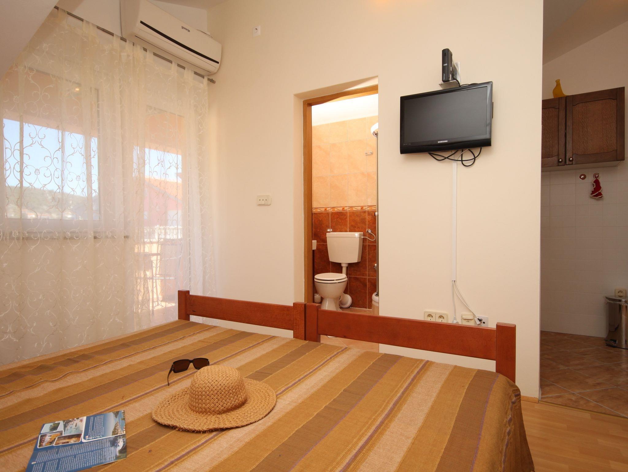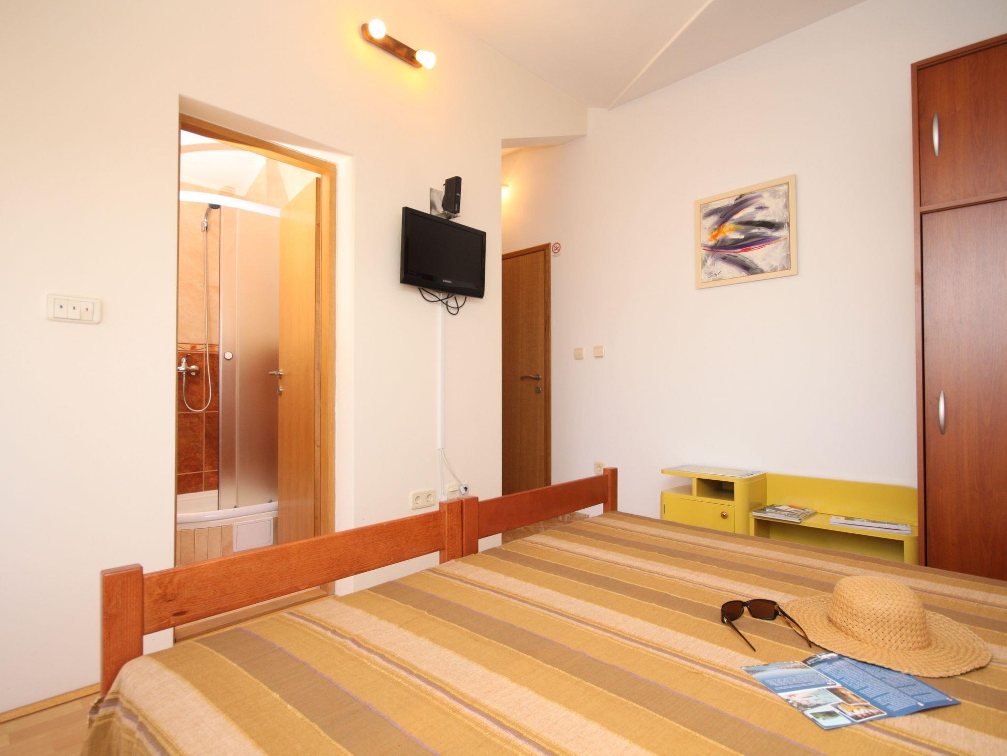 Studio bietet Platz für 2 Gäste. Die Betten sind in Schlafzimmern, die es 1 gibt, innerhalb einer Gesamtfläche von 16m2, angeordnet. Die Gäste haben eine eigene Terrasse zur Verfügung, auf der sie in warmen Sommernächten genießen können. Das Studio-Apartment bietet Meerblick. Es ist erlaubt, Speisen auf dem Gemeinschafts-Grill vorzubereiten. IM PREIS INBEGRIFFEN: Kurtaxe, Endreinigung, Klimatisierung, Parkplatz, Internet, Kinderbett, Bügeleisen, Bügelbrett, Föhn, tragbarer Grill. VERBINDLICHE ZUSÄTZLICHE KOSTEN: Aufzahlung für Kurzaufenthalte (prozentualer Zuschlag pro Nächtigungsanzahl: 30% - 1, 20% - 2, 10% - 3). UNVERBINDLICHE ZUSÄTZLICHE KOSTEN: Fahrrad (6,50 € täglich (pro Stück)). Die Verfügbarkeit zusätzlicher Dienstleistungen in Ihrem reservierten Termin und die Preise derselben (falls nicht aufgeführt) müssen im Voraus überprüft werden. Zusätzliche Dienstleistungen die in der Zahlungsaufforderung nicht aufgeführt sind werden direkt beim Vermieter bezahlt, angenommen der Gast nutzt auch diese. Ermäßigung auf den Grundpreis: Gratistag 14=13 (bei einem Aufenthalt von 14 Tagen oder mehr erhalten Sie einen Gratistag für den Aufenthalt bis 31.12.26).