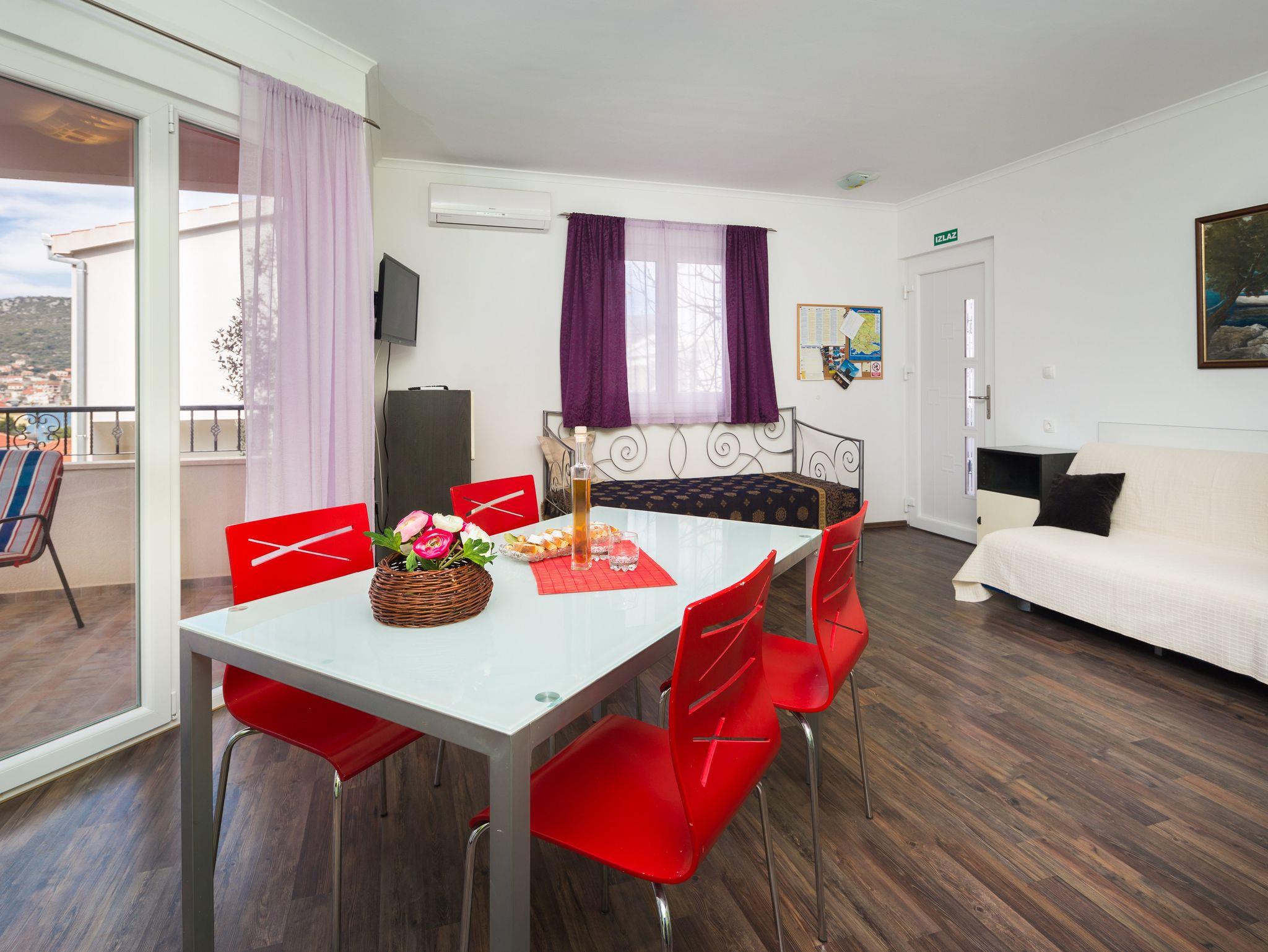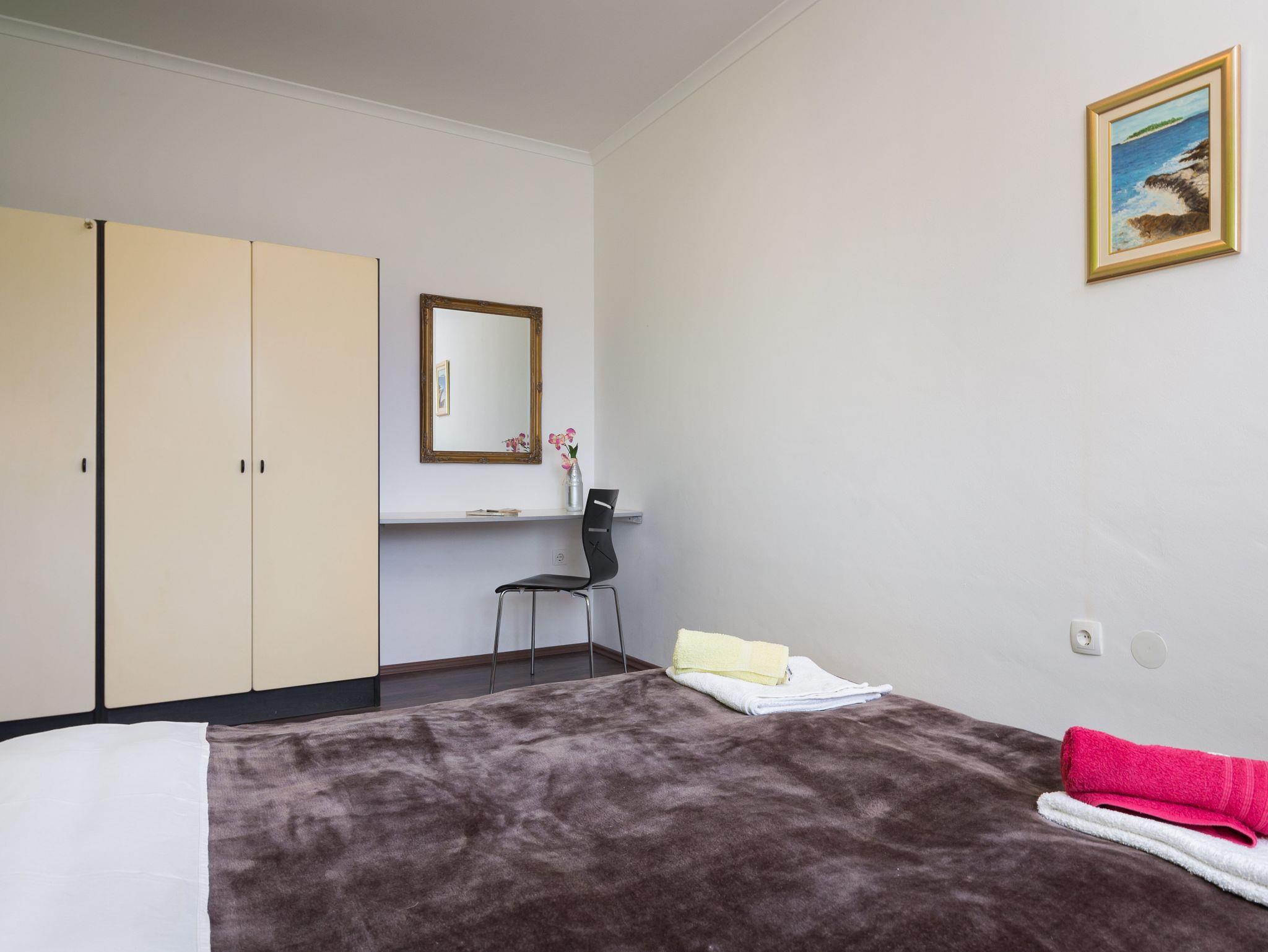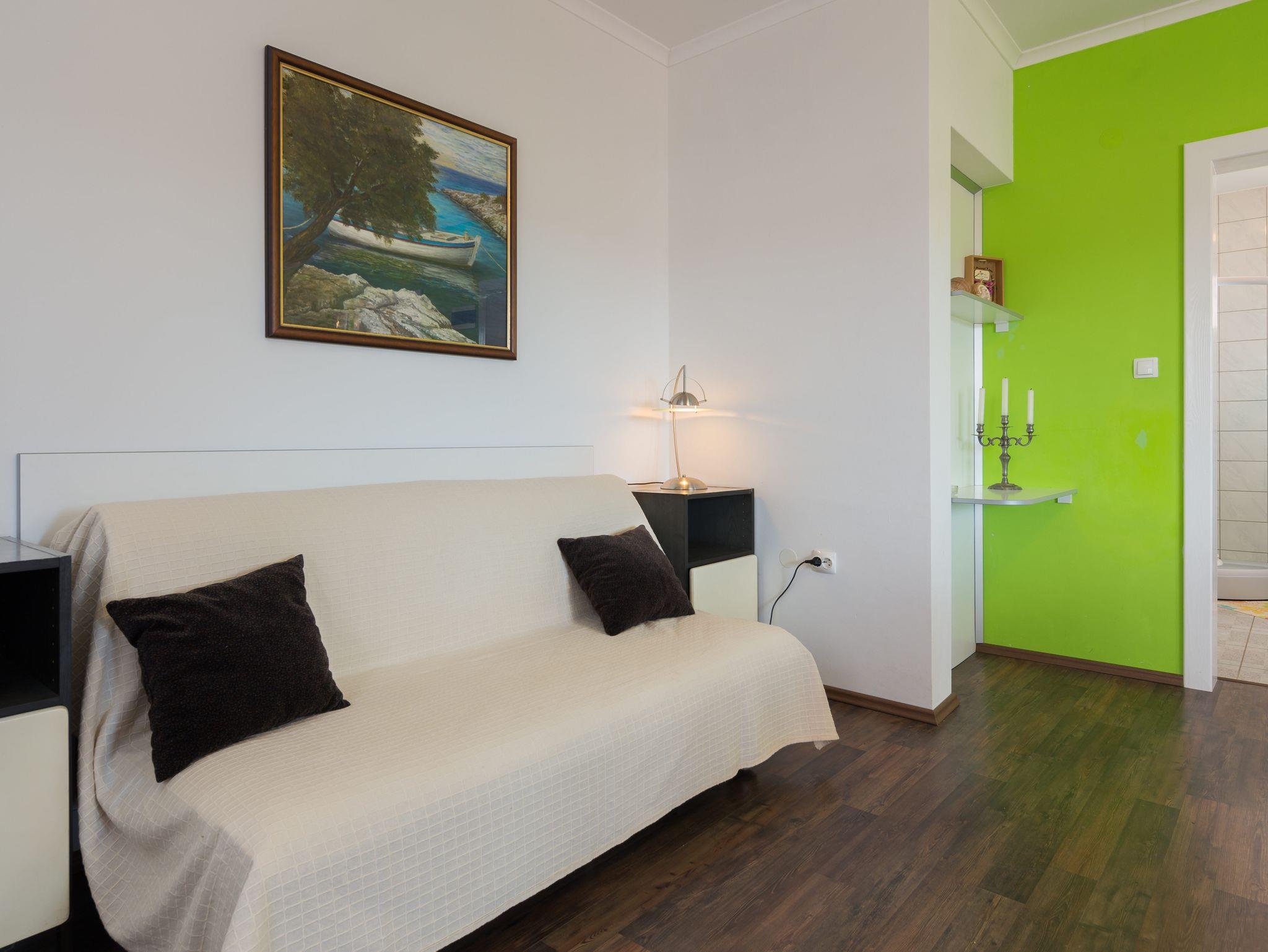 Ferienwohnung bietet Platz für 5 Gäste. Die Betten sind in Schlafzimmern, die es 1 gibt, und in Wohnzimmer, innerhalb einer Gesamtfläche von 46m2, angeordnet. Die Gäste haben eine eigene Terrasse zur Verfügung, auf der sie in warmen Sommernächten genießen können. Das Apartment bietet Meerblick. Es ist erlaubt, Speisen auf dem Gemeinschafts-Grill vorzubereiten. IM PREIS INBEGRIFFEN: Kurtaxe, Endreinigung, Klimatisierung, Parkplatz, Internet, Kinderbett, Bügeleisen, Bügelbrett, Föhn, Sonnenschirm, Liegestühle. VERBINDLICHE ZUSÄTZLICHE KOSTEN: Aufzahlung für Kurzaufenthalte (prozentualer Zuschlag pro Nächtigungsanzahl: 30% - 1, 20% - 2, 10% - 3). UNVERBINDLICHE ZUSÄTZLICHE KOSTEN: Wäschewaschen (10,00 € Waschen). Die Verfügbarkeit zusätzlicher Dienstleistungen in Ihrem reservierten Termin und die Preise derselben (falls nicht aufgeführt) müssen im Voraus überprüft werden. Zusätzliche Dienstleistungen die in der Zahlungsaufforderung nicht aufgeführt sind werden direkt beim Vermieter bezahlt, angenommen der Gast nutzt auch diese. Ermäßigung auf den Grundpreis: Gratistag 21=19 (bei einem Aufenthalt von 21 Tagen oder mehr erhalten Sie 2 Gratistage für den Aufenthalt bis 31.12.26).