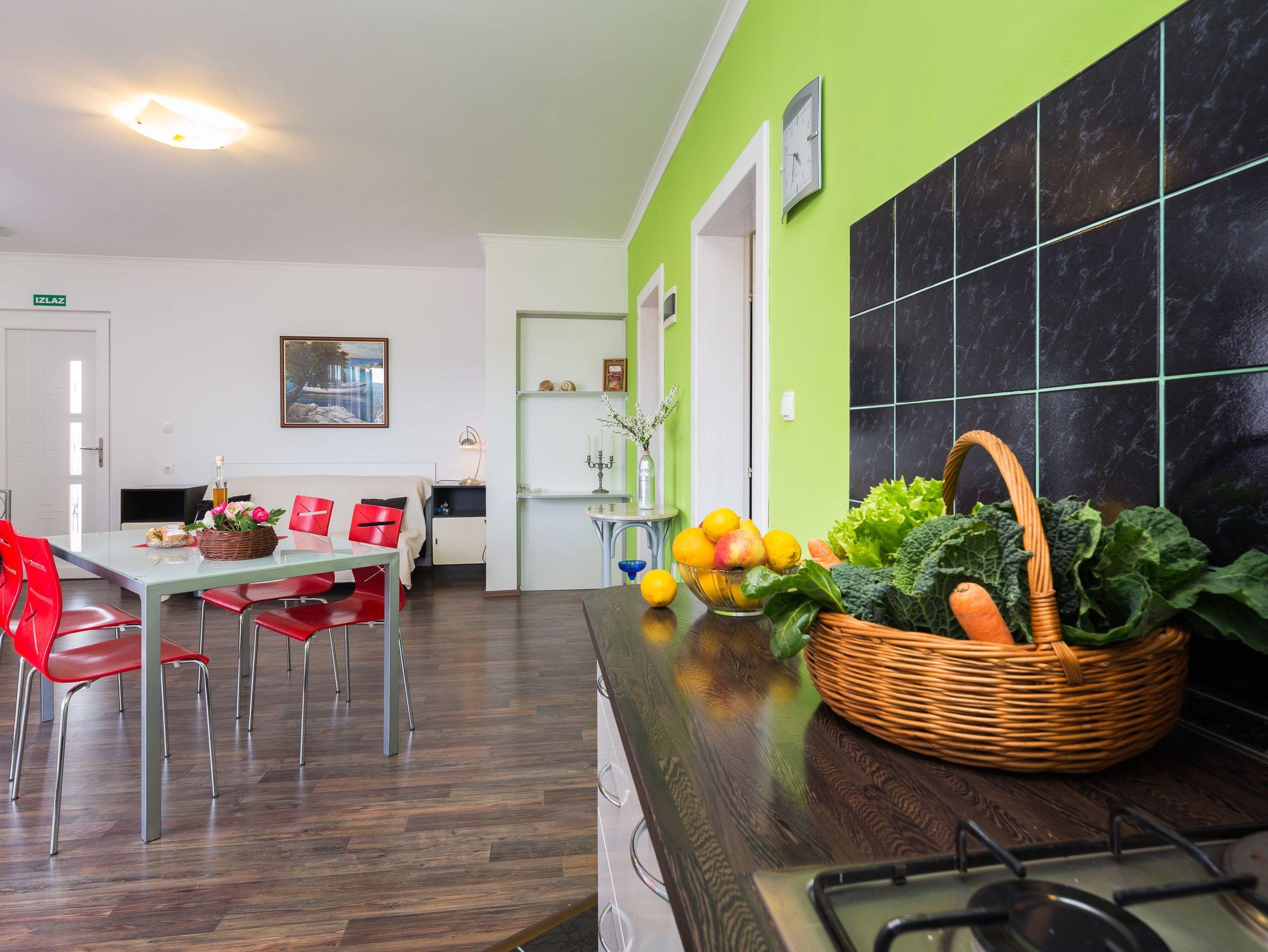 Umgebung des Objekts (Ordentlich), Hof (200m2), Parkplatz (Anzahl der Parkplätze: 3, Entfernung vom Objekt: im Hof), Grill: gemeinsam, WiFi Internet, Wäschewaschen, Föhn, Bügeleisen, Bügelbrett, Sonnenschirm, Liegestühle, Kinderbett
