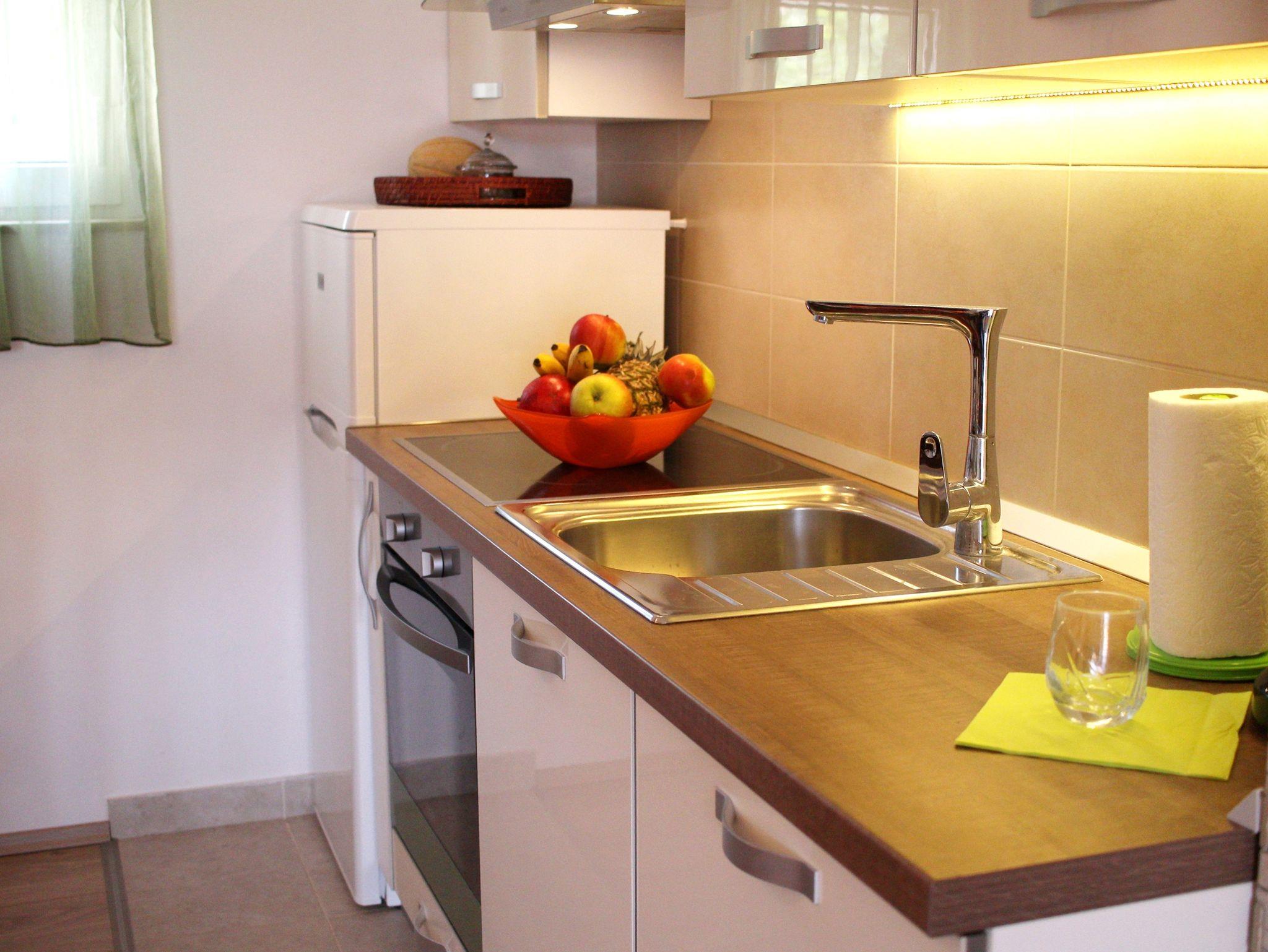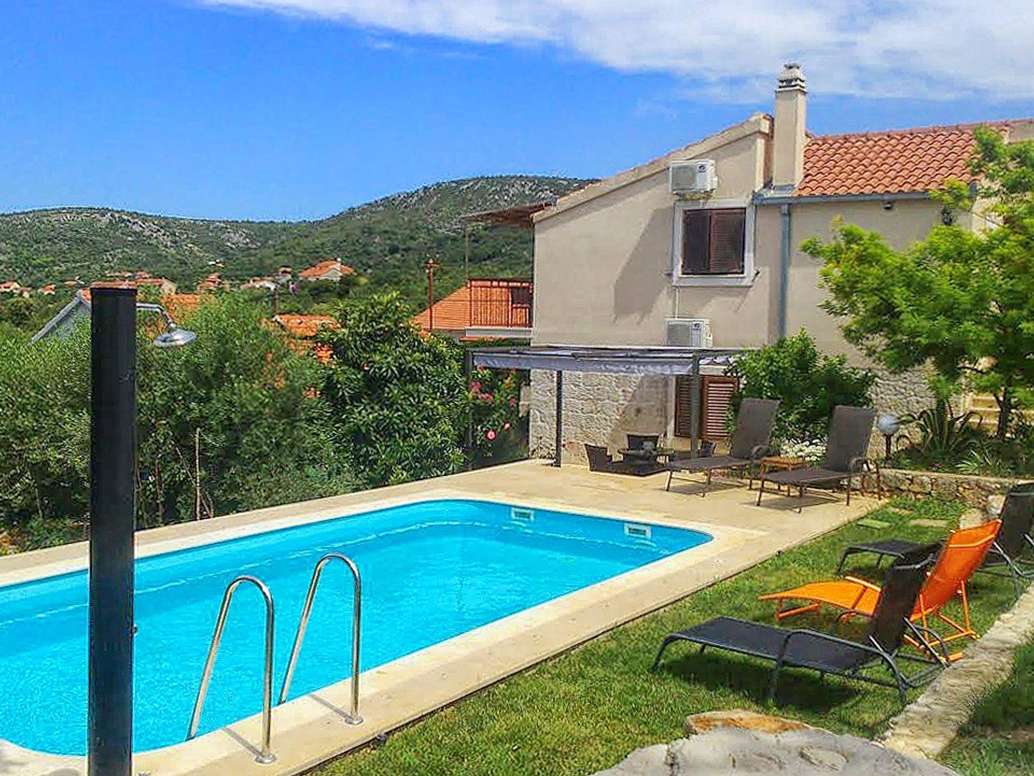 Haus bietet Platz für 10 Gäste. Die Betten sind in Schlafzimmern, die es 4 gibt, und in Wohnzimmer und Esszimmer, innerhalb einer Gesamtfläche von 92m2, angeordnet. Die Gäste haben eine eigene Terrasse zur Verfügung, auf der sie in warmen Sommernächten genießen können. Das Haus bietet Meerblick. Für vollen Genuss und Entspannung gibt es einen privaten Grill für Gäste dieser Unterkunft. Während ihres Aufenthalts können sich Gäste im privaten Schwimmbad entspannen. Räume der gebuchten Unterkunftseinheit werden nicht in eine Ganze verbunden. IM PREIS INBEGRIFFEN: Kurtaxe, Endreinigung, Klimatisierung, Pool, Parkplatz, Internet, Bügeleisen, Bügelbrett, Föhn. VERBINDLICHE ZUSÄTZLICHE KOSTEN: Aufzahlung für Kurzaufenthalte (prozentualer Zuschlag pro Nächtigungsanzahl: 30% - 1, 20% - 2, 10% - 3). Die Verfügbarkeit zusätzlicher Dienstleistungen in Ihrem reservierten Termin und die Preise derselben (falls nicht aufgeführt) müssen im Voraus überprüft werden. Zusätzliche Dienstleistungen die in der Zahlungsaufforderung nicht aufgeführt sind werden direkt beim Vermieter bezahlt, angenommen der Gast nutzt auch diese.