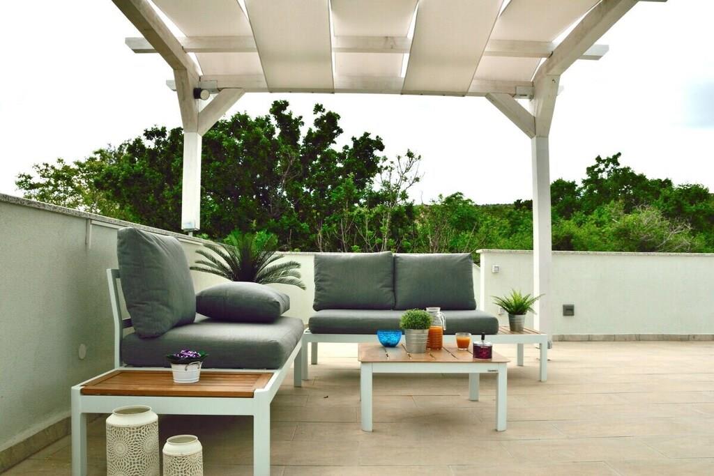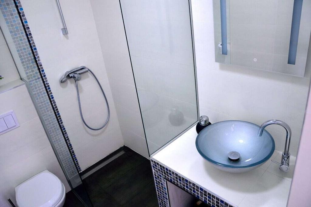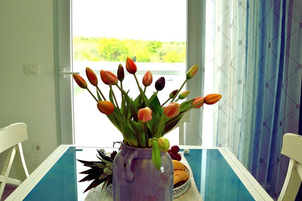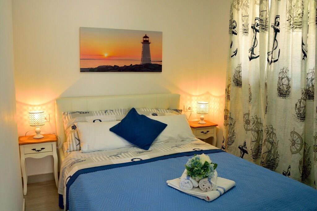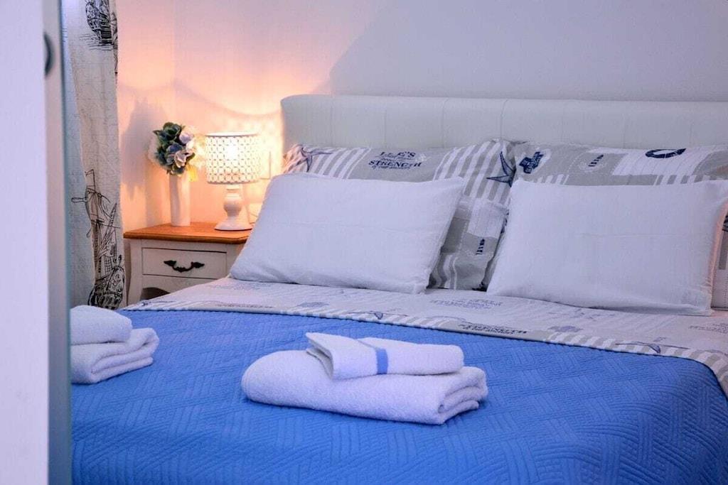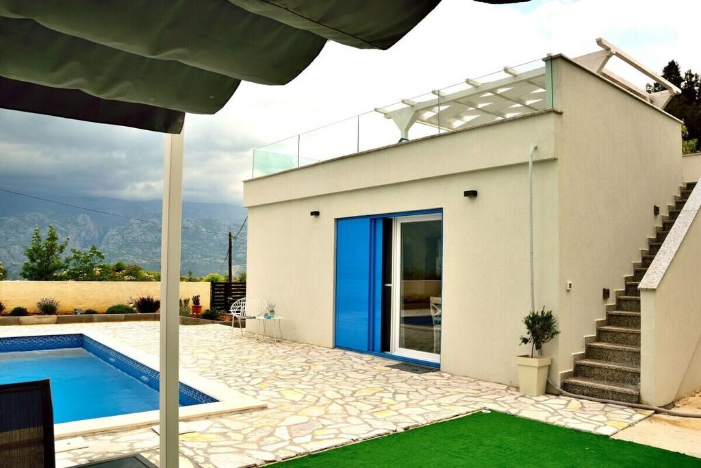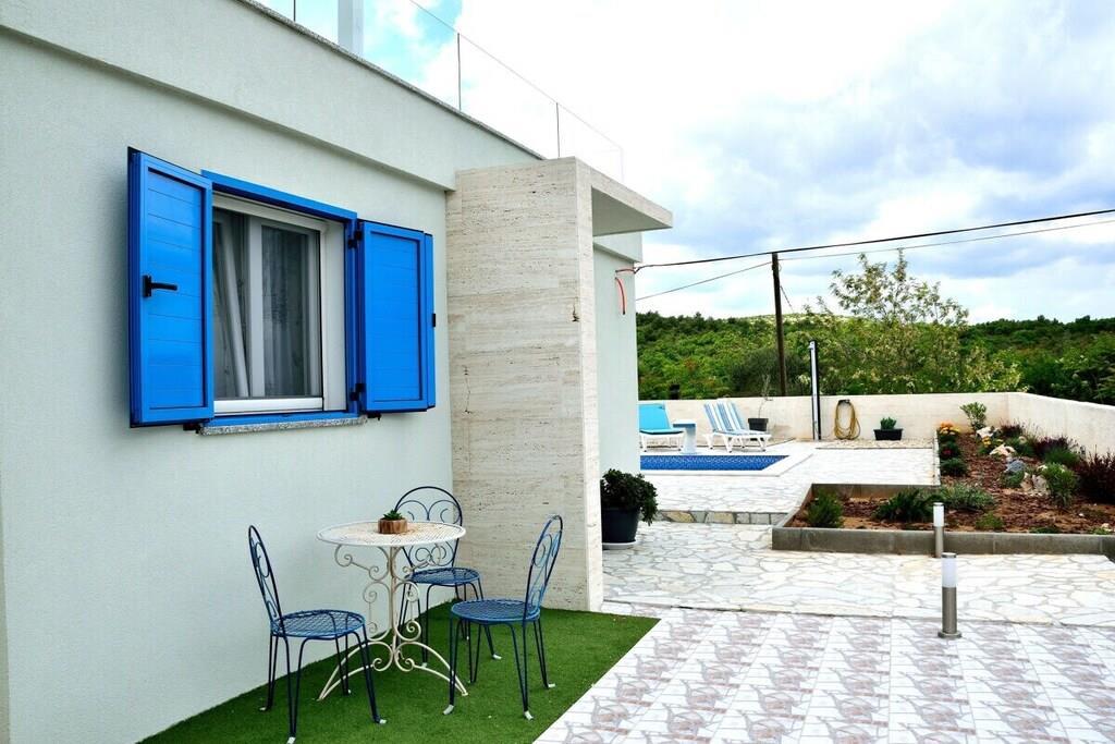 Dieses schöne Haus ist 50m² groß und besteht aus zwei Schlafzimmern, WC, Küche, Wohn- und Essbereich. Es ist im griechisch-mediterranen Stil mit hochwertigen Möbeln und einer voll ausgestatteten Küche mit hochwertigen Geräten eingerichtet. Es gibt einen großen Poolbereich und eine große Sonnenterrasse auf dem Dach des Hauses. Grill, kostenloser Parkplatz, WIFI für unsere Gäste zur Verfügung. Kleine Haustiere bis zu 4 kg sind gegen einen Aufpreis willkommen. Maximale Privatsphäre und ein ruhiger Urlaub sind garantiert.