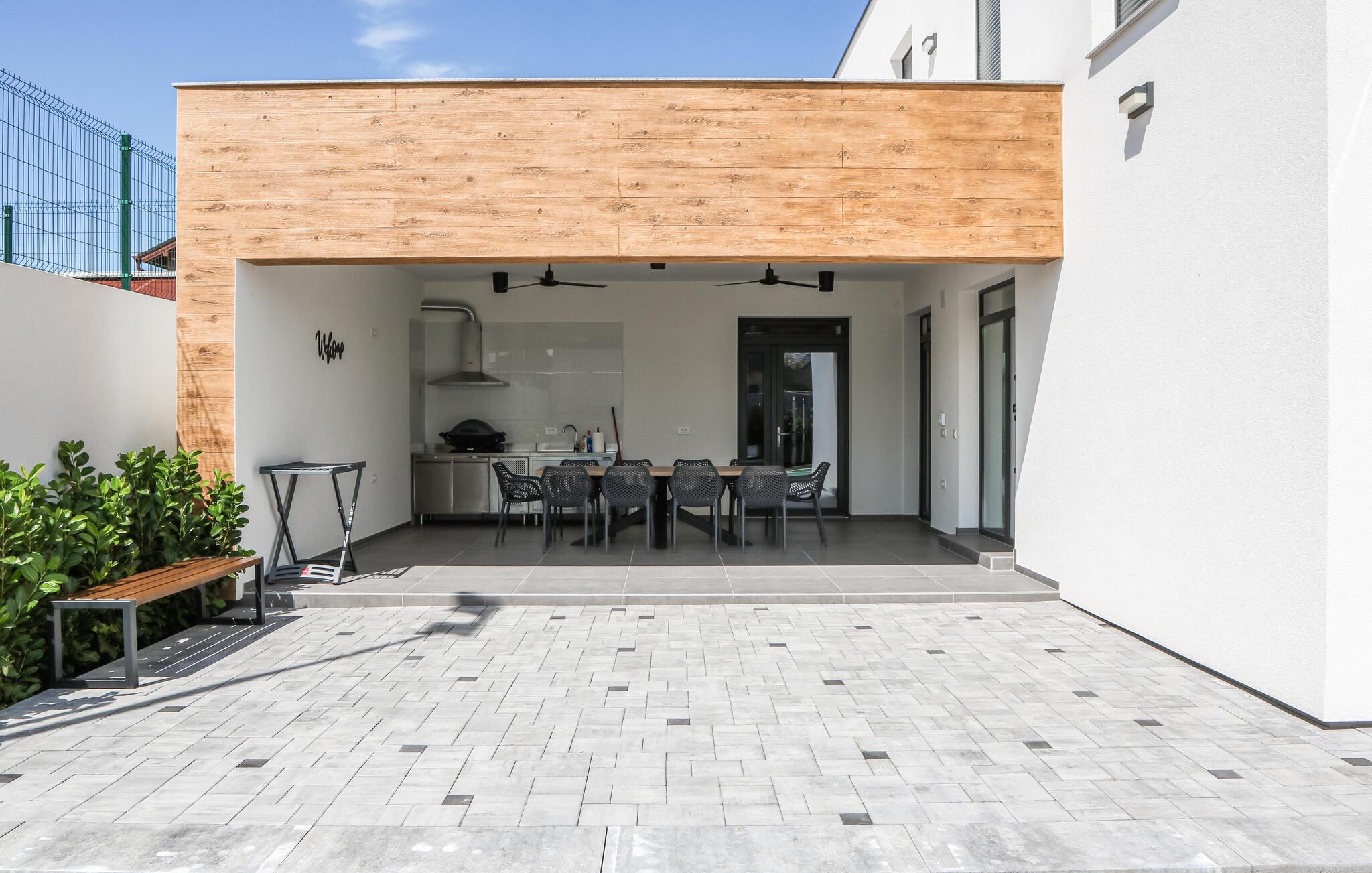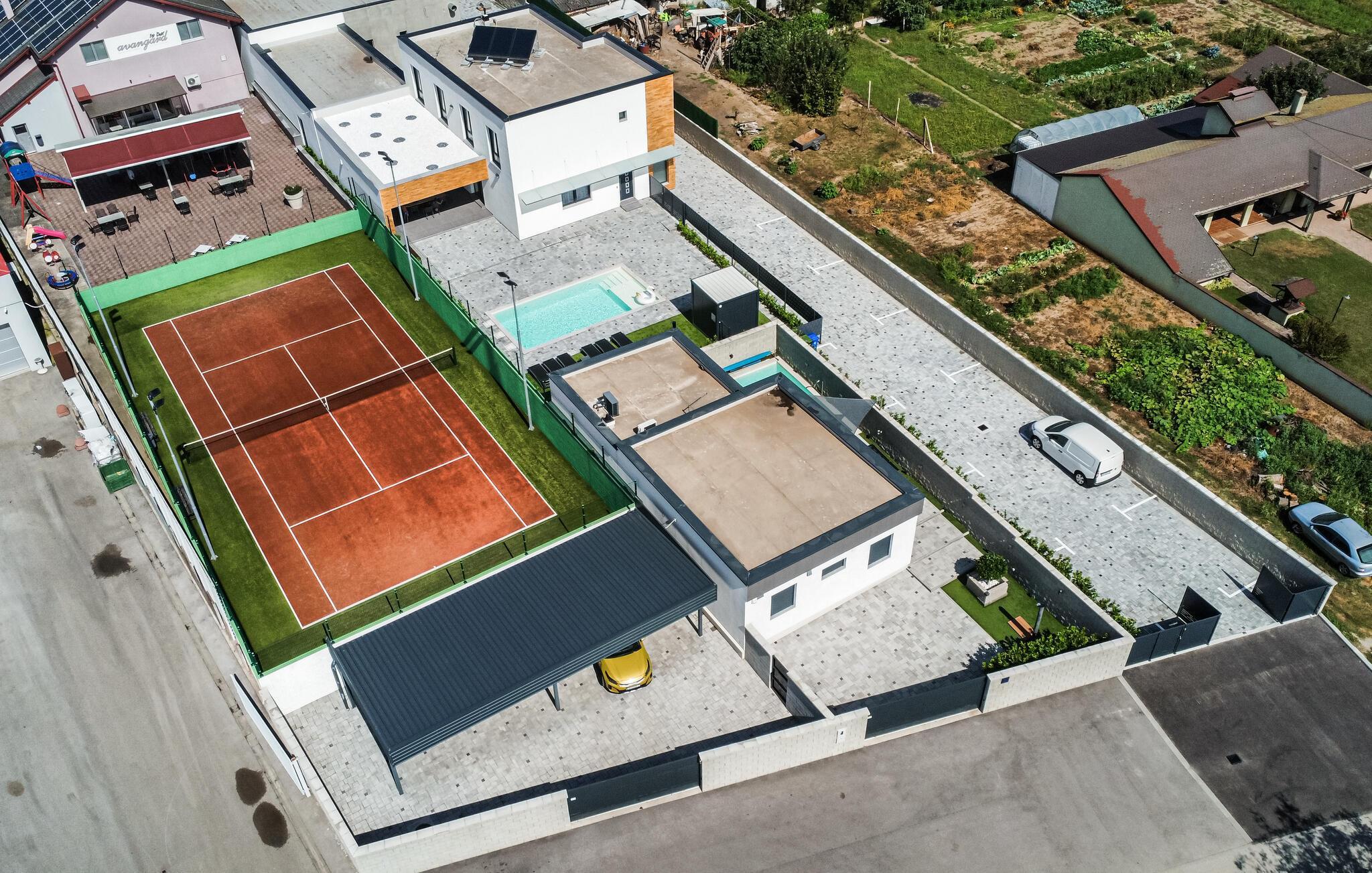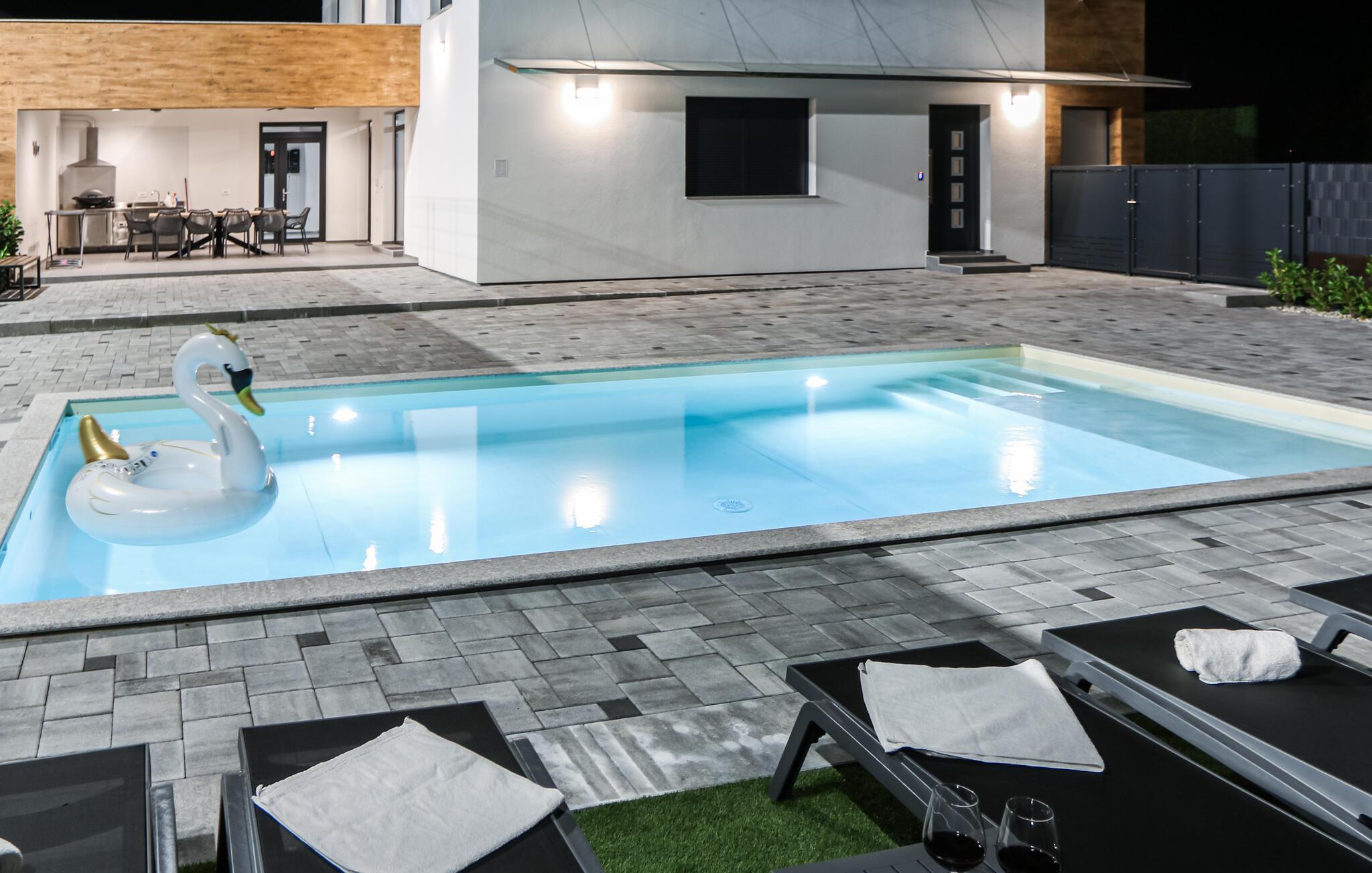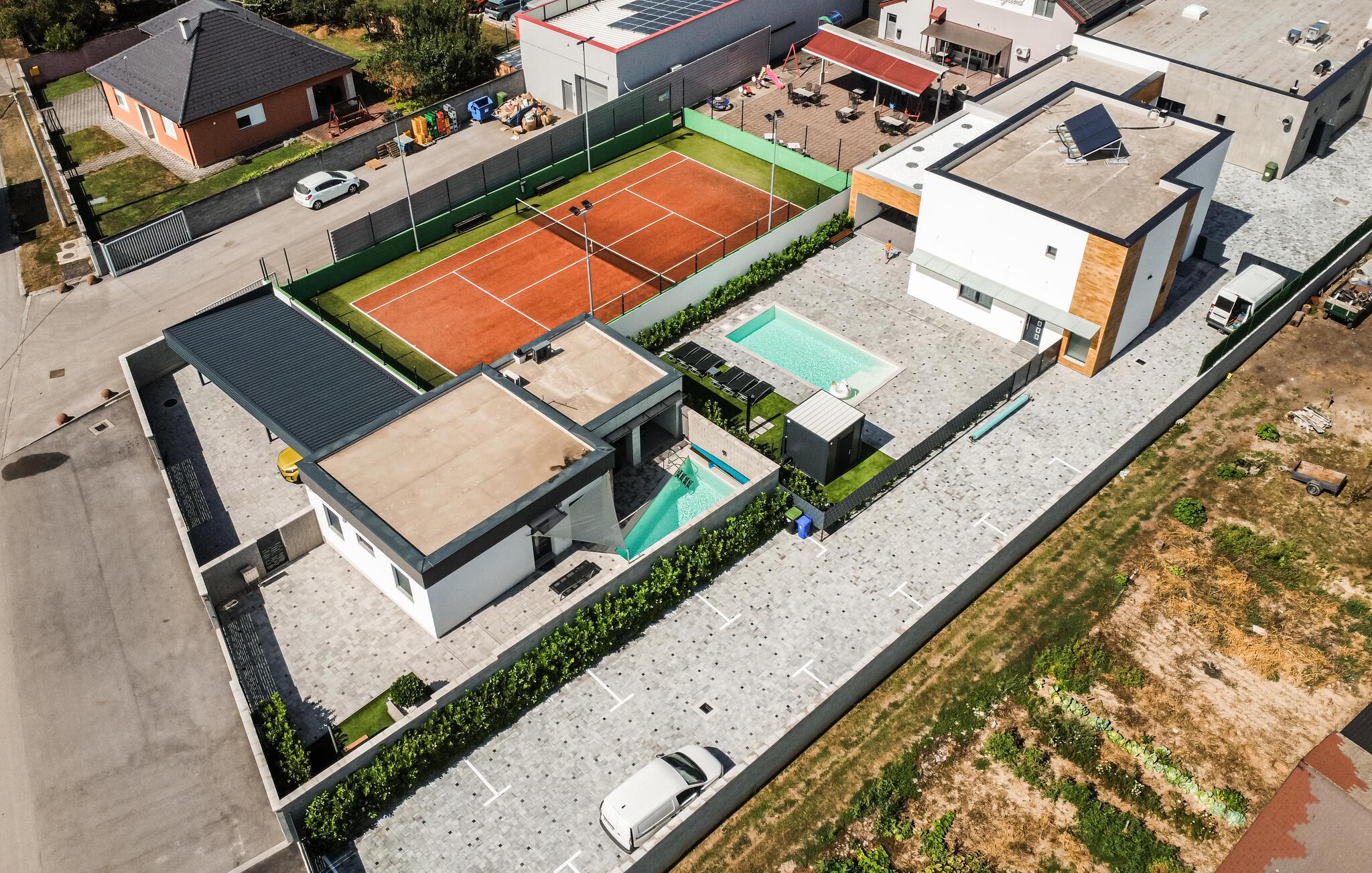 Velkommen til din drømmeferie. Denne luksuriøse ferievillaen i Rokovci imponerer med sin unike beliggenhet og smakfulle design. Interiøret tilbyr deg og storfamilien en atmosfære av eleganse og komfort, med en moderne stue, et fullt utstyrt kjøkken og kjærlig innredede soverom. Aktivitetsrommet med bordfotball sørger for underholdning for hele familien. Husets velværeavdeling med badstue og boblebad sørger for fullstendig avslapning. Det er bare å legge den hektiske hverdagen bak deg.