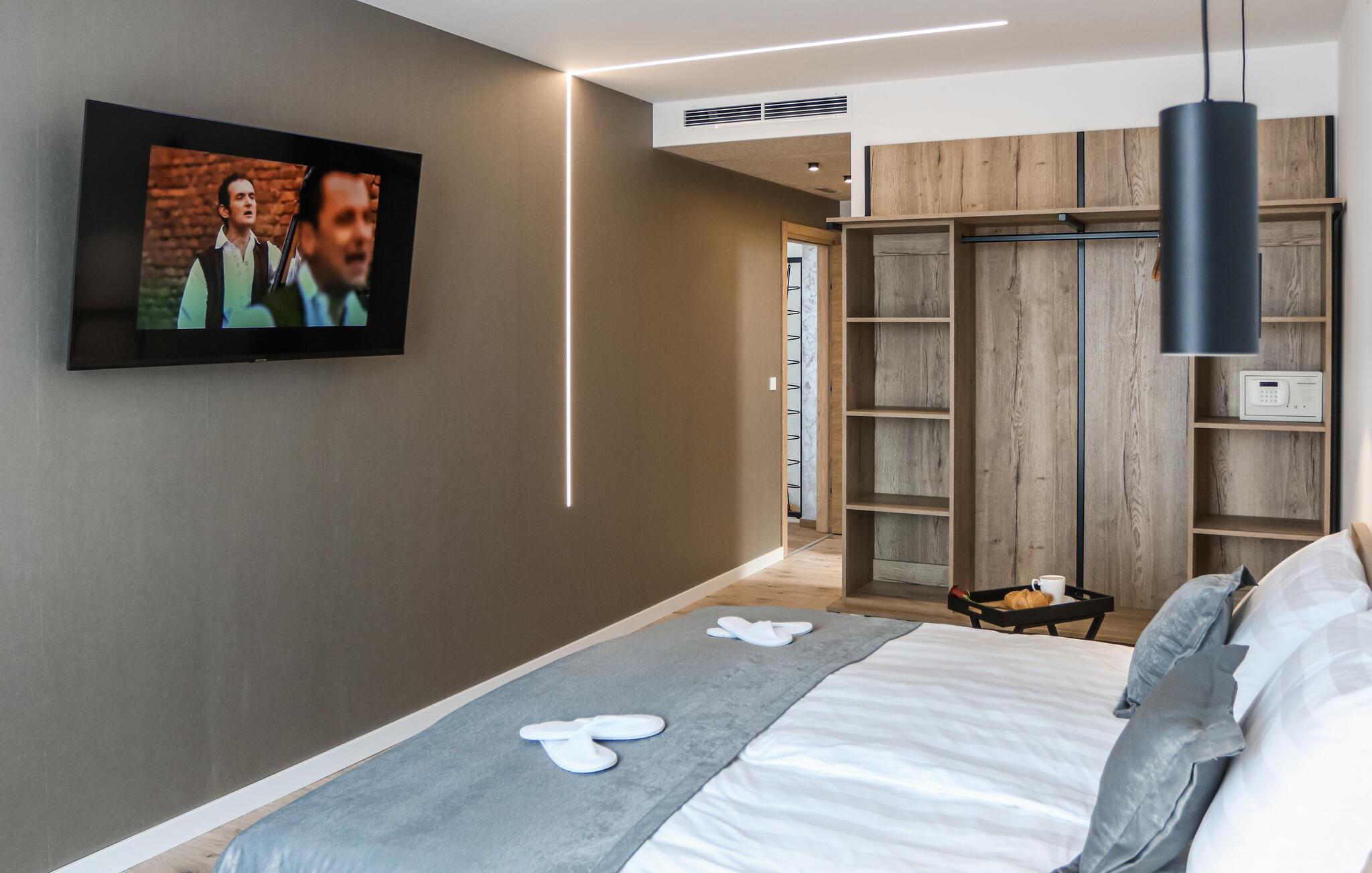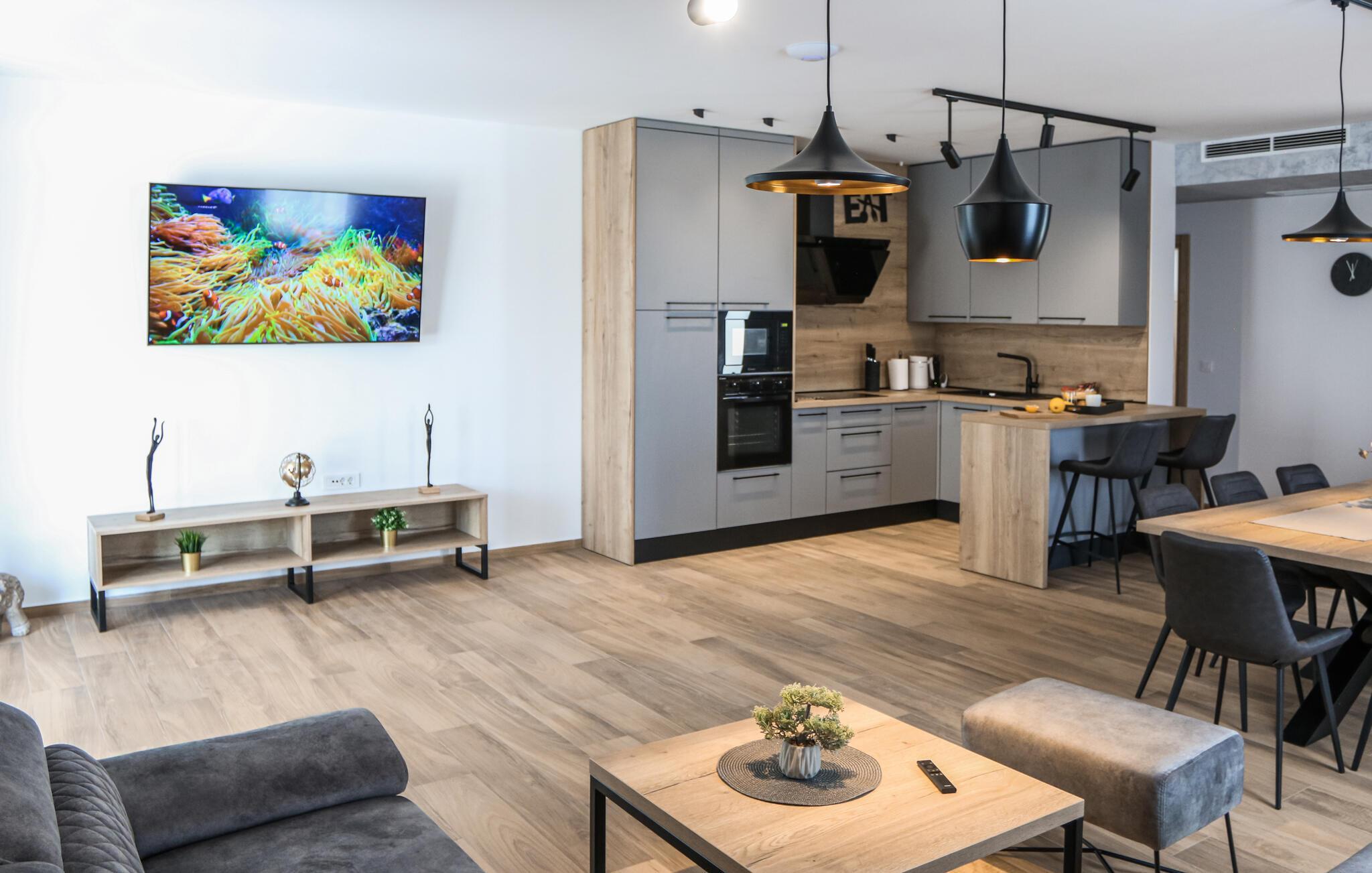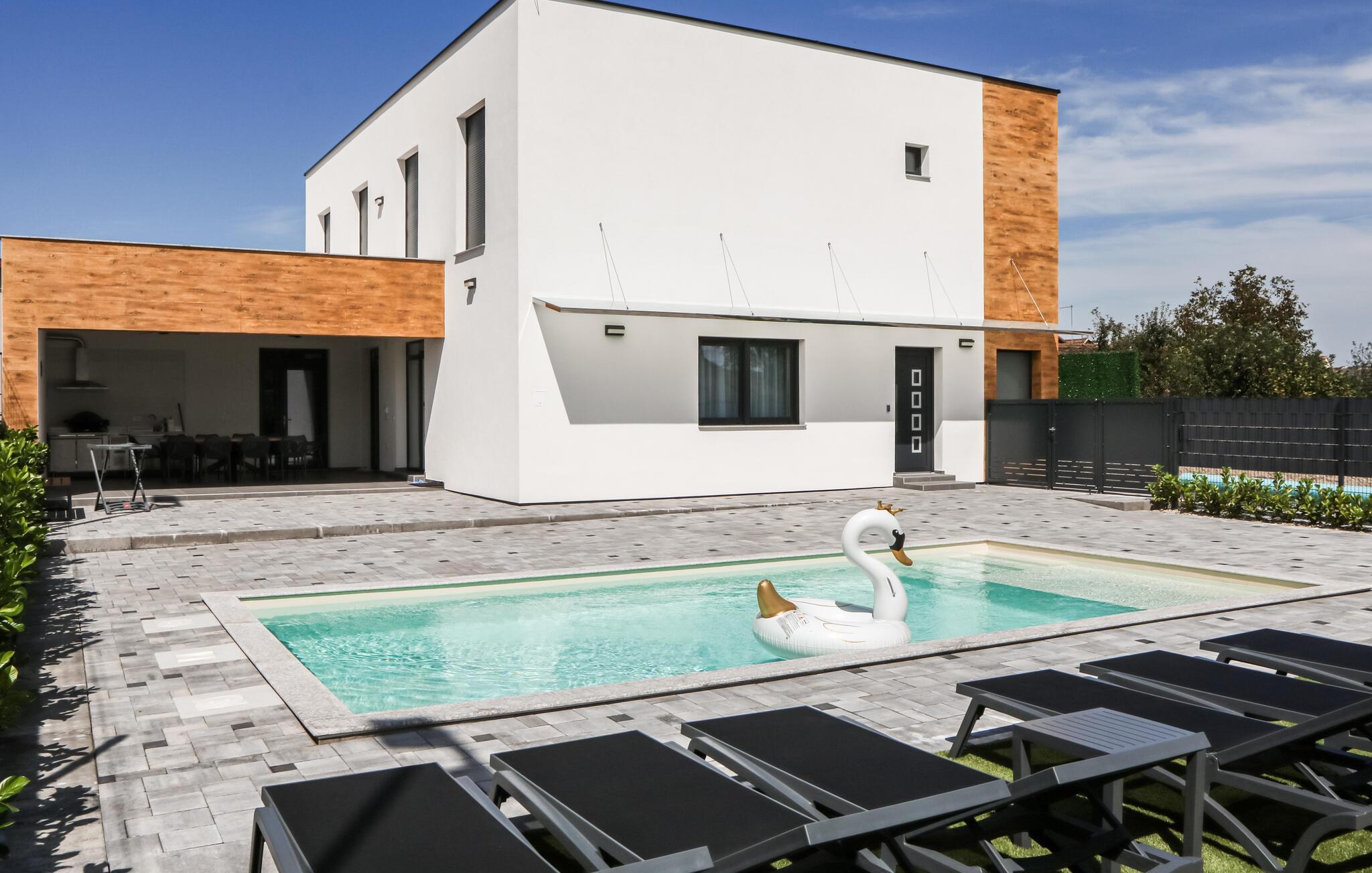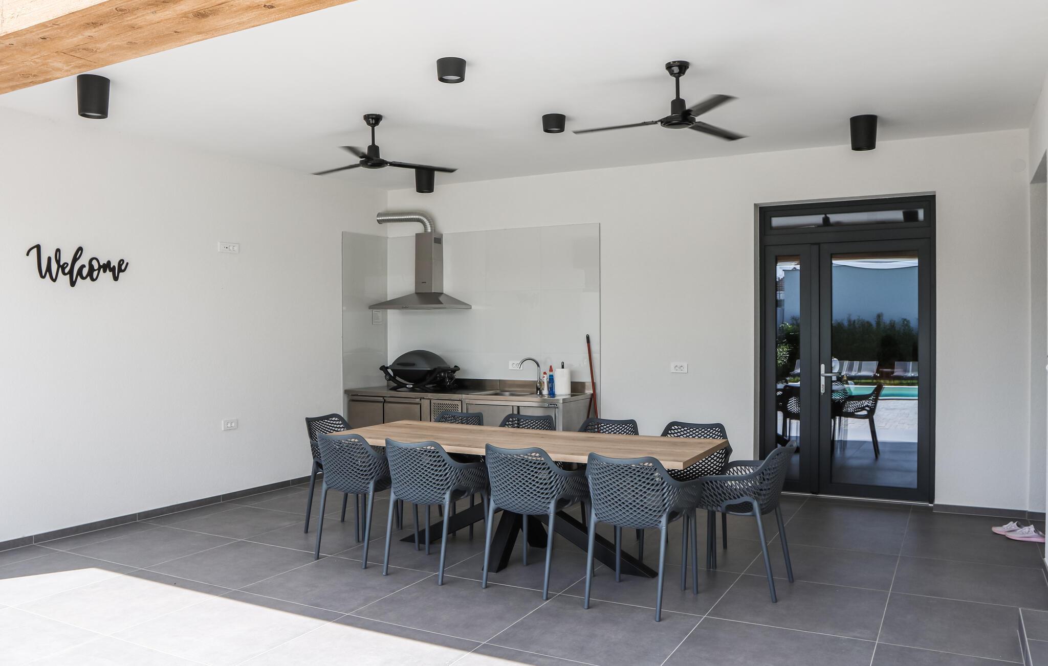 Velkommen til din drømmeferie. Denne luksuriøse ferievillaen i Rokovci imponerer med sin unike beliggenhet og smakfulle design. Interiøret tilbyr deg og storfamilien en atmosfære av eleganse og komfort, med en moderne stue, et fullt utstyrt kjøkken og kjærlig innredede soverom. Aktivitetsrommet med bordfotball sørger for underholdning for hele familien. Husets velværeavdeling med badstue og boblebad sørger for fullstendig avslapning. Det er bare å legge den hektiske hverdagen bak deg.